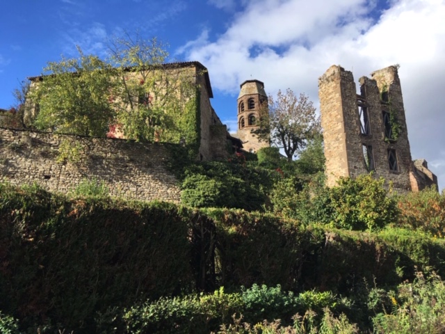 So, as is our custom, we got the hardest bit done first by climbing to the highest point, which today took us to the castle ruins. There was not a lot left, but it was interesting nonetheless, and the two remaining large stone walls and cross-member perfectly framed the stunning distant valley views.