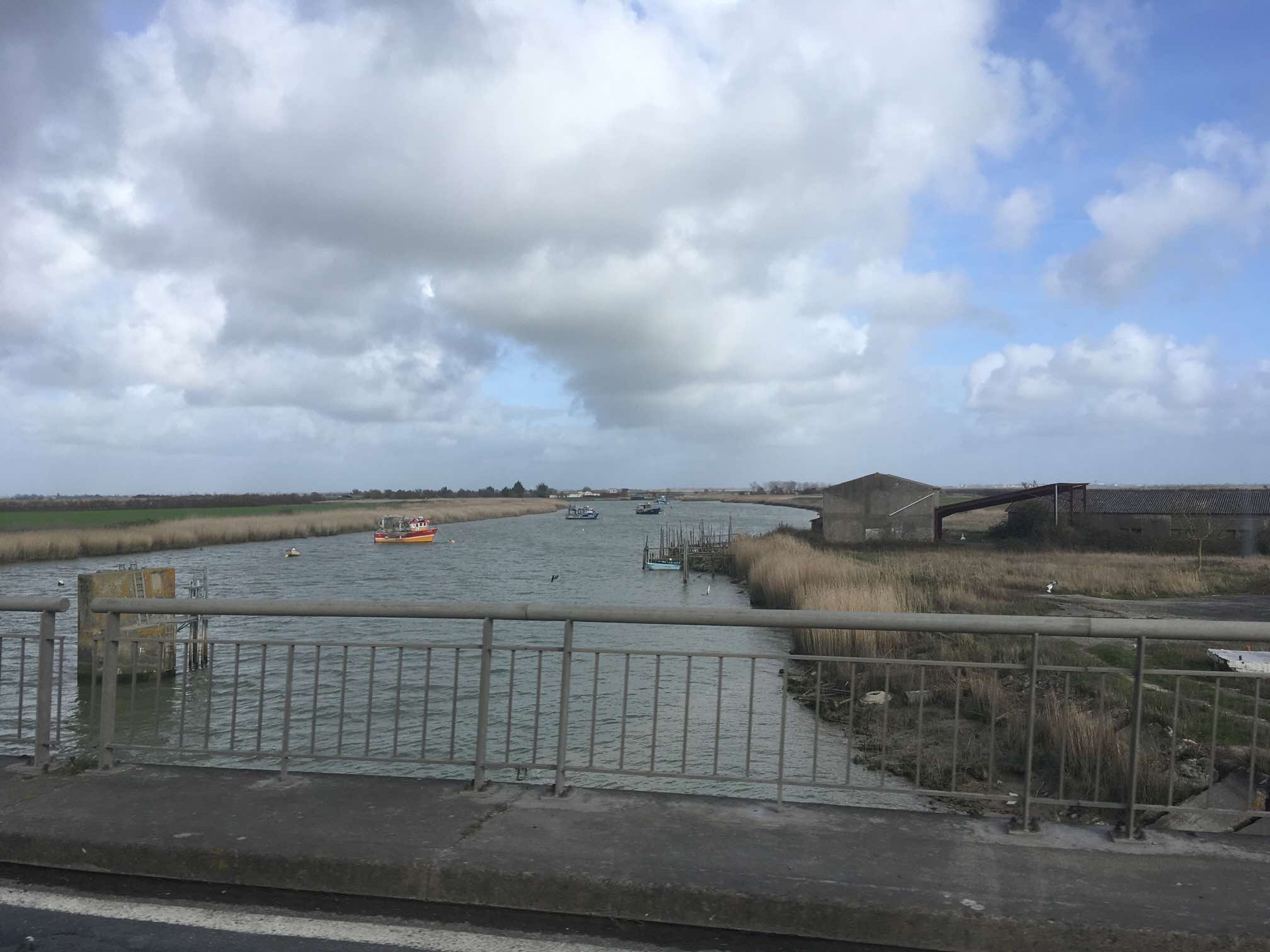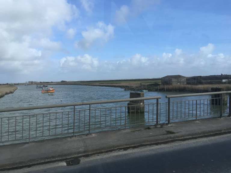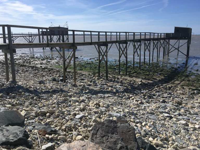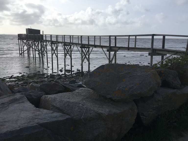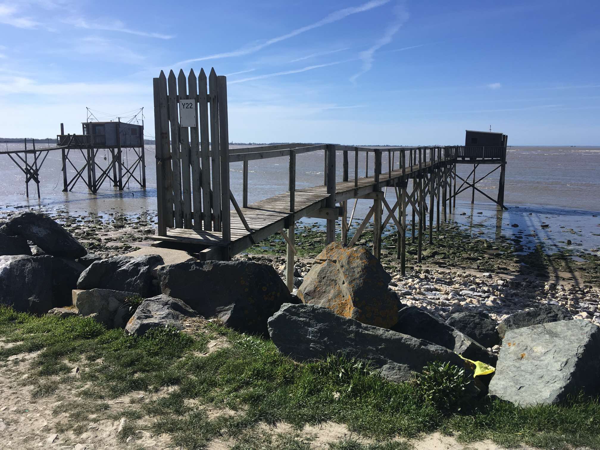 Today it has worked a treat. First one was at La Rochelle, and after finding that one unavailable, a quick check showed a great spot we’d stayed at last year at Yves, just 20km down the coast. So tonight we find ourselves right next to the beach, alongside the region’s typical fishing huts, with their pontoons, and with the sun setting over the sea. Very nice indeed. Sophie has even done an impromptu painting of the view.