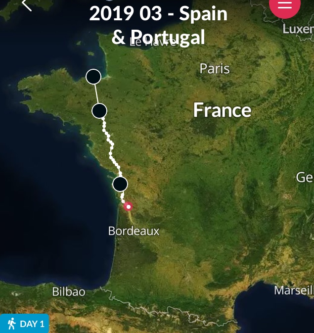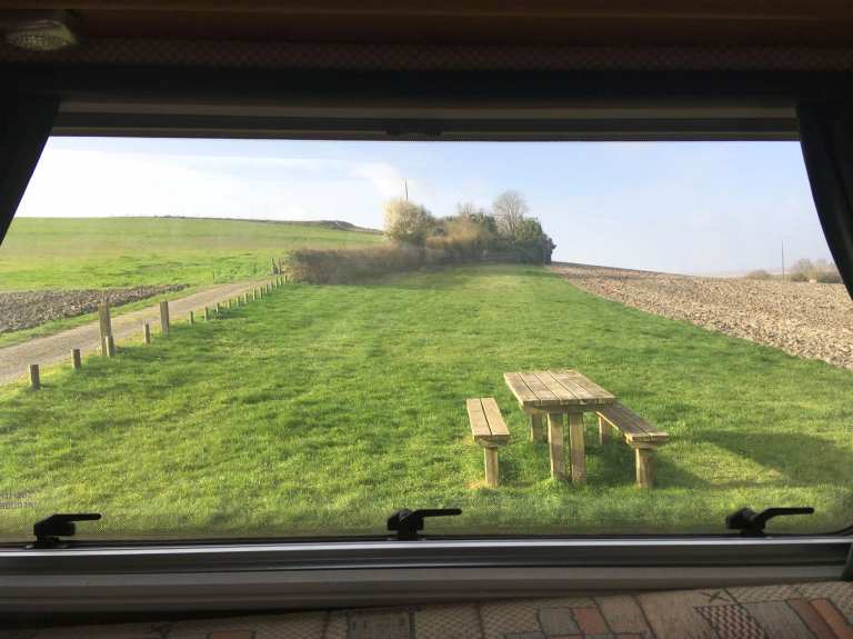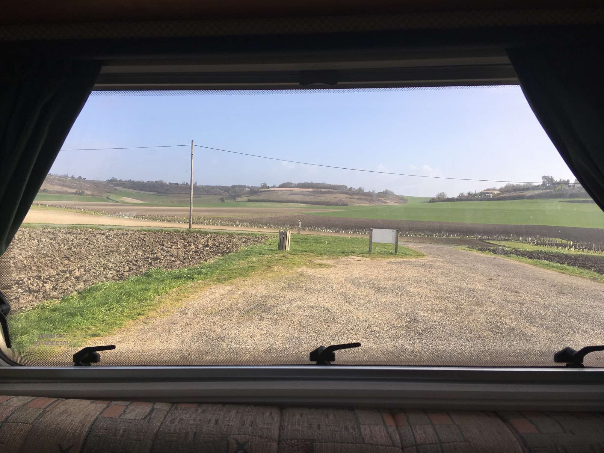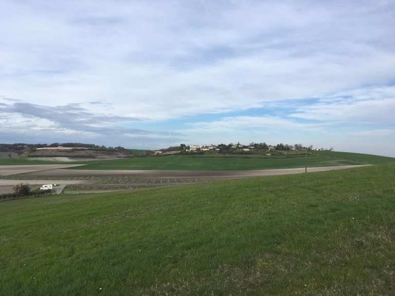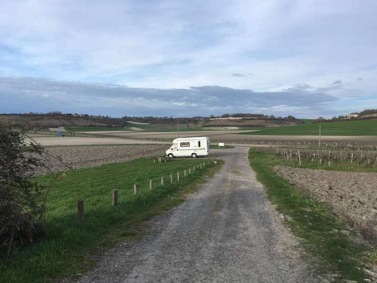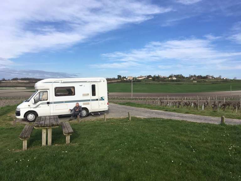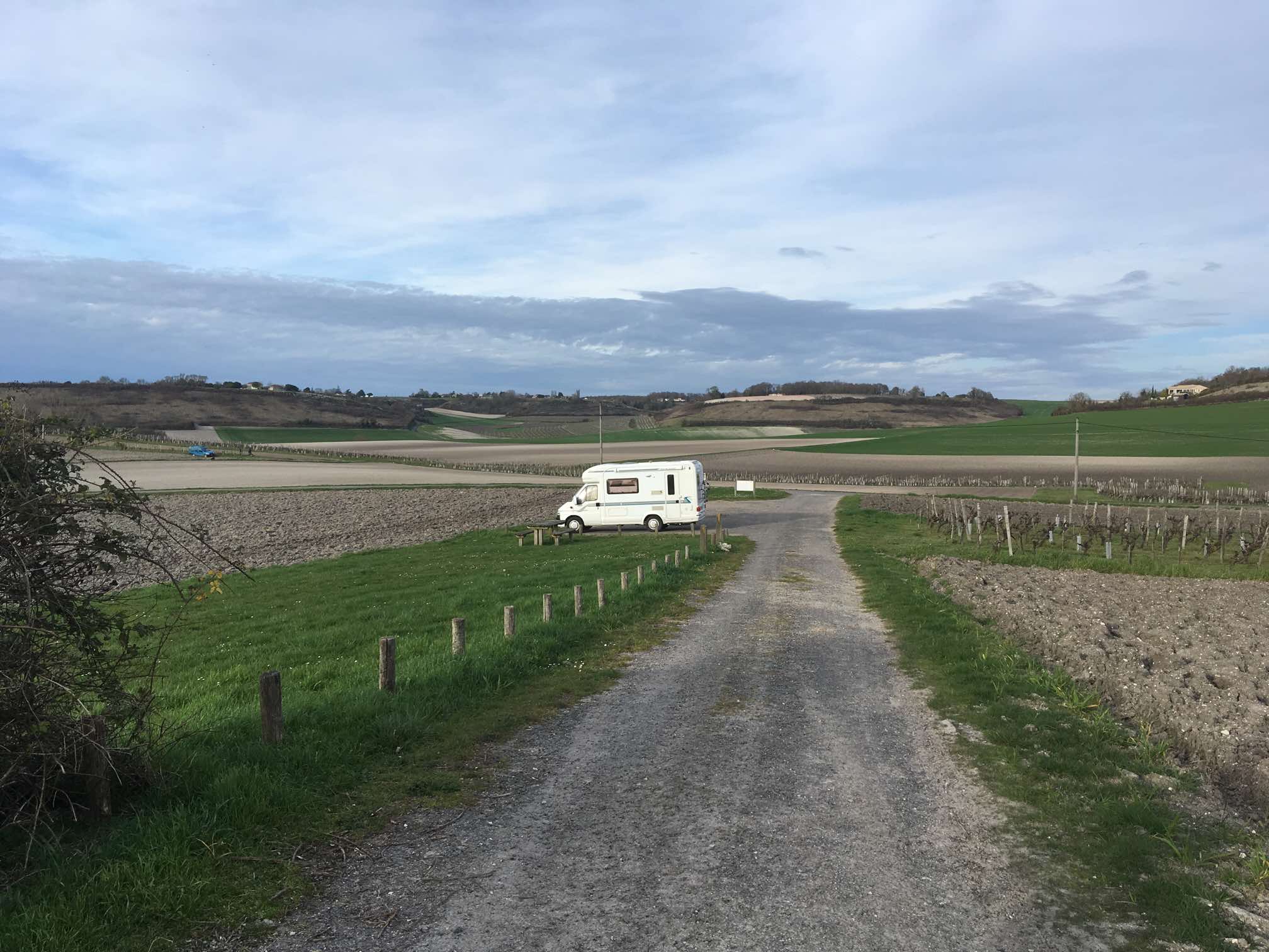 We were reminiscing about how many of these places were free a few years ago, and we dropped by another couple of lovely little ports, where it’s €8 or €9 to park for 24 hours or 24 minutes. As it happened, I’d been heading to one of our favourite ever overnight stops at Saint Romain sur Gironde. We’d discovered this tiny carpark last year thanks to Park4night. It’s slightly elevated and is nestled in the middle of fields and vineyards with 360 degree views, and we can see the Gironde estuary and its South bank beyond.