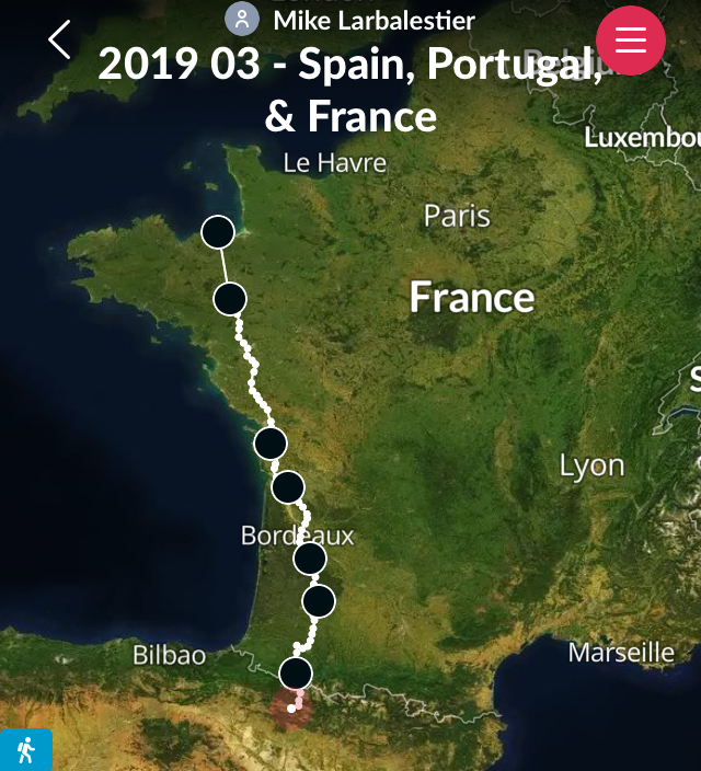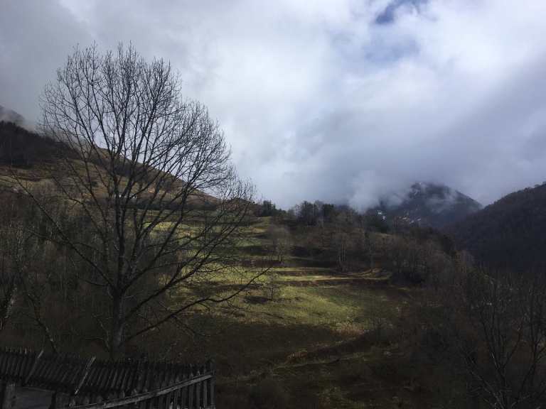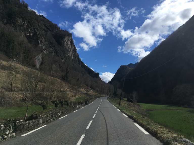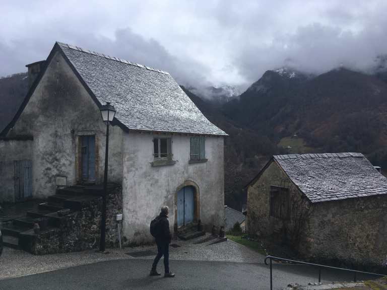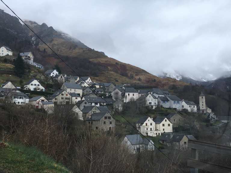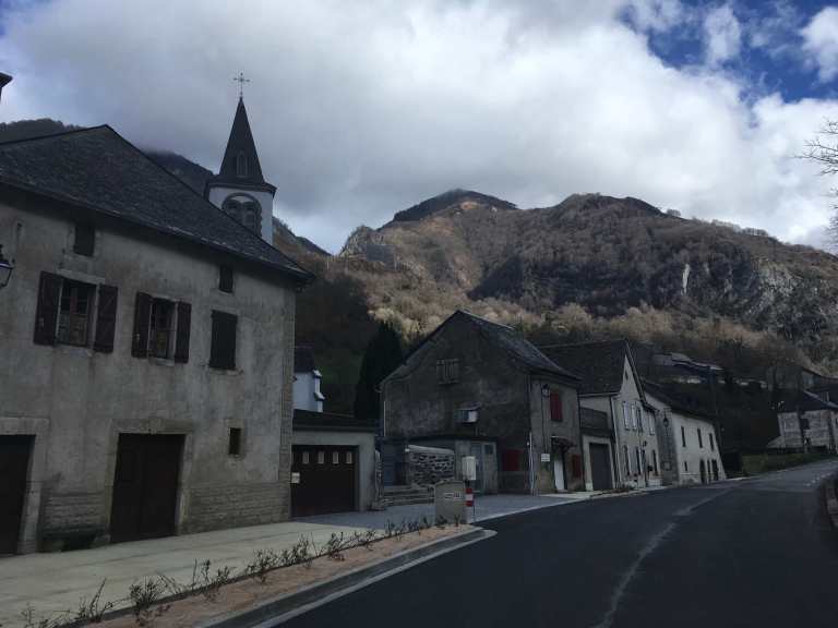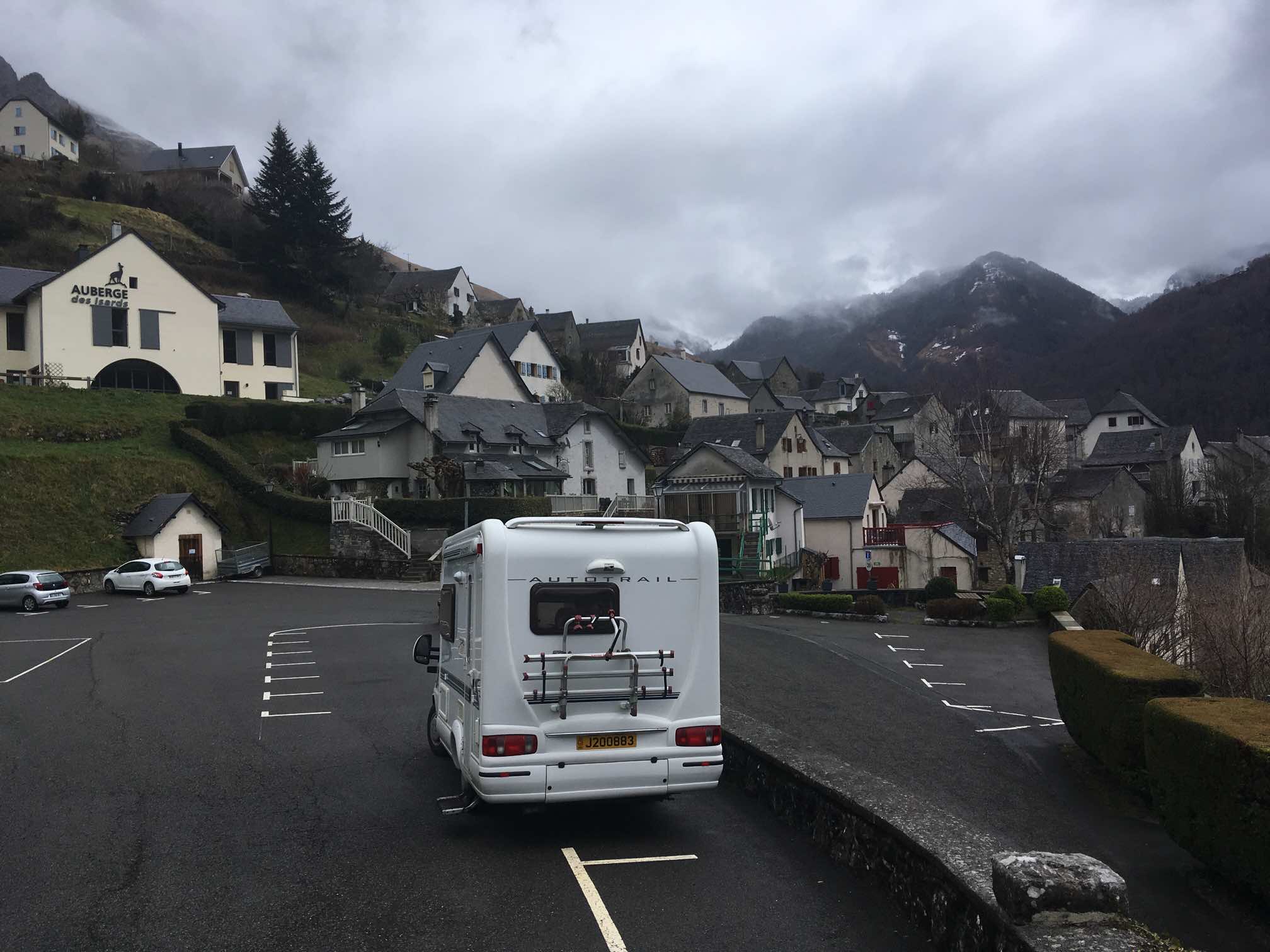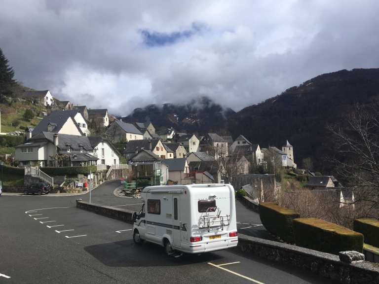 Great spot to spend the night, with the only noise being the nearby river. Strolled into town in the morning then thought we’d head up to the mountain town of Aydius. Our ”old” motorhome buddies, Nick & Sal, had been this way before and had said it was worth a trip. They have a bigger motorhome than ours so we were confident we wouldn’t come unstuck up some tight mountain track. The roads were absolutely fine and parking there very generous. Great location perched on a steep hill and nestled in the mountains. Definitely recommend a visit and you could easily overnight there. There was no phone signal all morning, but it just reappeared after lunch, and so access to the Internet was restored.