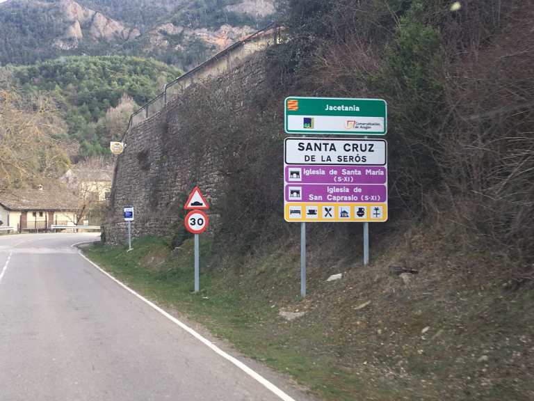 Nick and Sal told us that they liked to stay at the town of Santa Cruz de la Seros up in the hills. This sounded more like our thing and we now have this great rural spot to ourselves. Despite today’s exertions of a walk round Aydius, and Jaca, we dug deep and managed an enjoyable early evening stroll round the lovely small village of Santa Cruz.