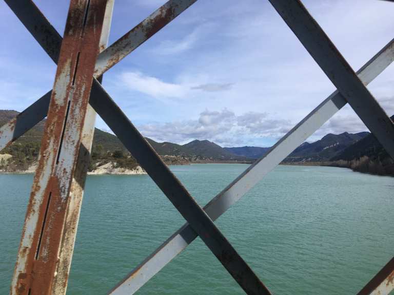 A few more km down the road we found a stop overlooking a reservoir and surrounding mountains and tucked in to our bread with cheese, and unusually, beetroot. I think Sophie just grabbed what was left in the cupboards when we left home just over a week ago.