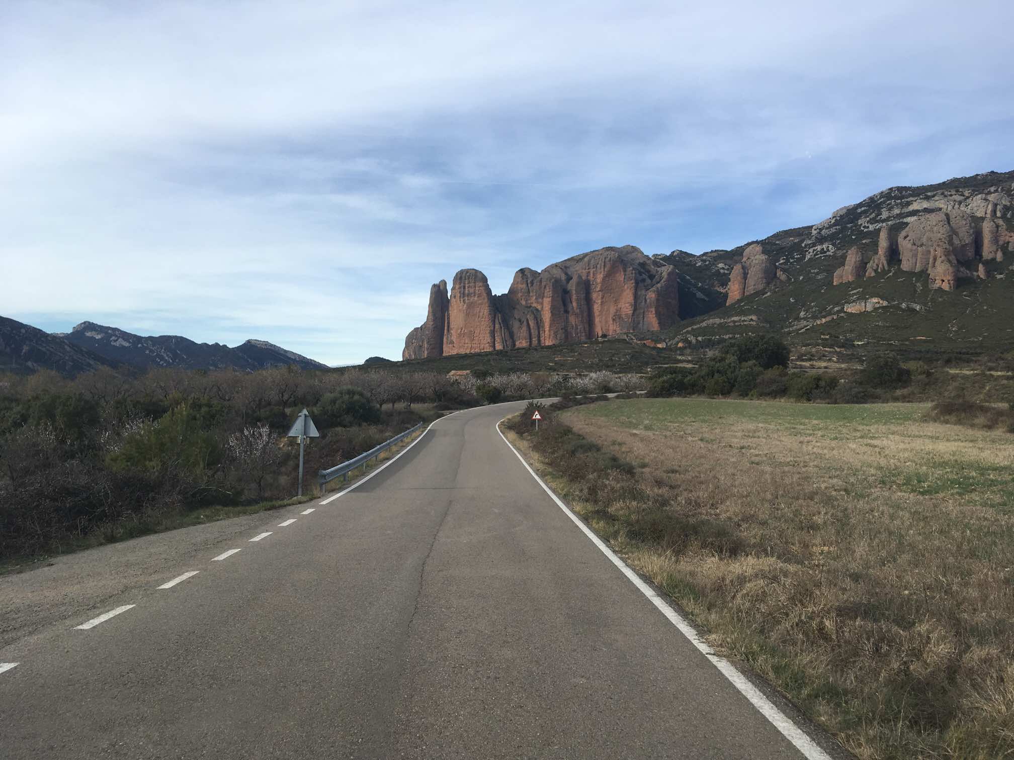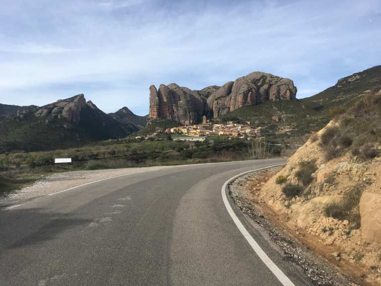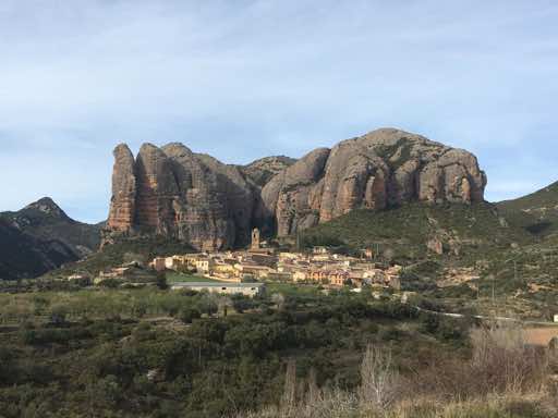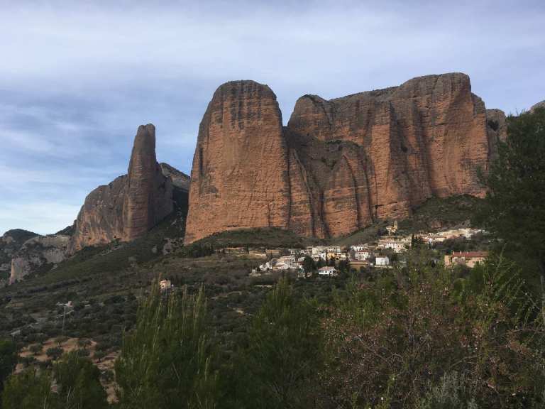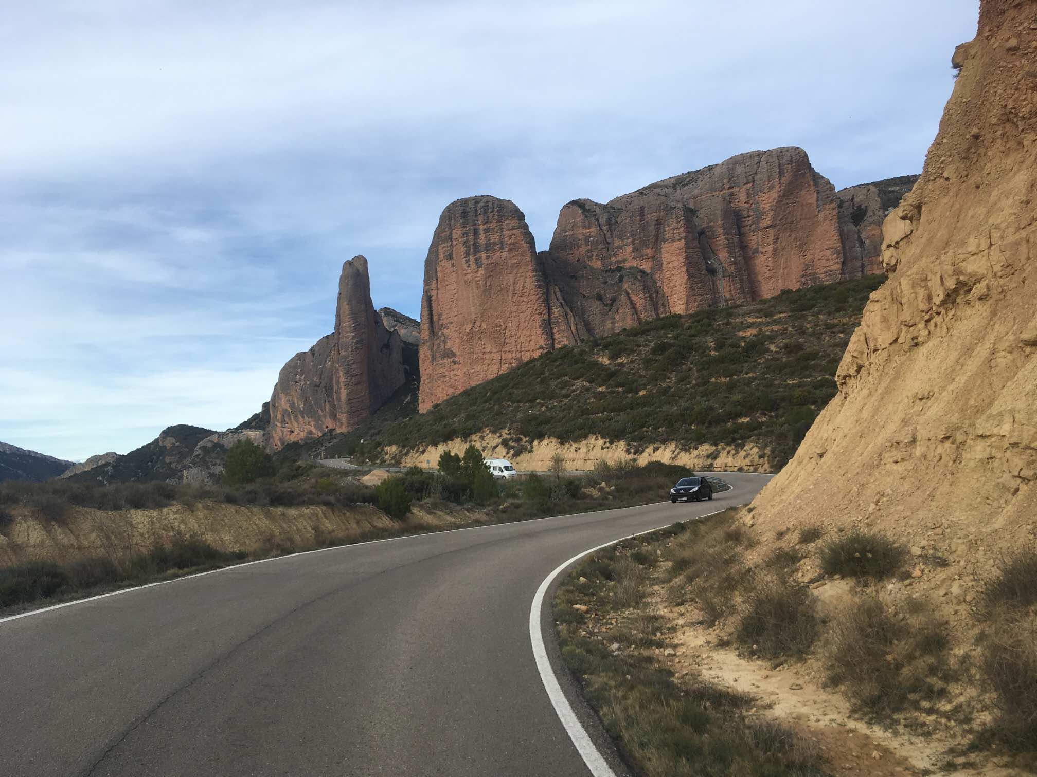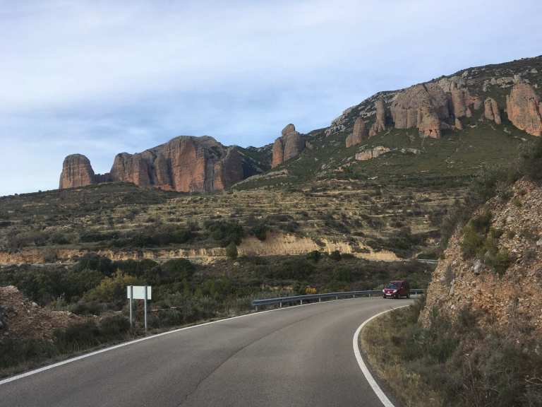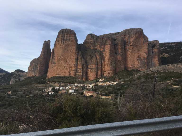 Once we’d passed the reservoir, the scenery went into overdrive, with remarkable orangey red rock formations soaring 300 metres into the sky. Absolutely stunning. After a quick visit to the attractive town of Murillo de Gallego, which sits within this amazing landscape, we went in the direction of the town of Aguero. This involved a detour, but I thought we should go for it. It turned out to be arguably one of the most amazing sights we’ve seen, and were so very pleased not to have missed it.