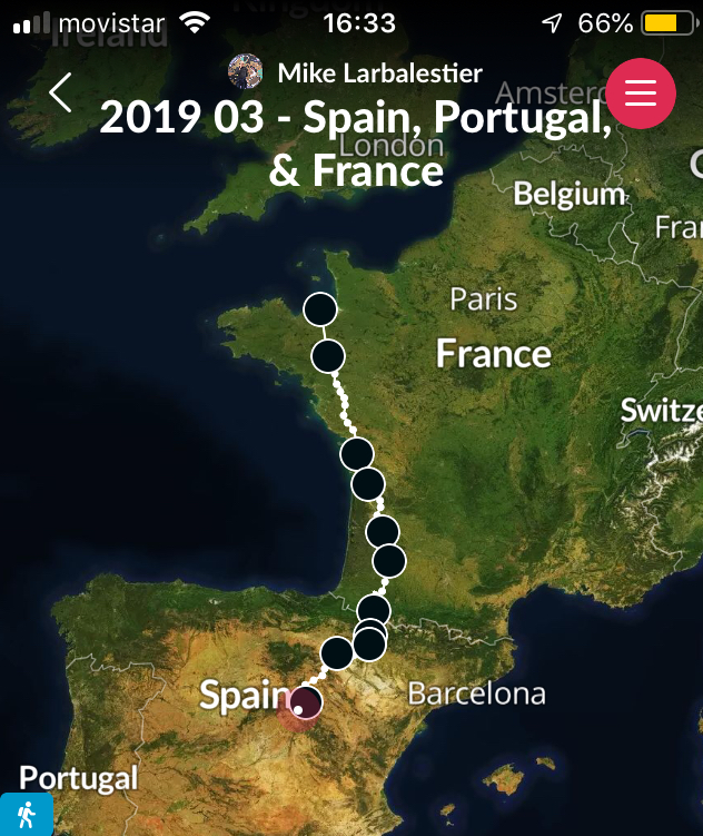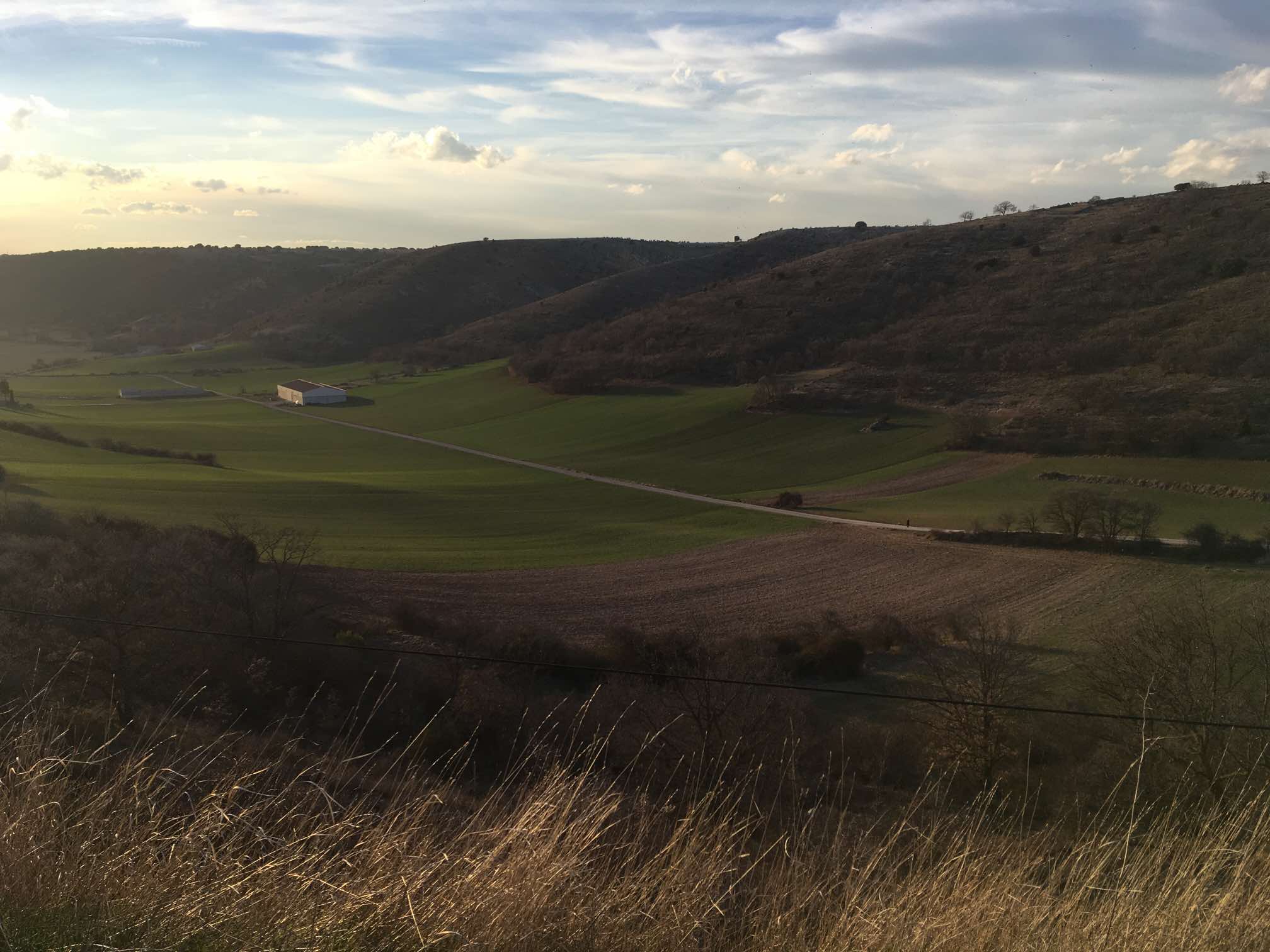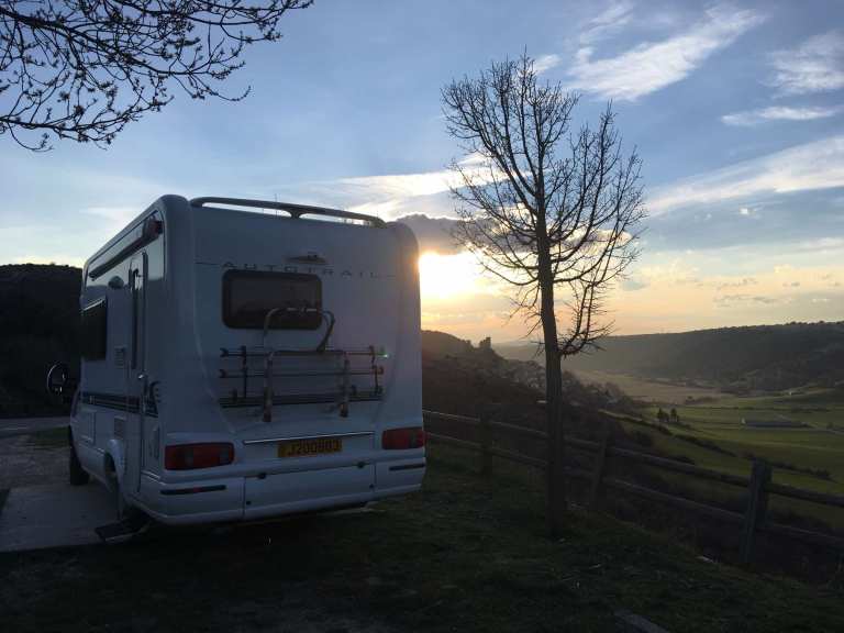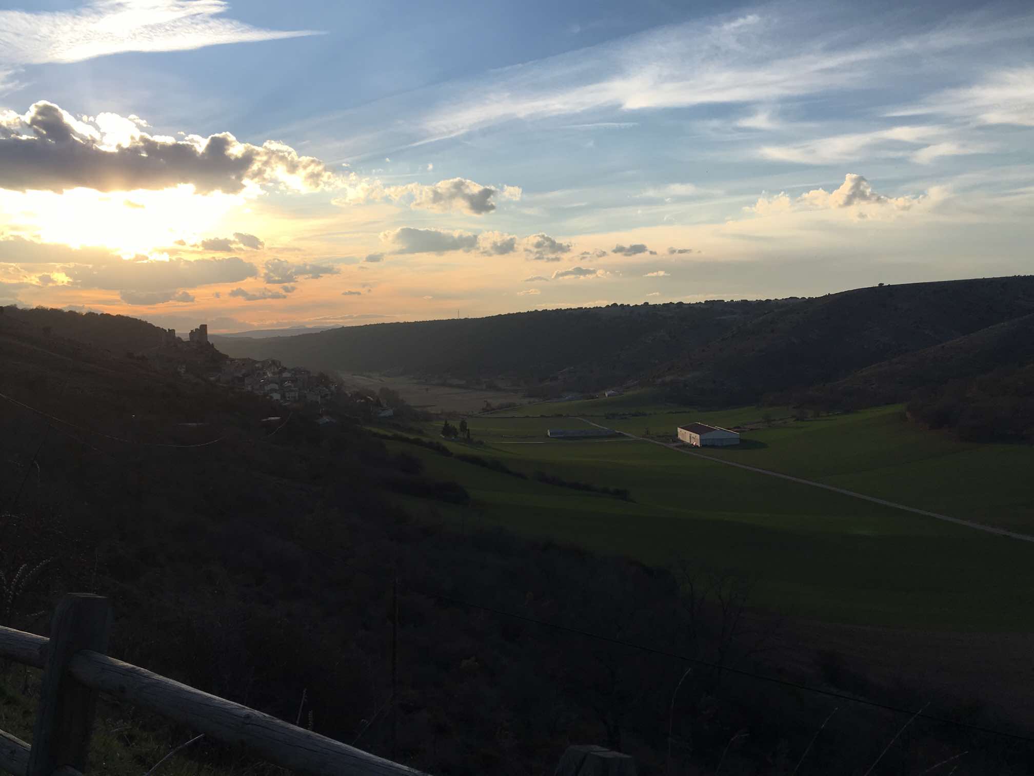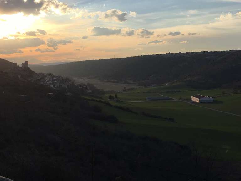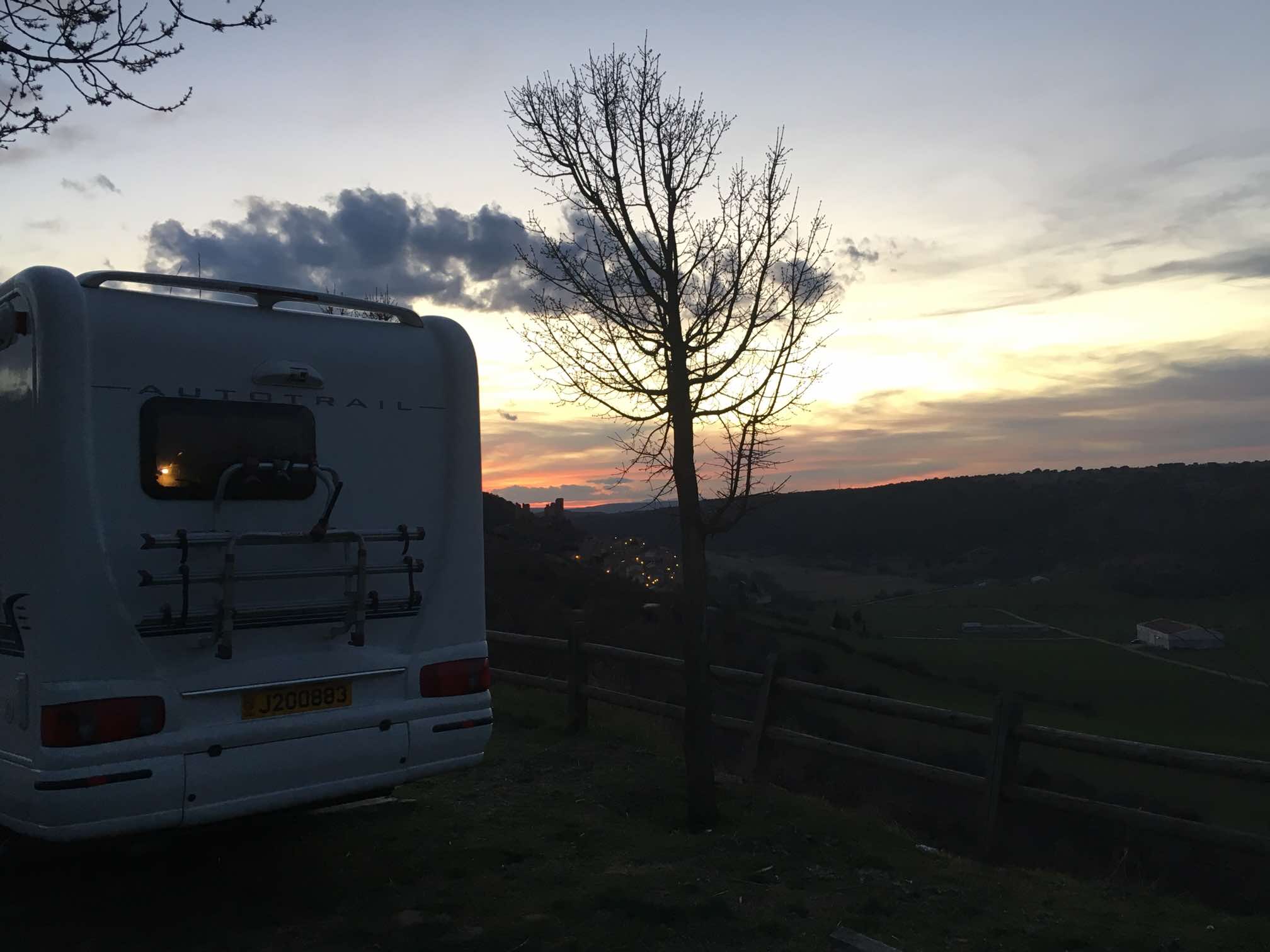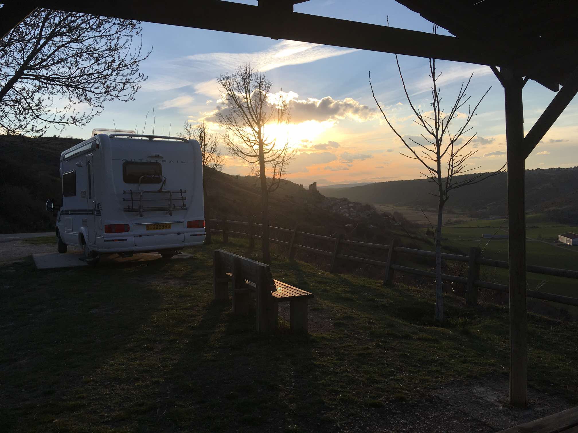 We were keen for a change of scenery, so I quickly programmed in a couple of possible Park4nights in the general direction of Guadalajara. Just 30 minutes down the road, we took a turn down some more minor roads, passed a ravine or two, and now find ourselves in an elevated position, looking down a valley, where we’ve been watching the sun gradually setting at its far end.