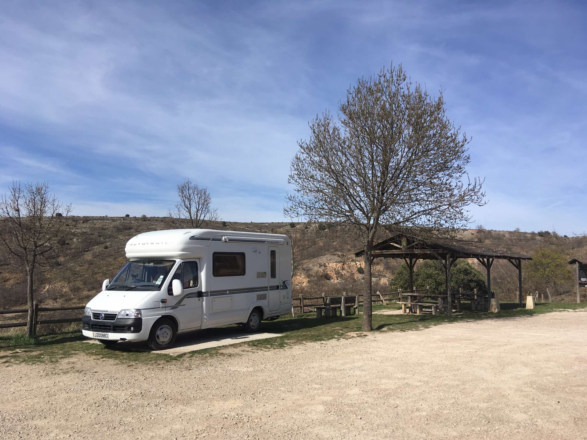 During the evening I’d commented on someone’s Facebook post about the Bardenas Reales national park, just to say that we’d visited there ourselves yesterday. I then had a reply asking if I was parked on the football pitch at Medinaceli. Coincidentally we’d both come almost 200km and had ended up at the same place. So the next morning we had a long chat with Nigel and Olivia, promised to stop stalking them, and said our goodbyes.
