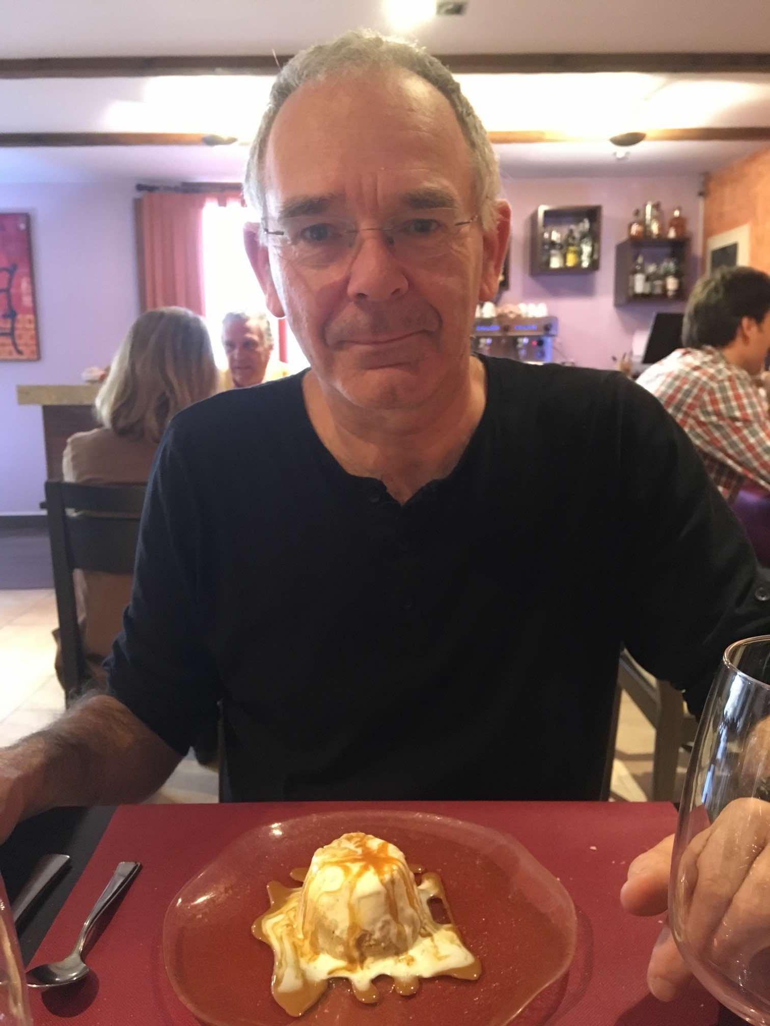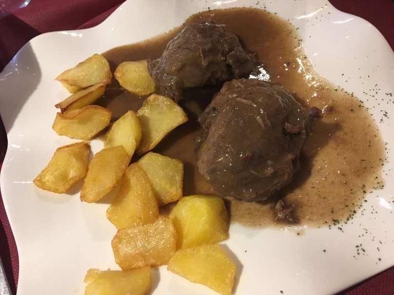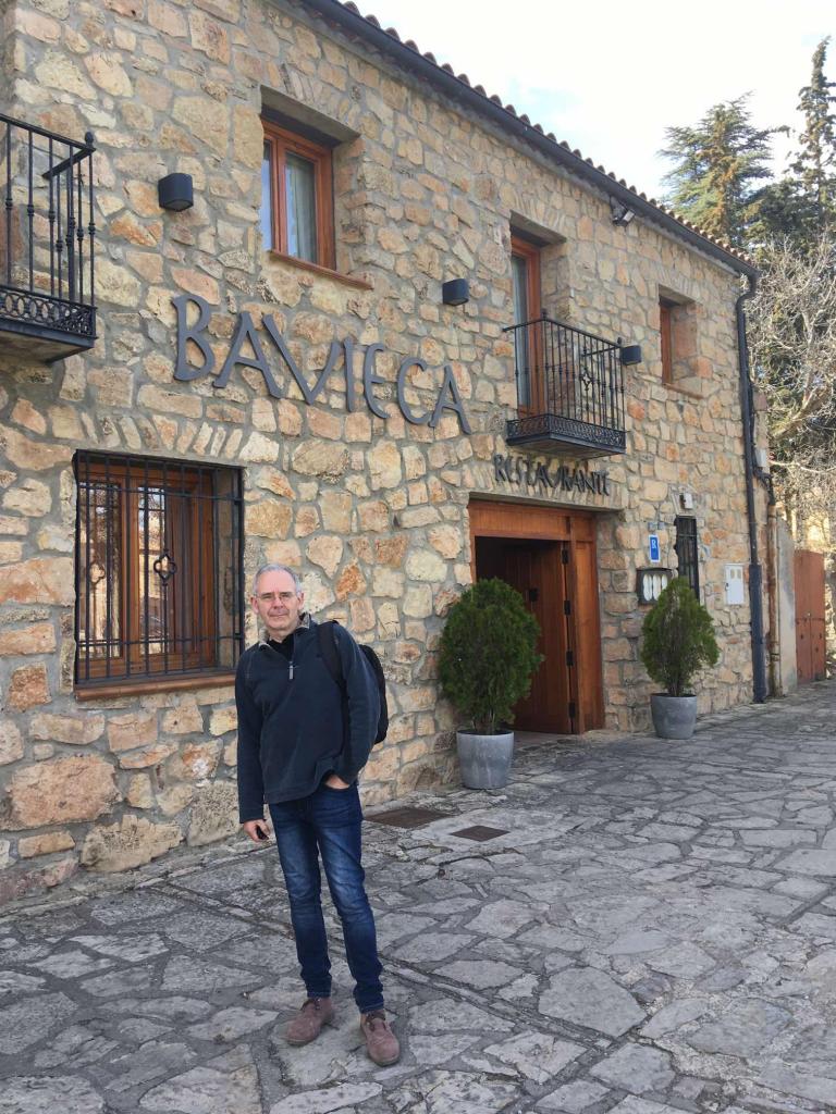 We’d been looking forward to lunch at the Bavieca restaurant, where we’d eaten two years ago. We’d made a rough translation of the menu, but reckoned that the foals’ eggs and thistles were probably not the right words. Anyway, it’s a very lovely setting, and the manager was very helpful given our virtually non-existent Spanish. It amused me that in this gentile establishment, the playlist was 70s rock, with some punk thrown in with a track from the Sex Pistols – just my era. Three courses, including a bottle of wine, for €18. Shame I was driving, so we had to leave half the bottle. Pork cheeks as main and biscuit ice cream were the stars of the show.