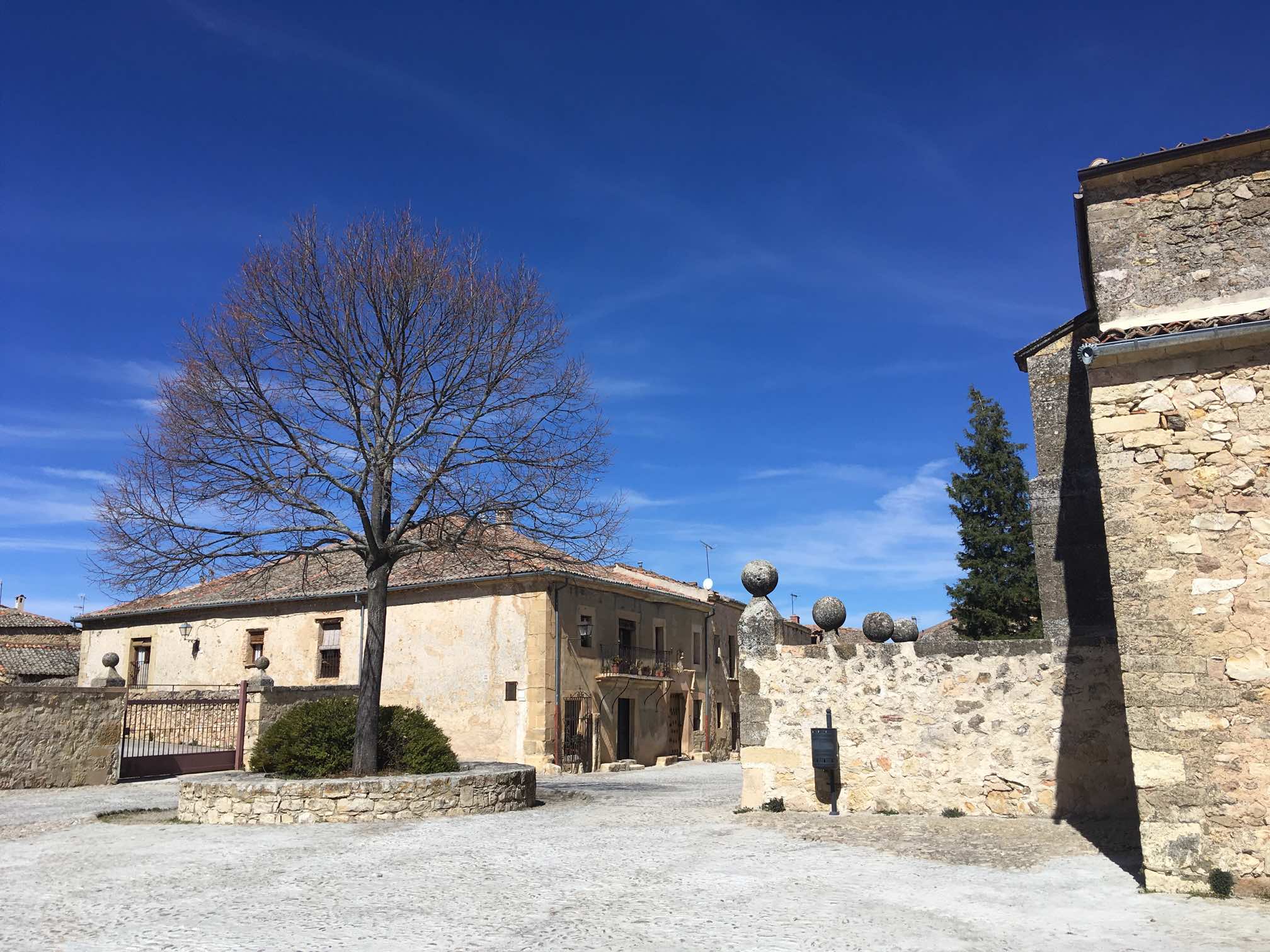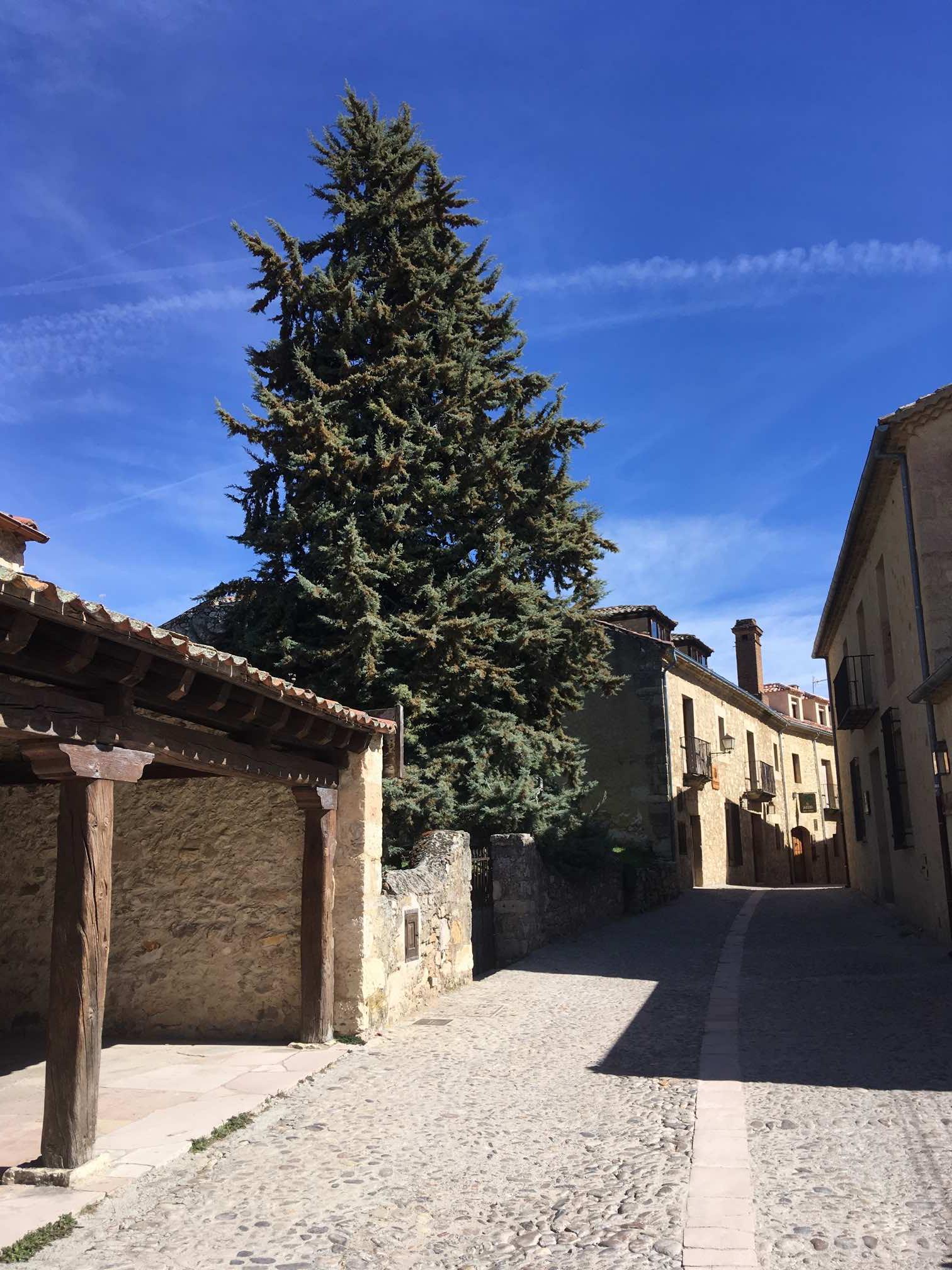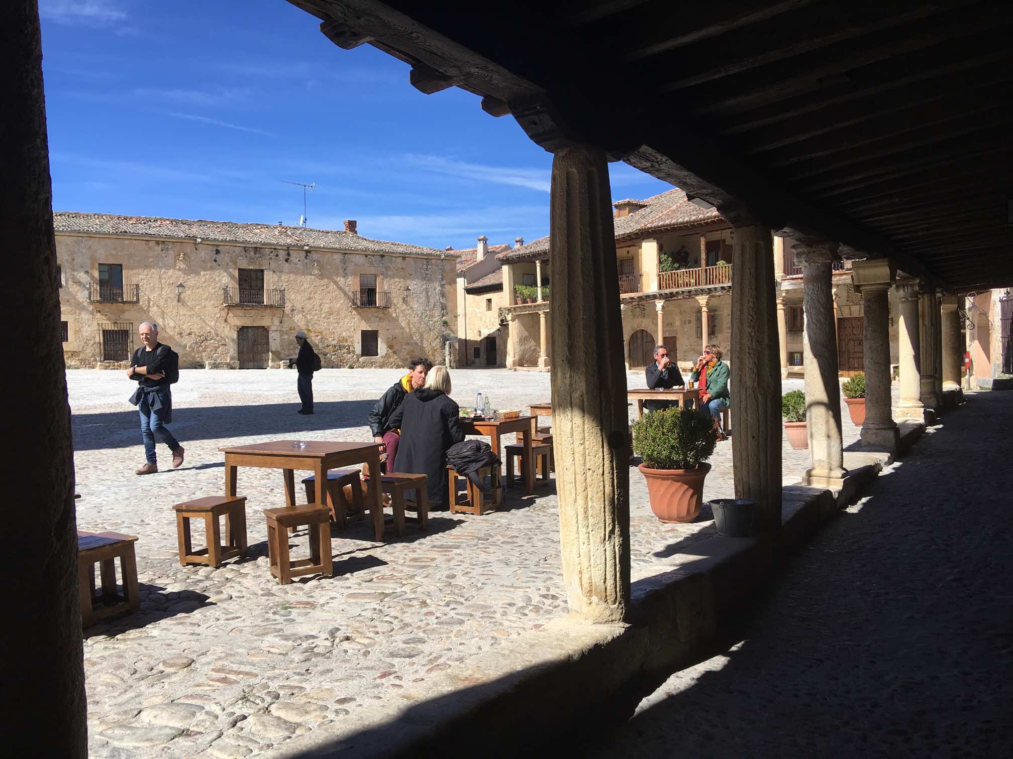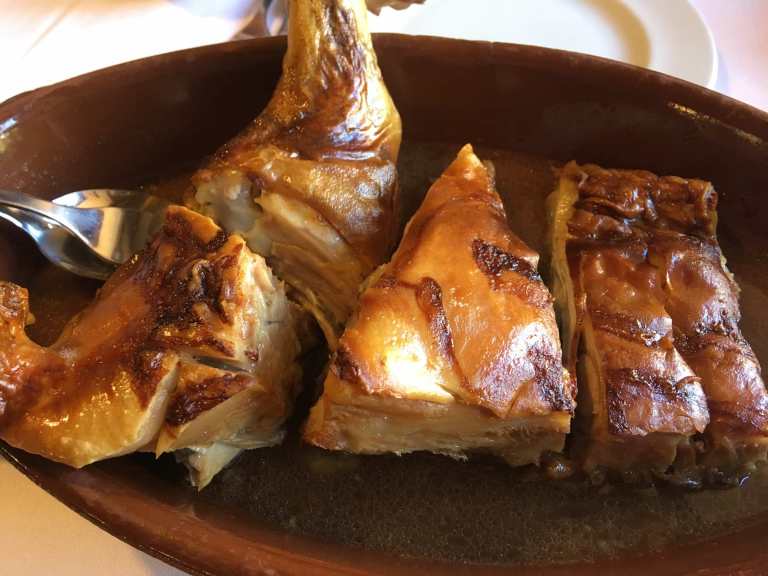 TripAdvisor showed 9 restaurants in this modest village, and all serving the local specialities of large butter beans in a tomatoey sauce, as well as suckling pig and roast lamb. So, with our mouth’s watering, we headed uphill into town, doing the full tour, then settling down for lunch, which tends to be a little later in these parts.