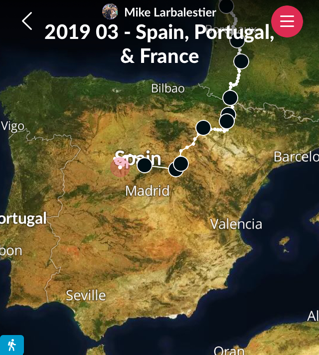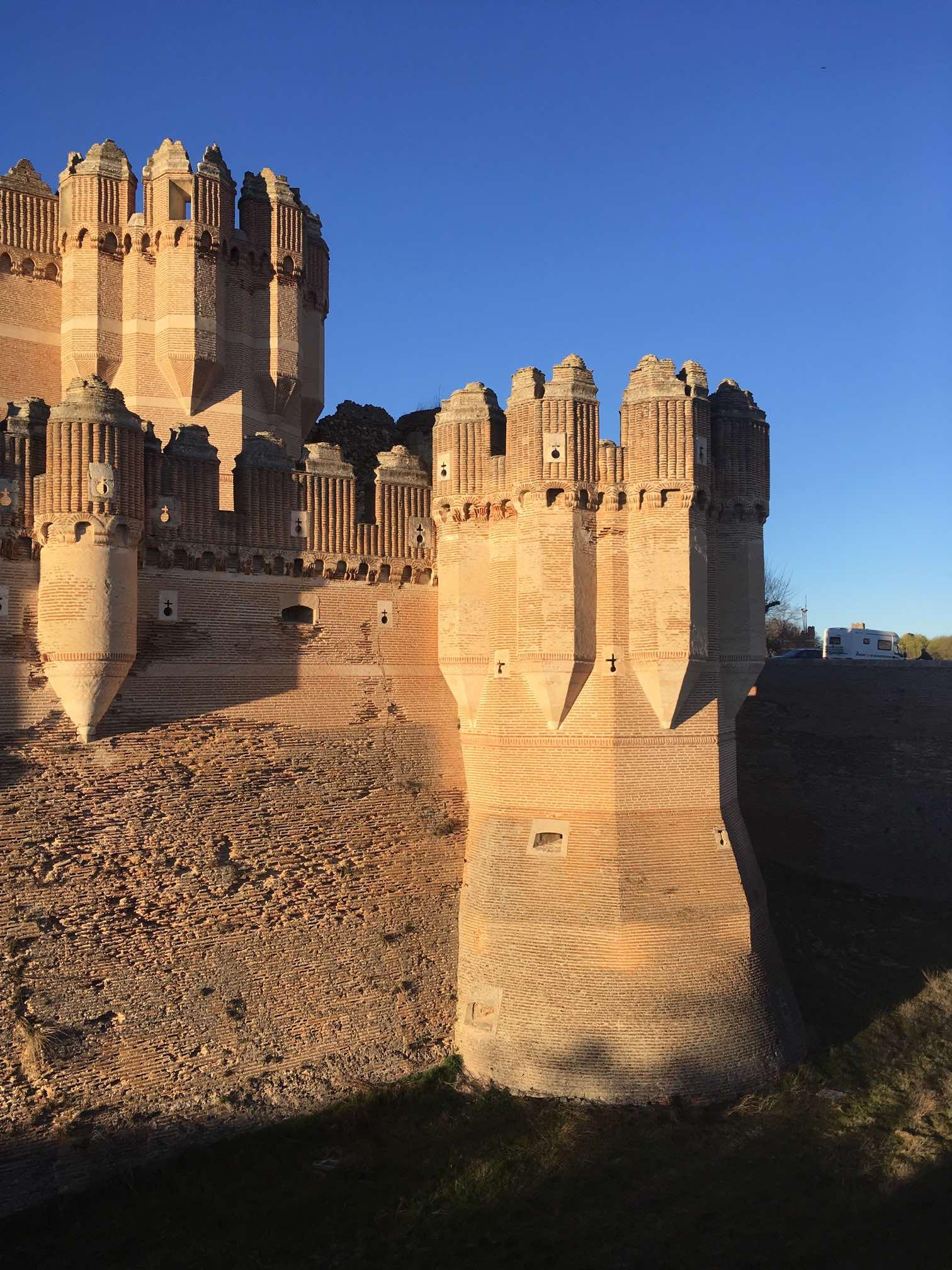 We hit the Castillo de Coca at around 6pm, by which time I’m getting a bit twitchy about finding a parking spot for the night. Their Park4night didn’t meet our exacting requirements, and after looking round this very lovely castle we were on our way, with the clock ticking and the sun heading rapidly for the horizon.