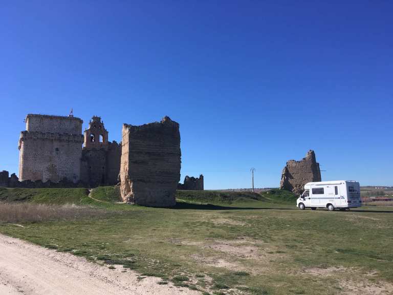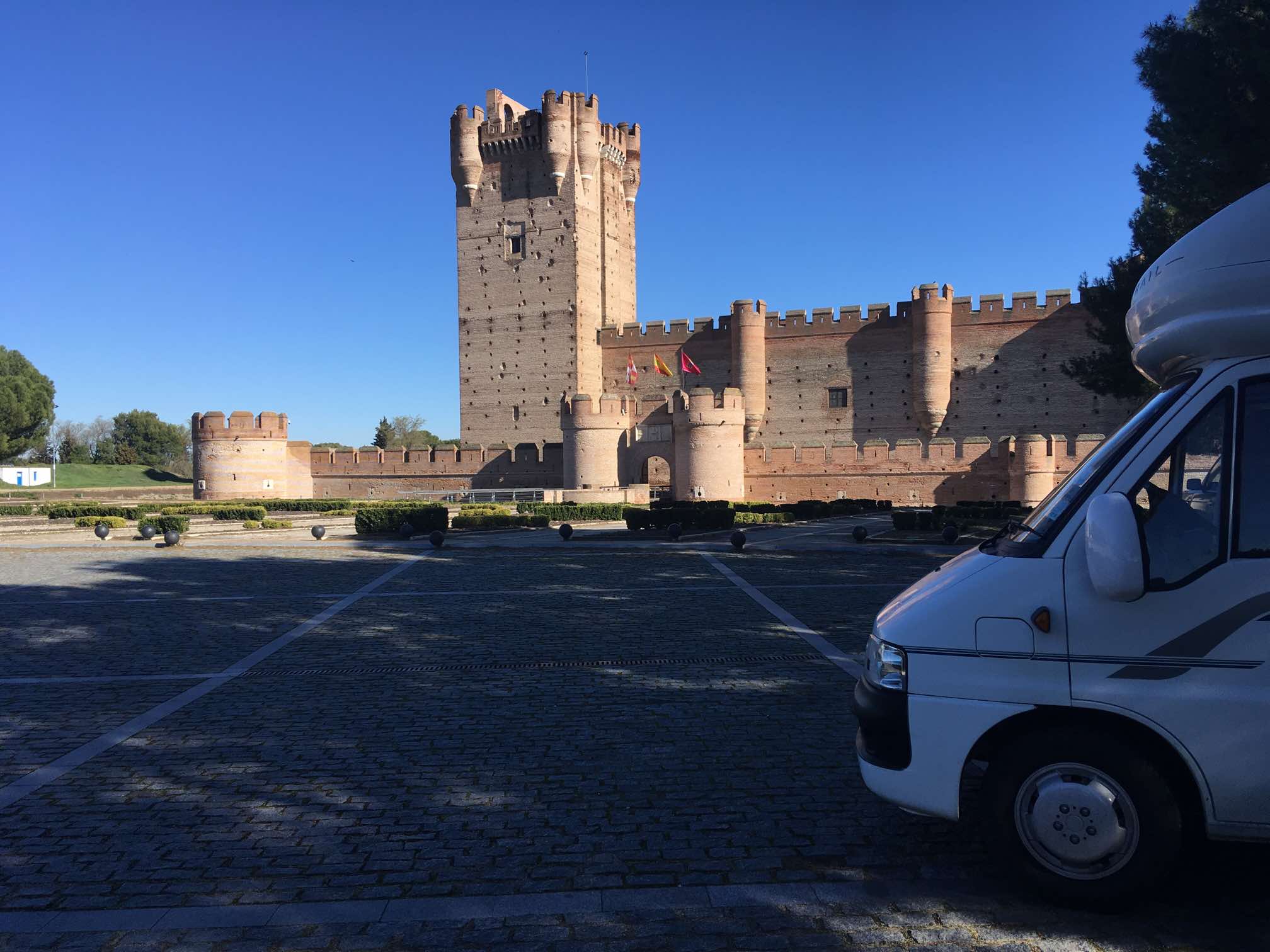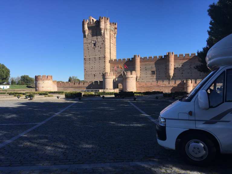 As it happened, Medina del Campo’s castillo was a good visit, with very handy parking, and with somewhere shady to eat our belated lunch. Even though we were in mid-March, the sun was hot in the cab and temperatures outside around 20C.