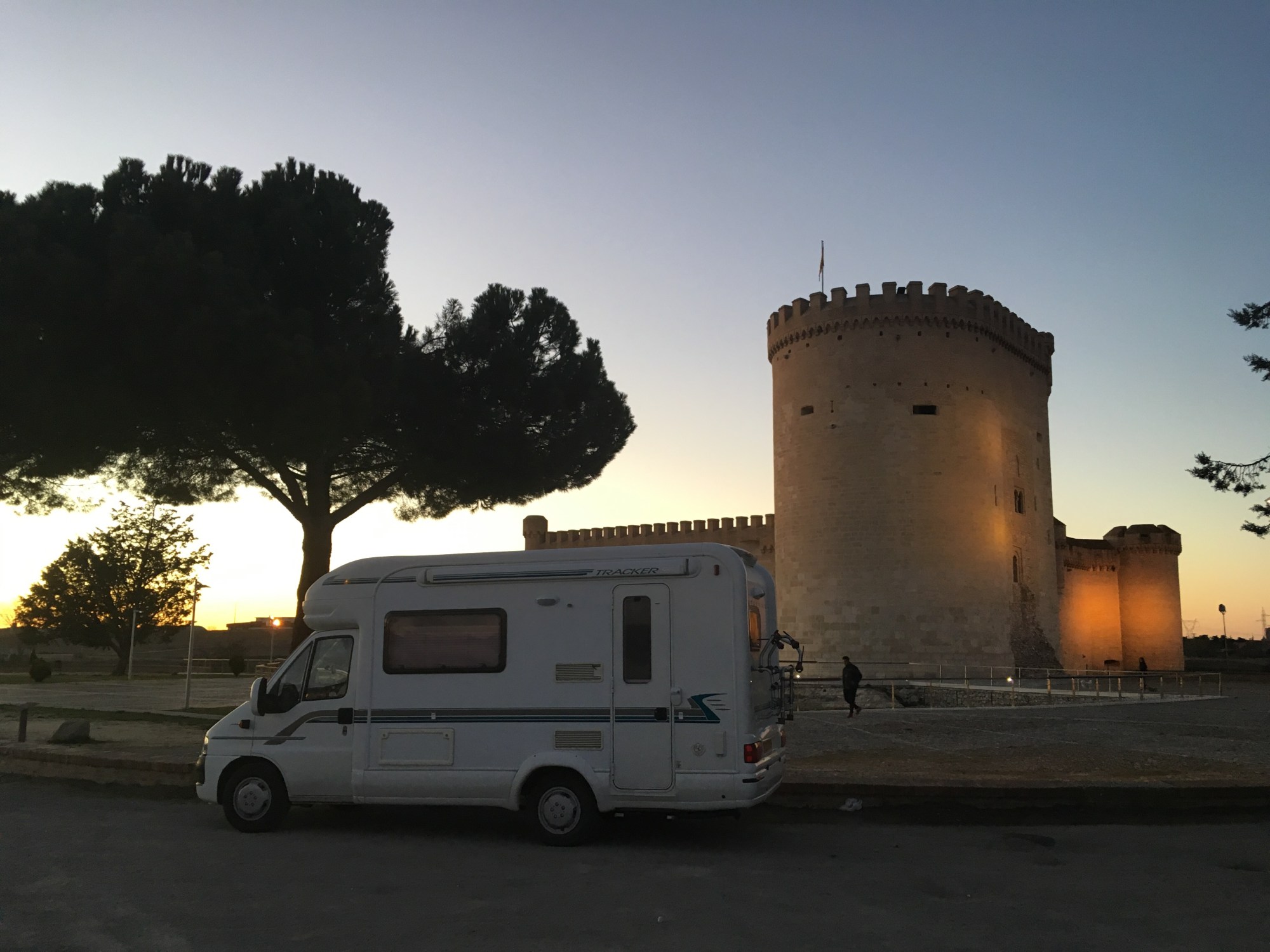 I’d read on Park4night that you could park next to the Castillo de Arévalo, supported by plenty of good reviews, but I had my doubts. The town was right on the main motorway, it was a Friday night, and it was obviously in a town, all of which were not good indicators of a quiet night’s sleep. However, it didn’t seem too bad at all, only a couple of cars there, and the motorway below had more of a white noise hum, that we barely noticed. We were of course next to a beautiful castle too.