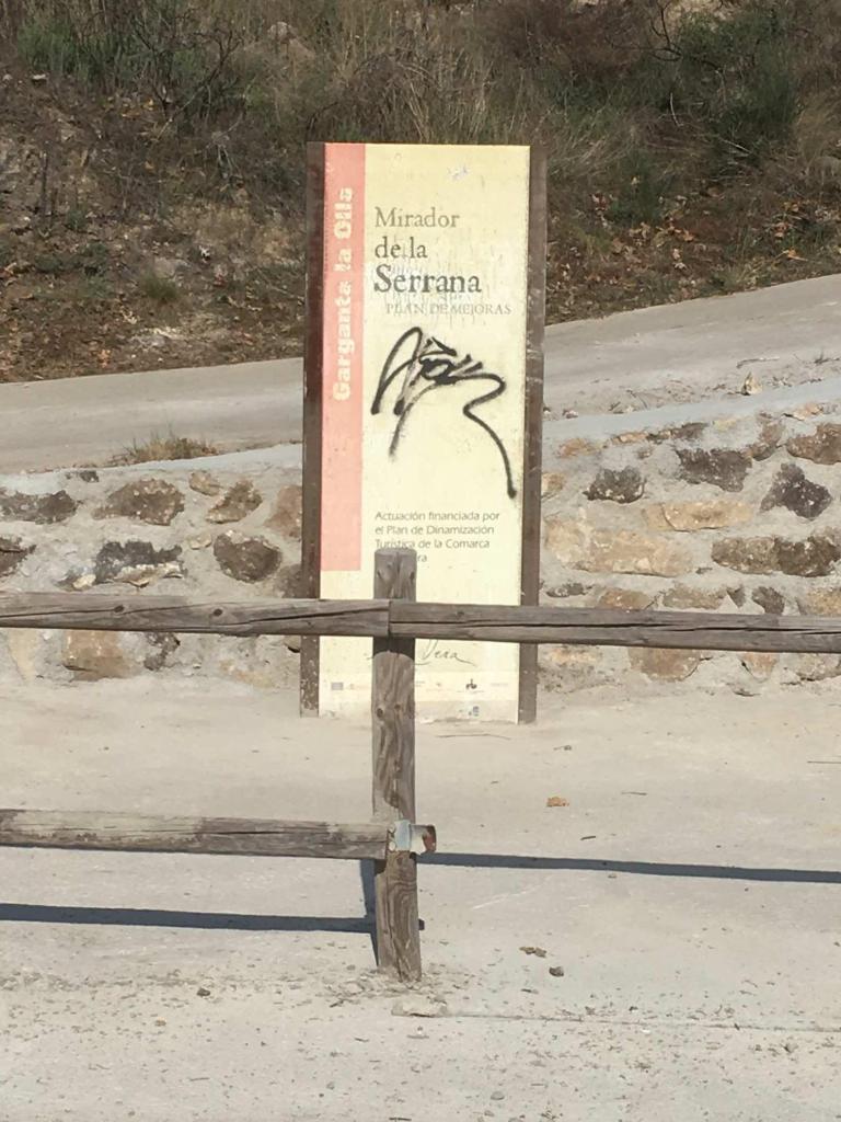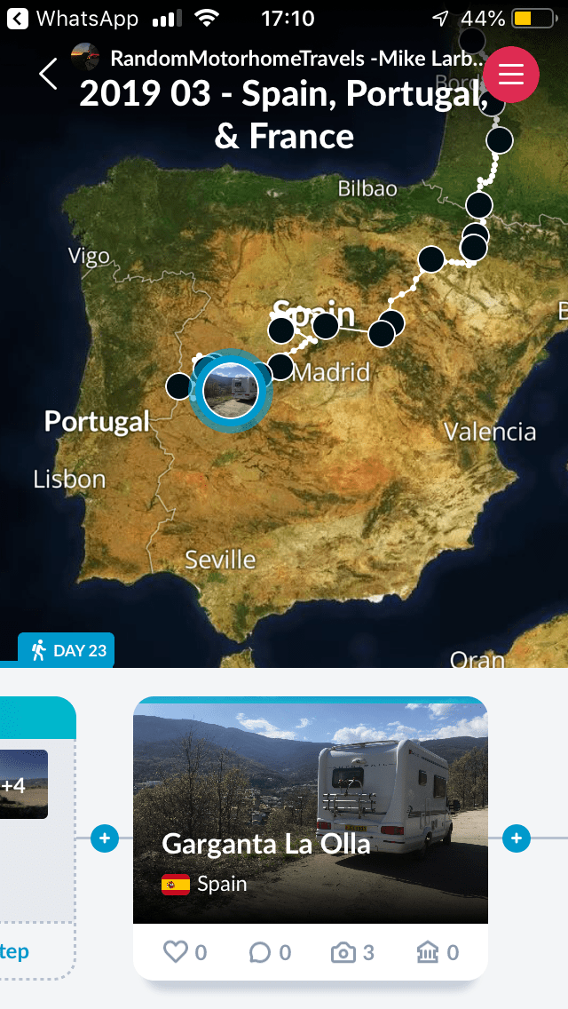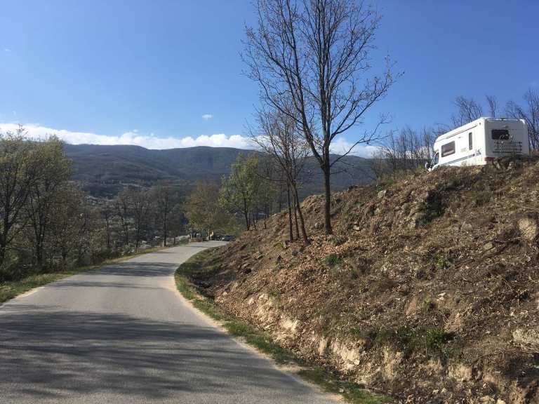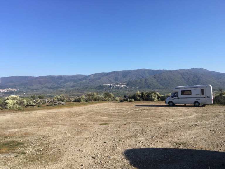 Just further along the road we pulled in to check out the mirador/viewing spot to see if Sophie could get a decent shot of the village. I’d been scouring Park4night up ahead for any potential stops, but then noticed that there was a parking sign here implying there was a parking area above the mirador. Using Google Maps I could see a decent flat area that could be suitable for motorhomes. So we headed there, decided to stay, and created a new Park4night.