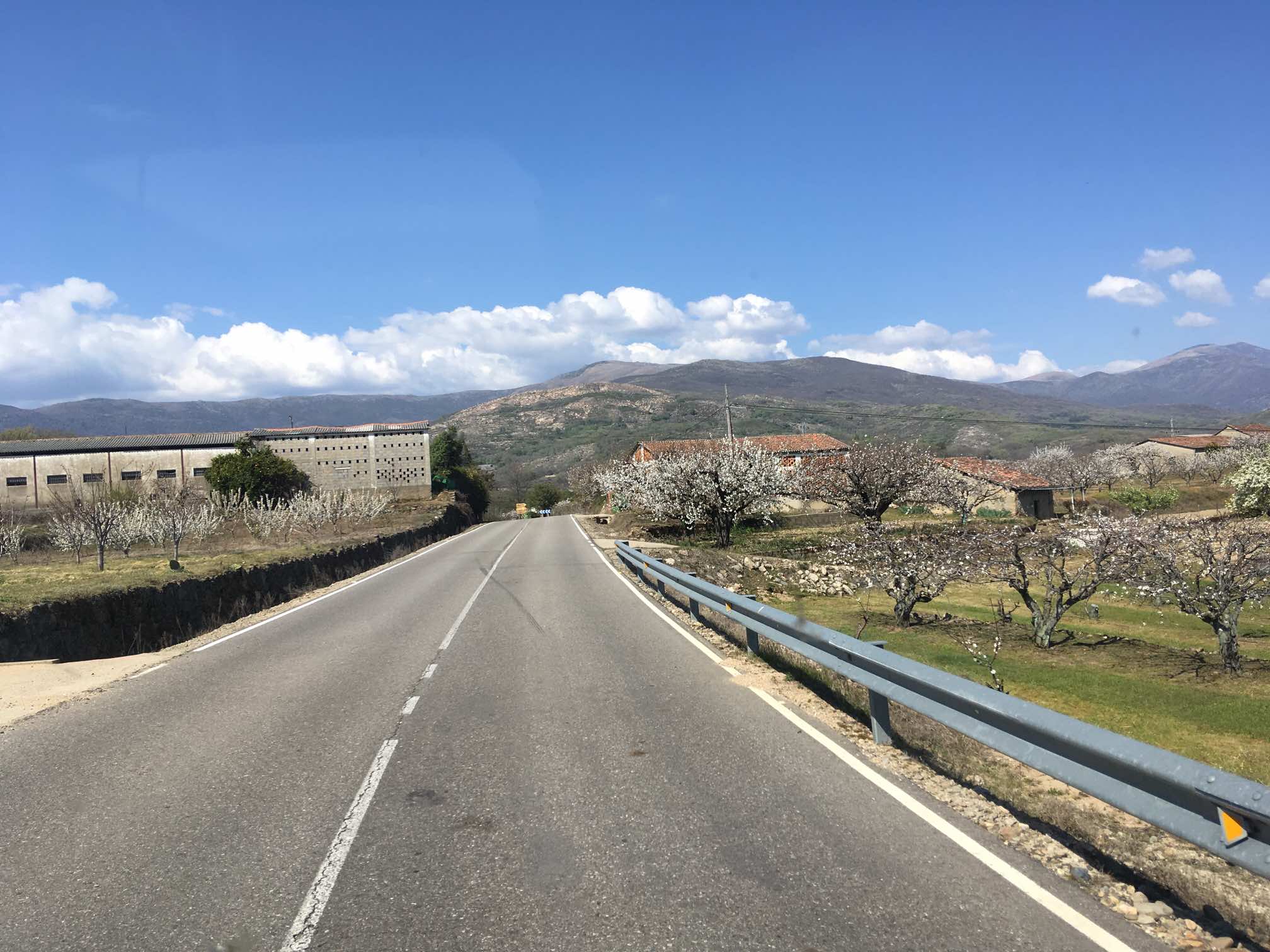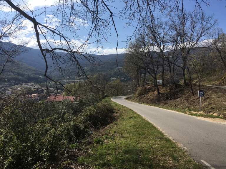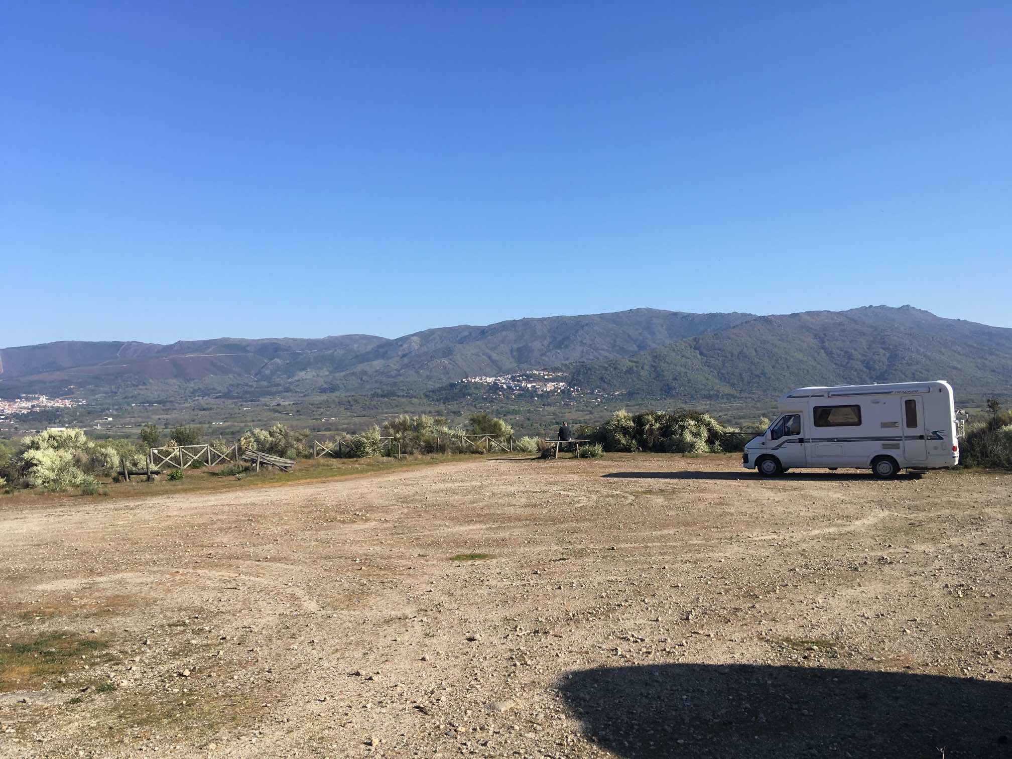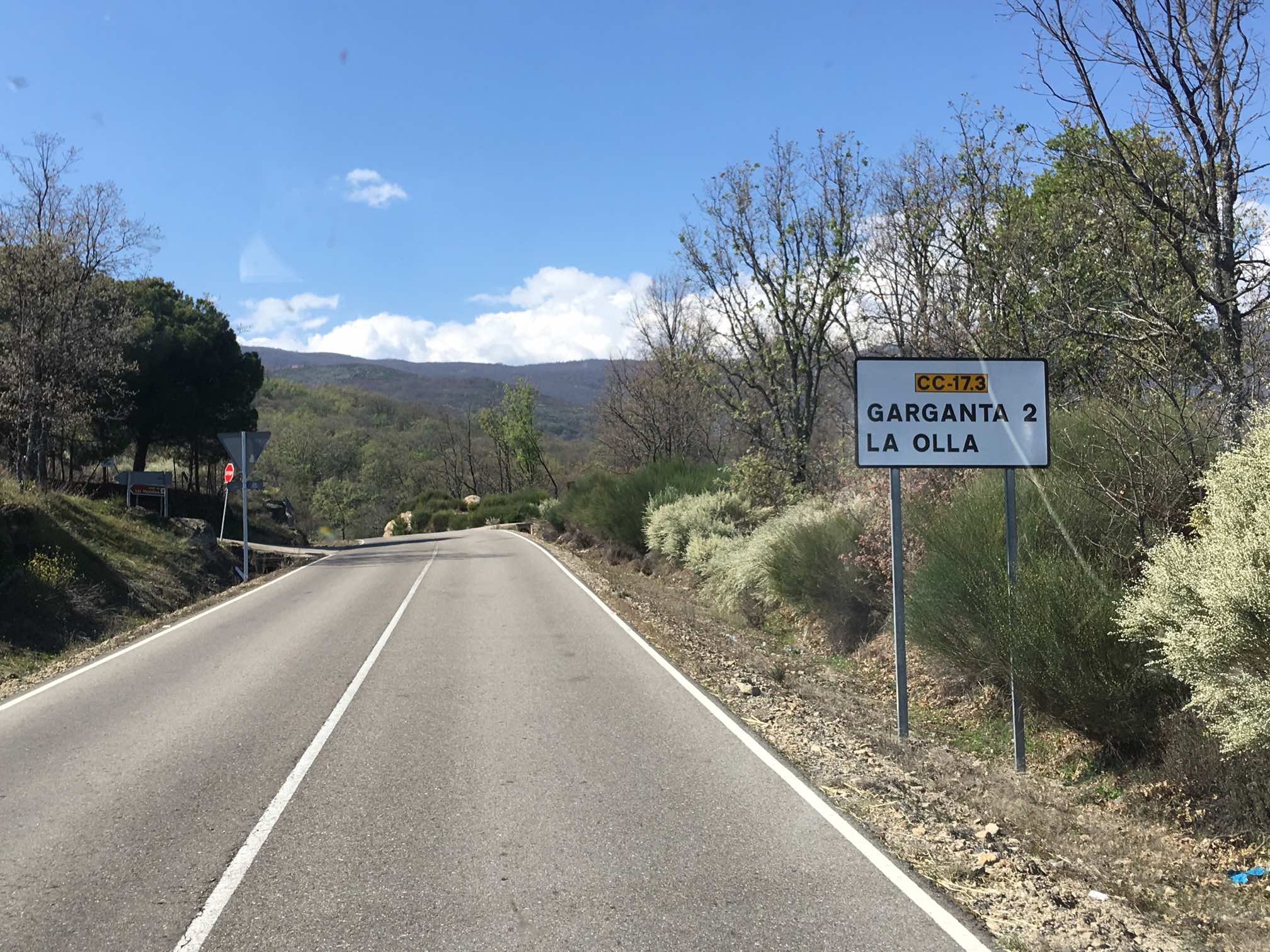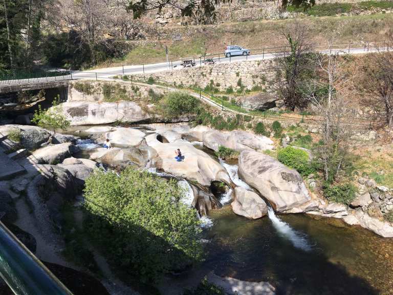 From Plasencia we were continuing East, up towards a more mountainous region. The guide book said to go to Garganta la Olla, which we did, and after visiting their well-known waterfall and interesting rock formations below, we carried on, with me now considering our overnighting options.