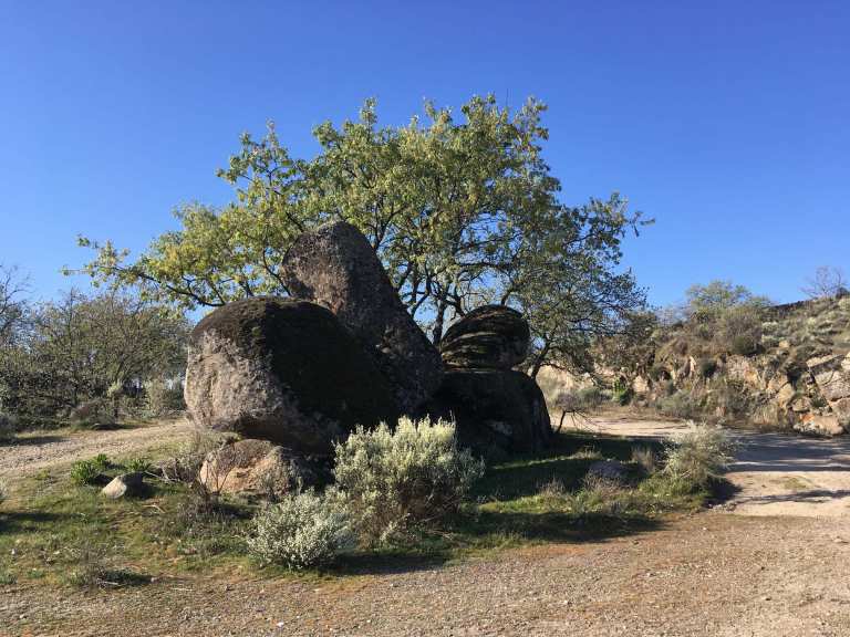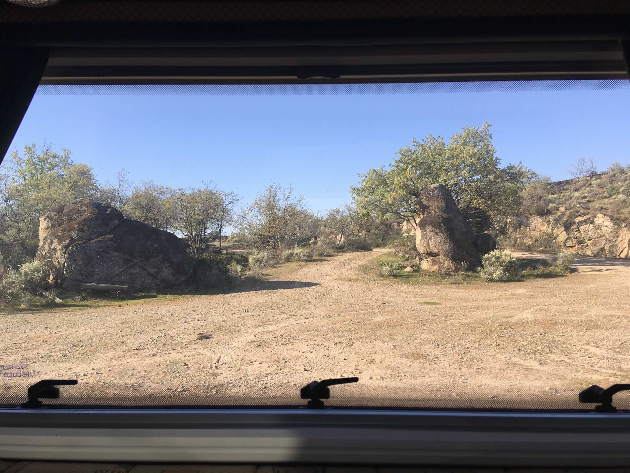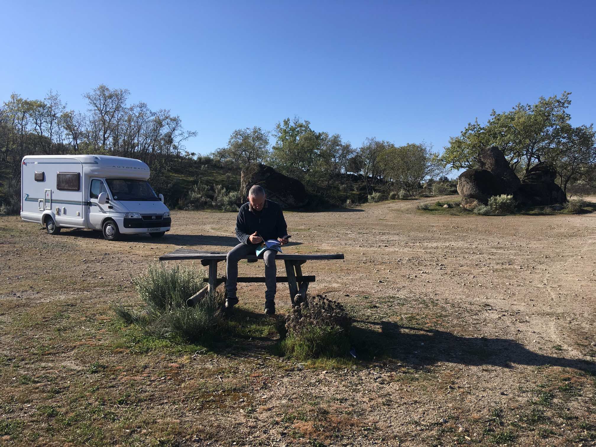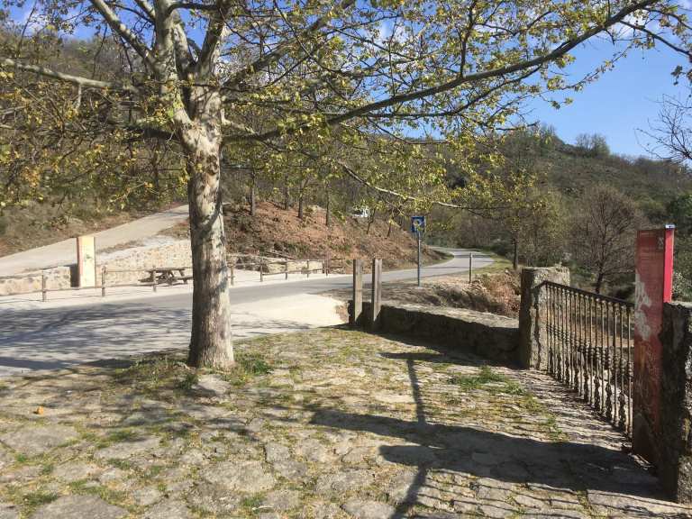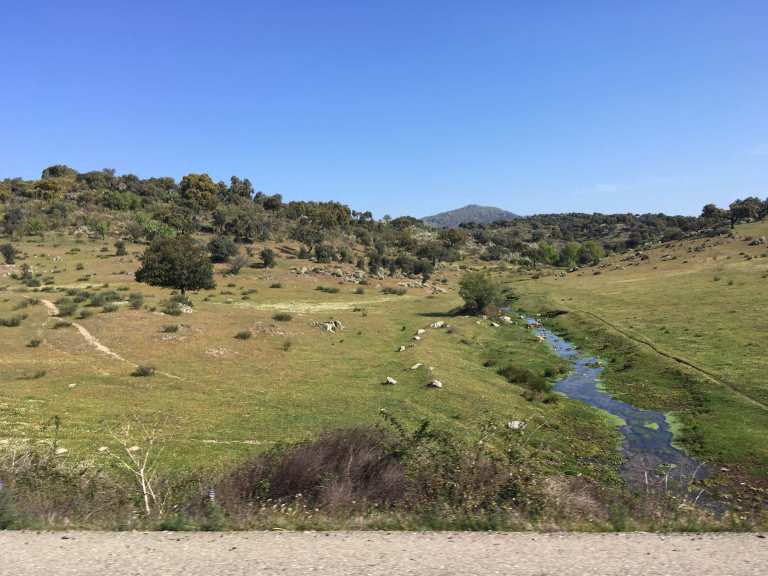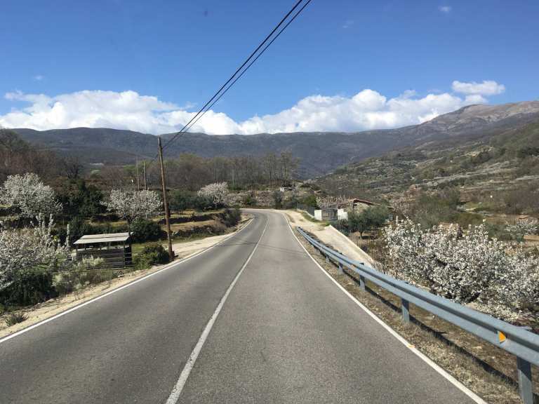 From Plasencia we were continuing East, up towards a more mountainous region. The guide book said to go to Garganta la Olla, which we did, and after visiting their well-known waterfall and interesting rock formations below, we carried on, with me now considering our overnighting options.