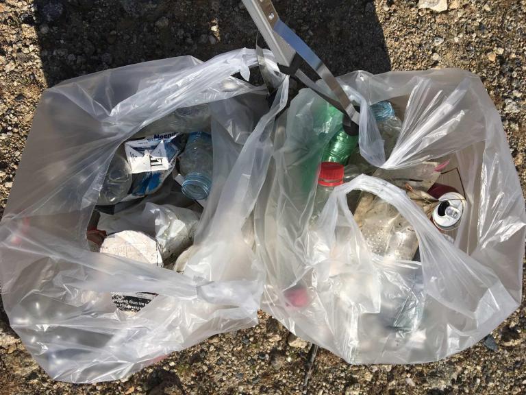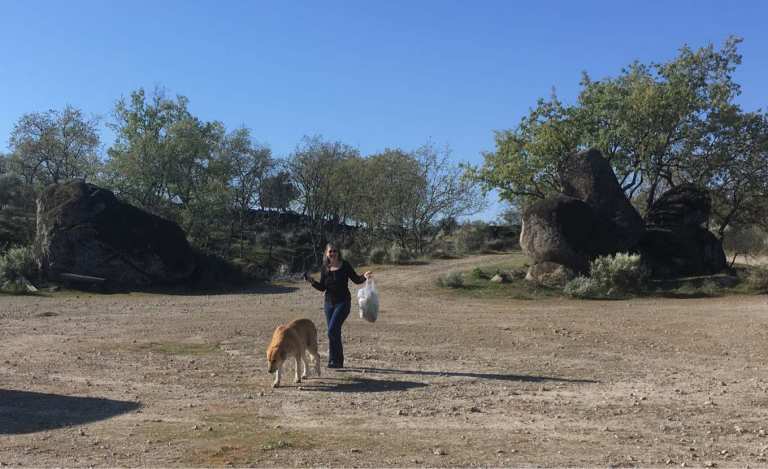 A really good quiet night – no neighbours. There was a large friendly dog that adopted us for a bit, then he exchanged some barks with some neighbouring dogs, after which he had a lie down outside for a while. We were pleased to hear no more barking in the night, and he popped by again in the morning to check on Sophie clearing up the litter around the parking area, and to say good bye.