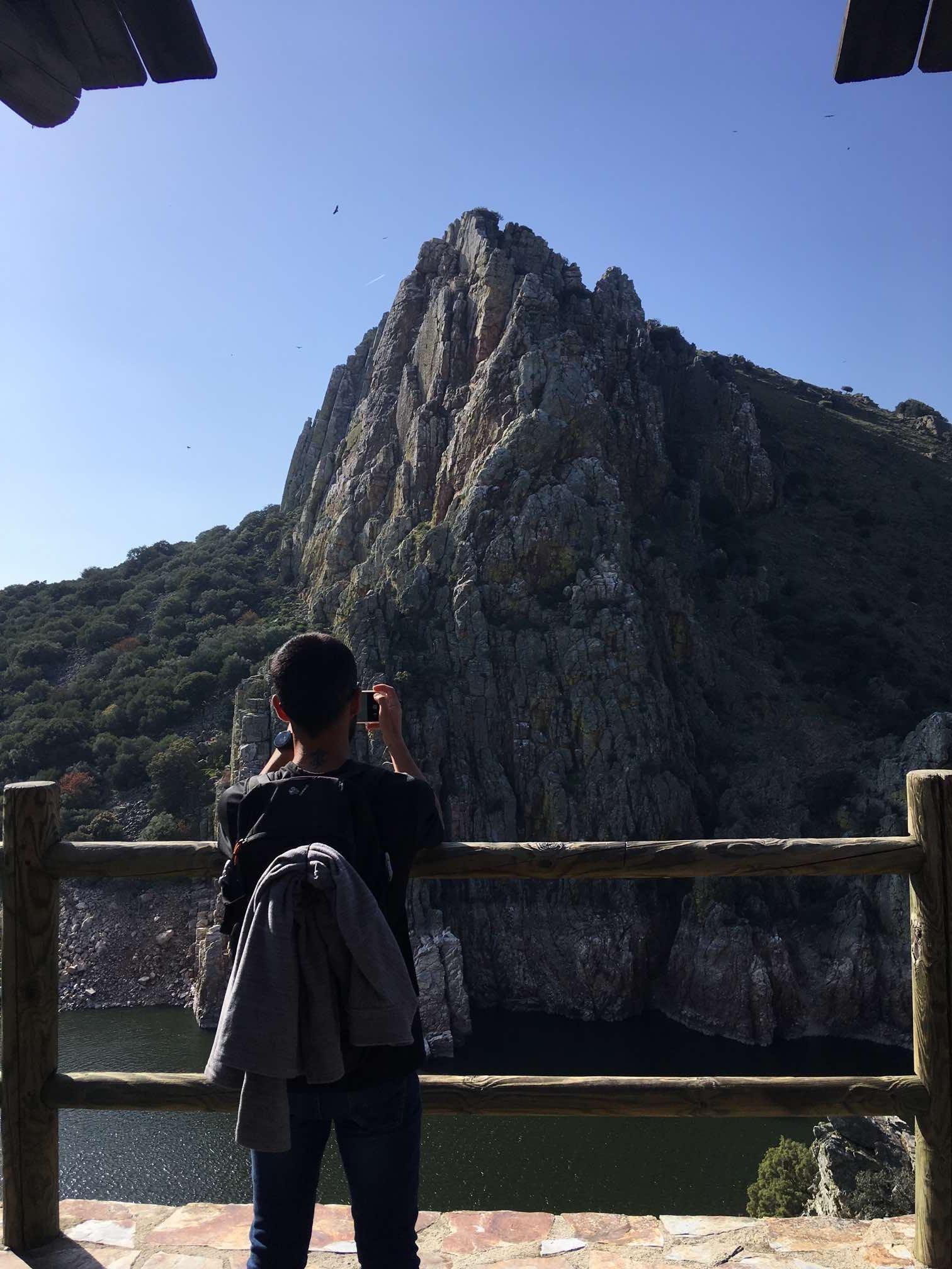 After a lunch break we headed out of the park, where we came across the highlight for us, a narrow gorge, with massive towering rocks, where many dozens of gryphon vultures soared and, if we were lucky, swooped down to our level, where they caught the sun beautifully. We were surprised at the sheer size of the various zoom lenses we saw here, but it takes more than that to intimidate Sophie and her iPhone.
