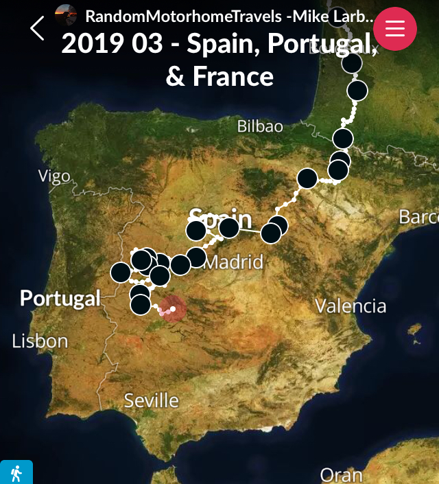 After using the motorhome facilities we were then contemplating our next move. In theory we should now be heading for Trujillo, about 40km down the road. It’s been quite hot today in the low 20s, but this tends to get exaggerated in towns, particularly when walking around, and hills often seem involved.