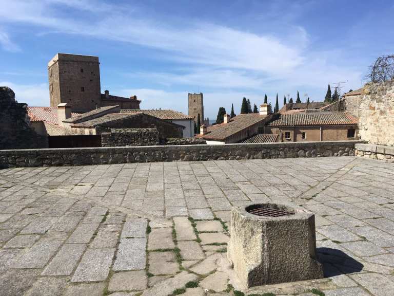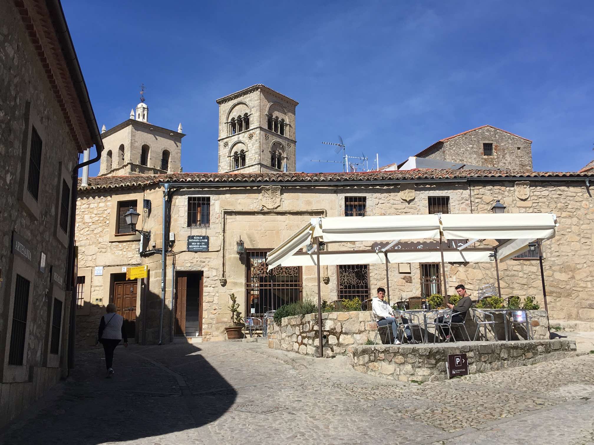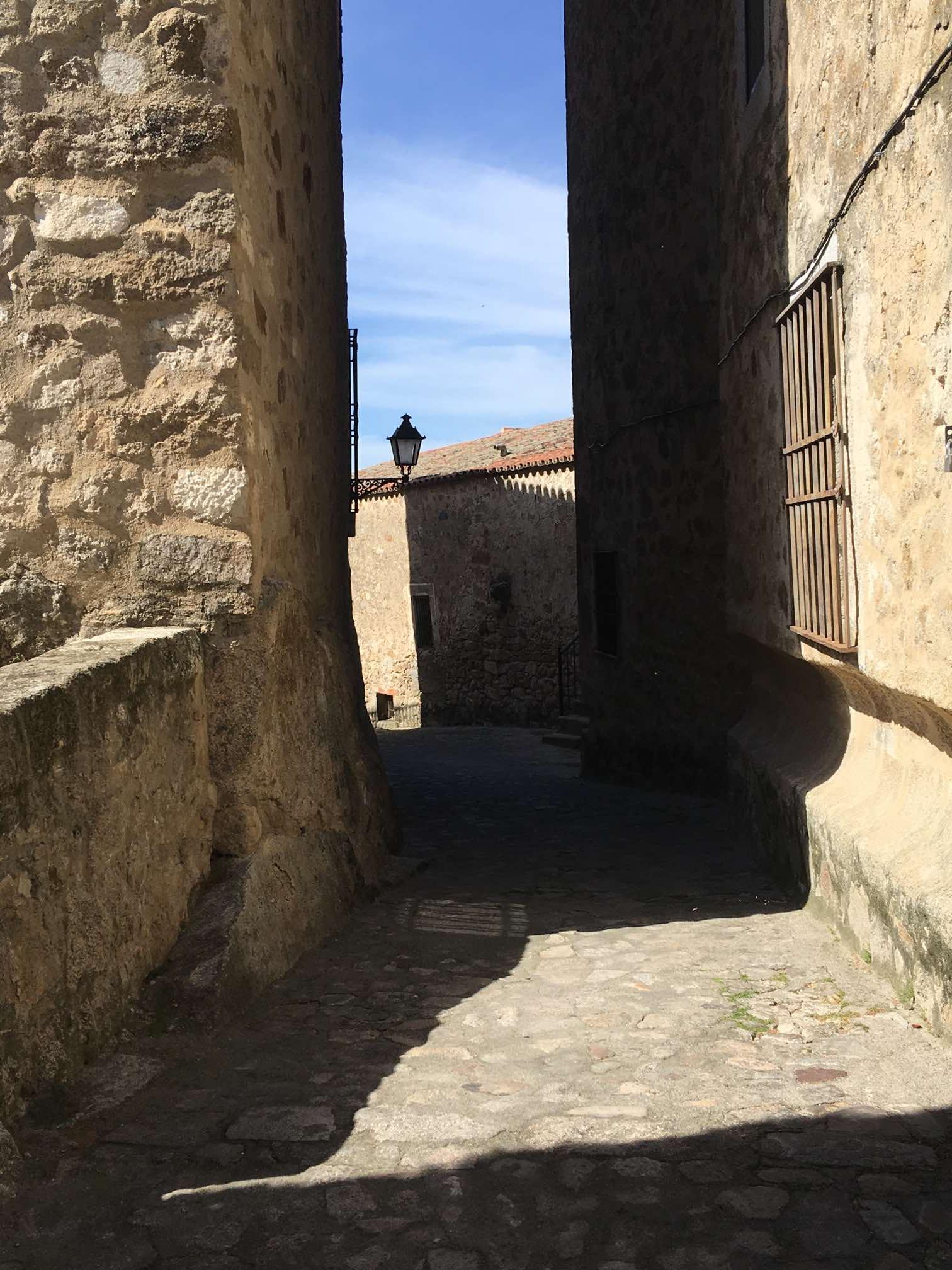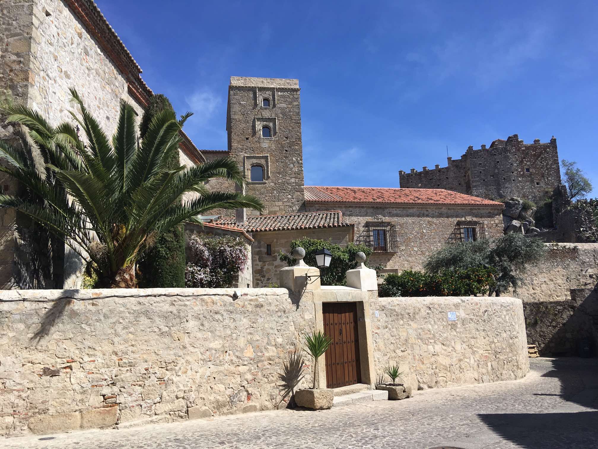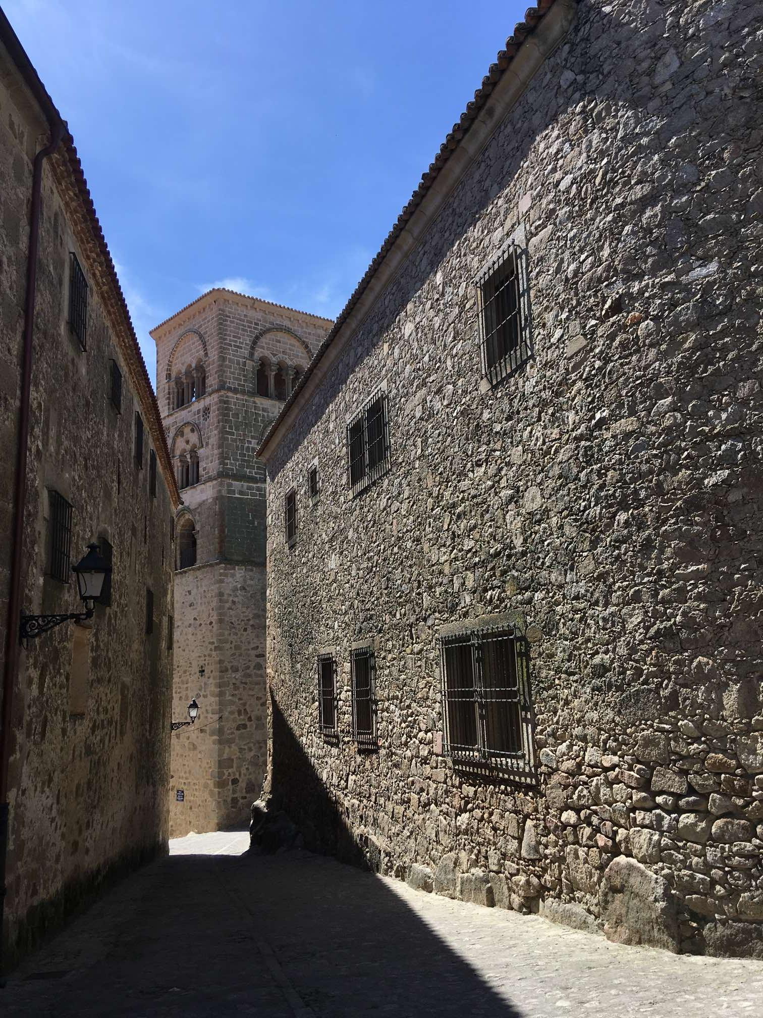 It was roughly a 10 minute stroll uphill to the main square, where we found some steps in the shade to sit on and work out where to go next. I whipped out the iPad because I’d downloaded the Lonely Planet’s Best Drives in Spain & Portugal onto it. I found the reference to Caceres, and immediately read that the steps opposite that lead off from the square take you off into a classic medieval part of the town. Most definitely worth a visit in my view.