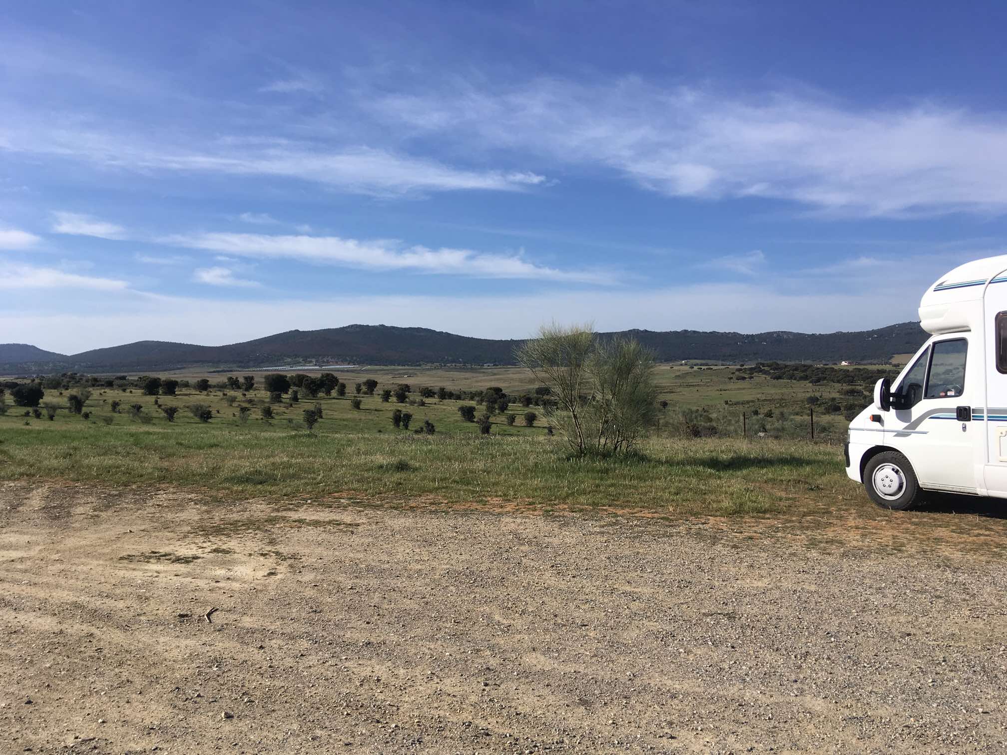 We’re quite tired and so one option is to bypass Trujillo completely, but Sophie tells me we need to visit, so we’ve opted to head for a Park4night en route, close to a reservoir. We’re in a large area of hard-standing, with open views, and a great breeze, which is really appreciated. I’ve been told that tomorrow we’ll be visiting Trujillo before it gets too hot.