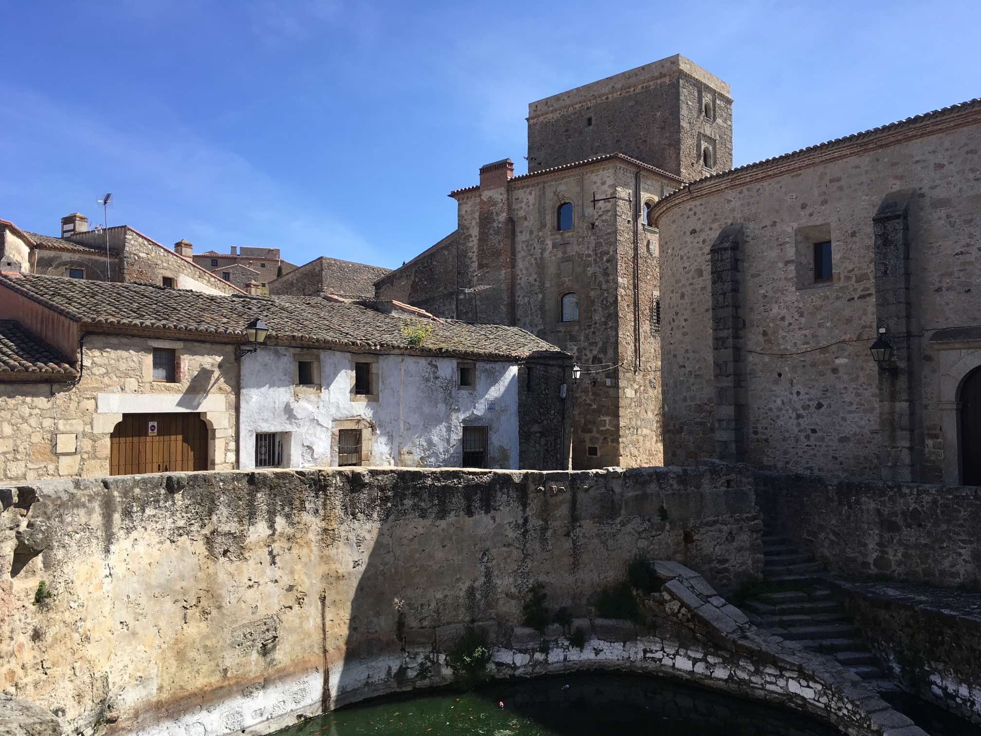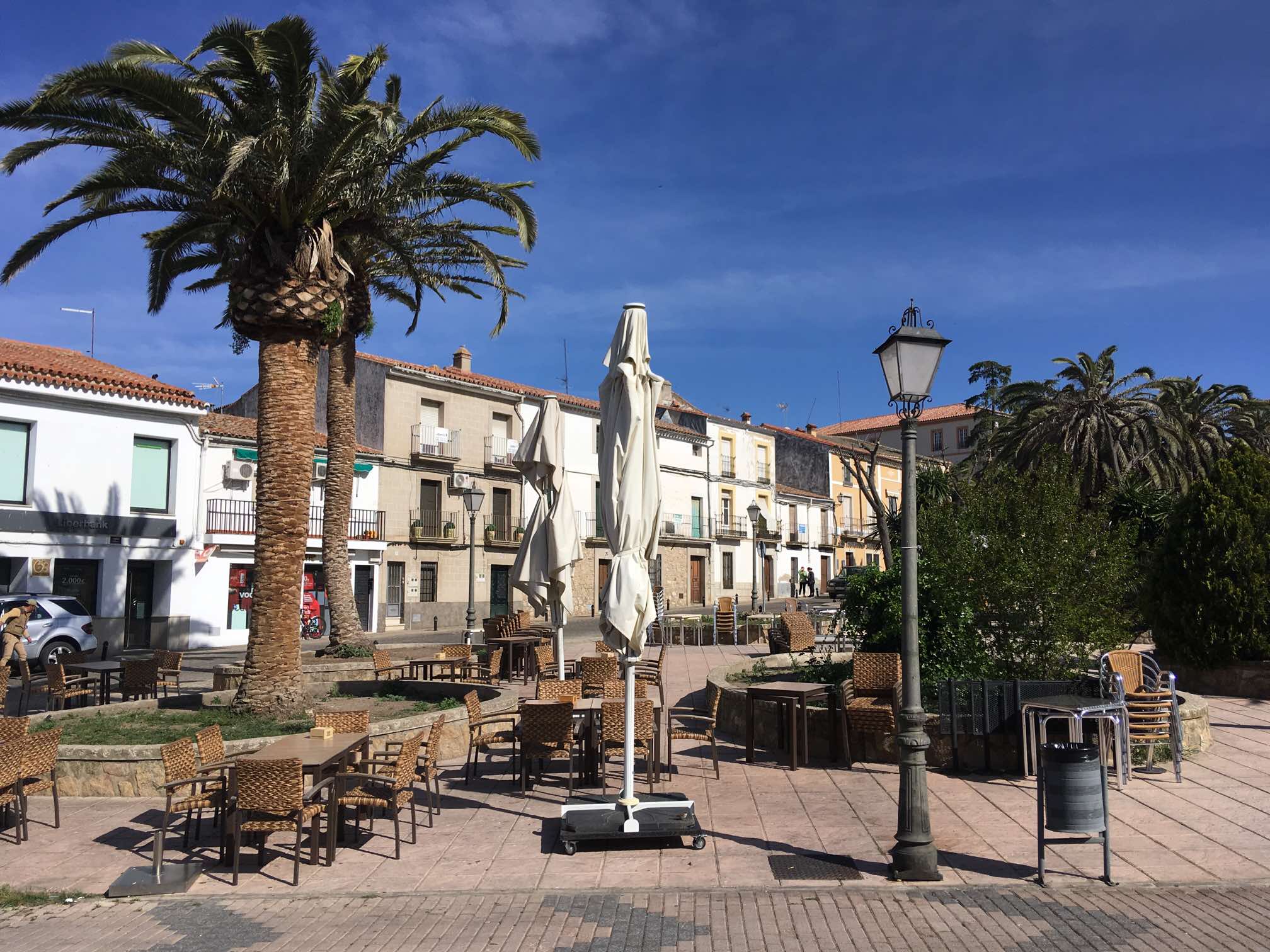 Garrovillas is written up well in the guidebooks and its main colonnaded square is quirky and attractive. We had a scour round the rest of the town, and then heading for Caceres.