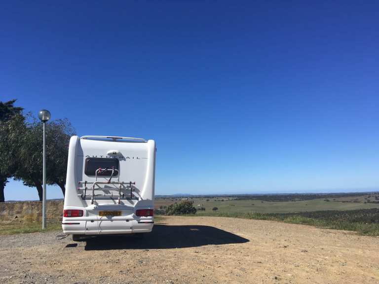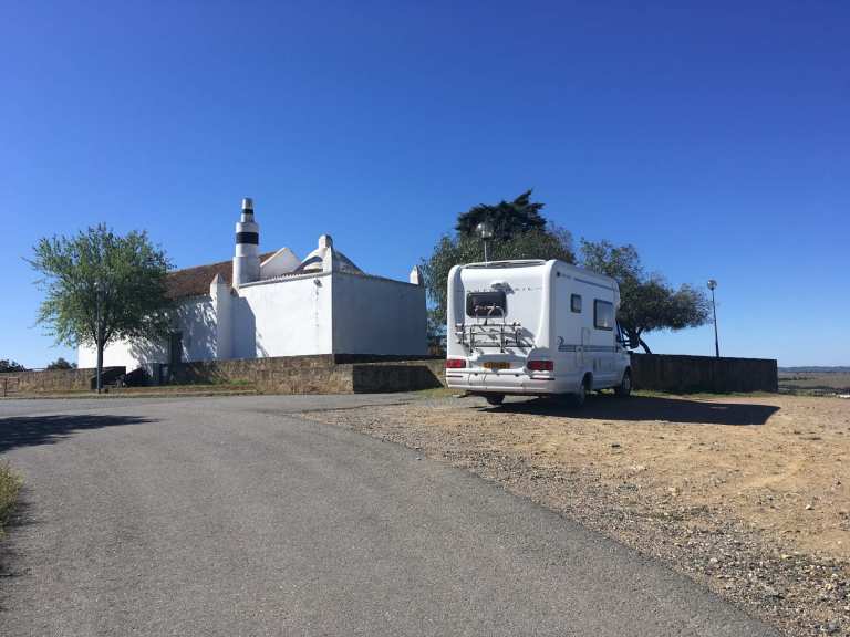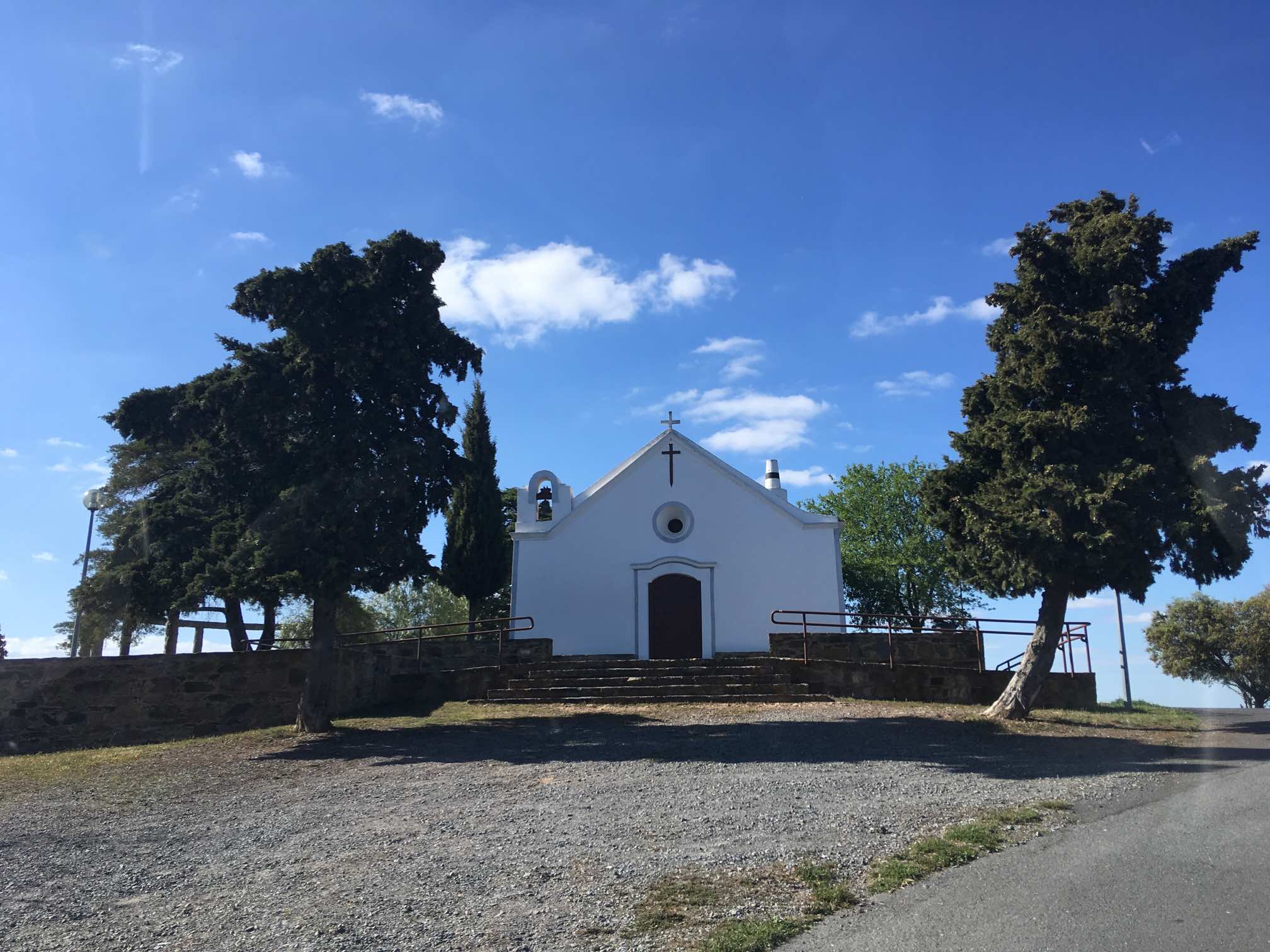 So, Mertola to Almodôvar was bouncy, but we arrived with our fillings intact but heads spinning. I’d seen a fresh Park4Night up on a hill, next to a chapel, that boasted great 360 degree far-reaching views. The author of this spot said the narrow access meant that it was only suitable for small vans. We don’t scare that easily, and a check on Google Maps made it clear to us that our 6m motorhome should not have any problem, and we were right. It was a better quality road than we’d seen for most of the day.