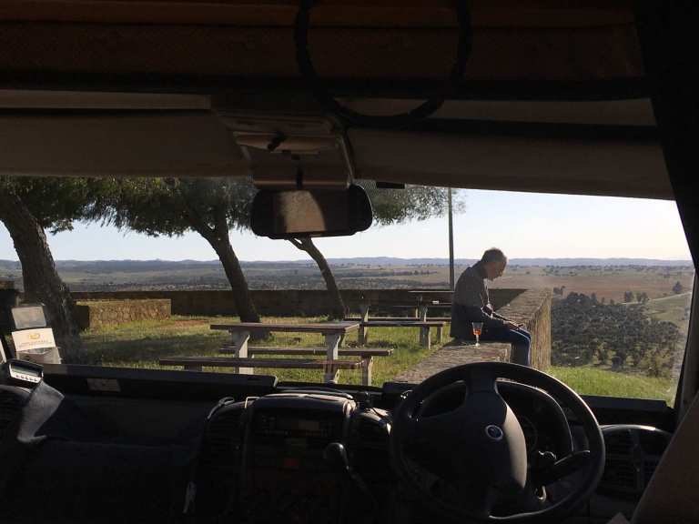 It’s a stunning location and we even had a drive by from the local police (GNR), who are the ones that tell errant motorhomers to move on. Such a drive by, a quick park up, and a stretch, will generally engender that sinking feeling that we’re about to be moved on. However, if they completely ignore you, then drive off, this is seen in motorhoming circles as being as good as a written invitation to spend the night. So we breathed a collective sigh of relief when they disappeared over the brow of the hill, and returned to enjoying the view.
