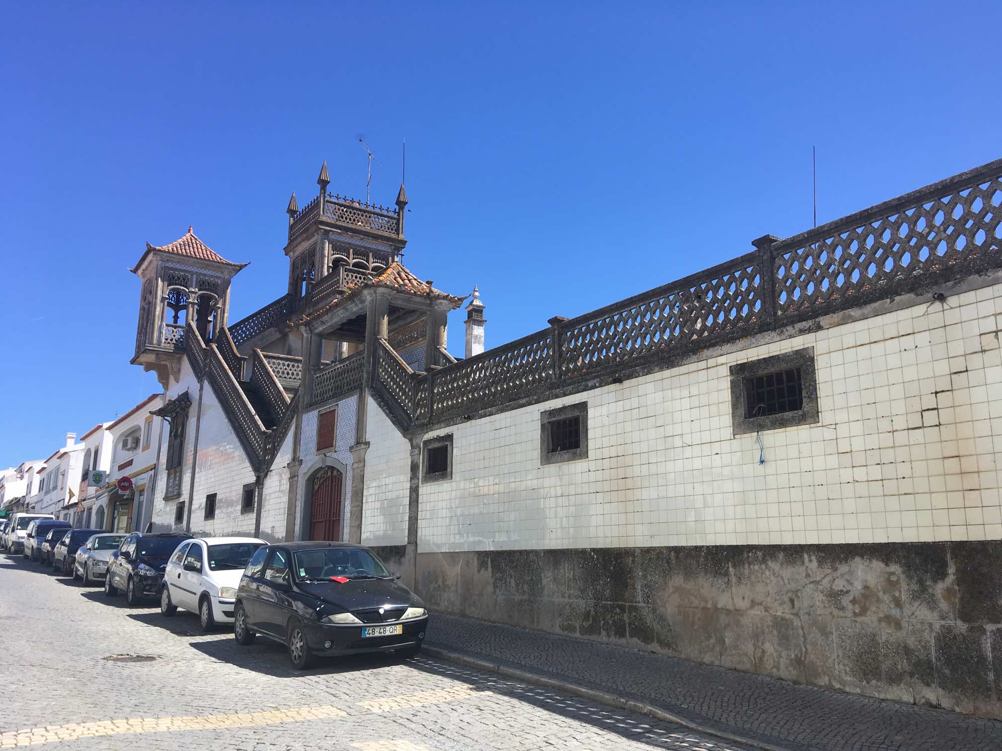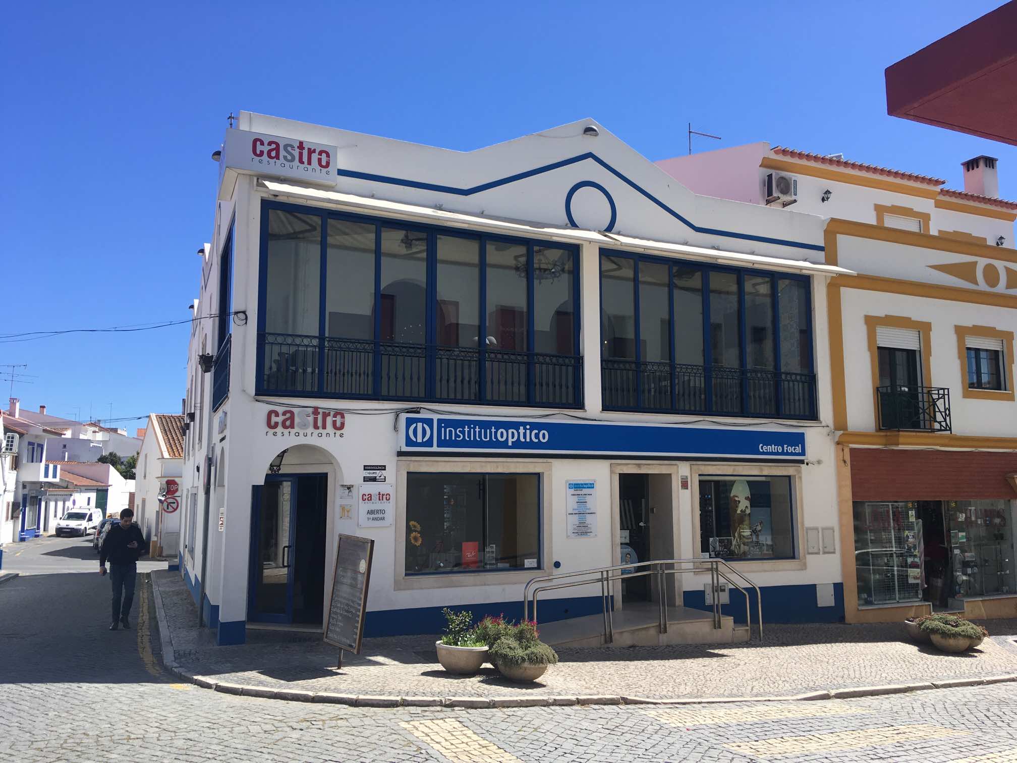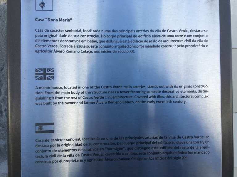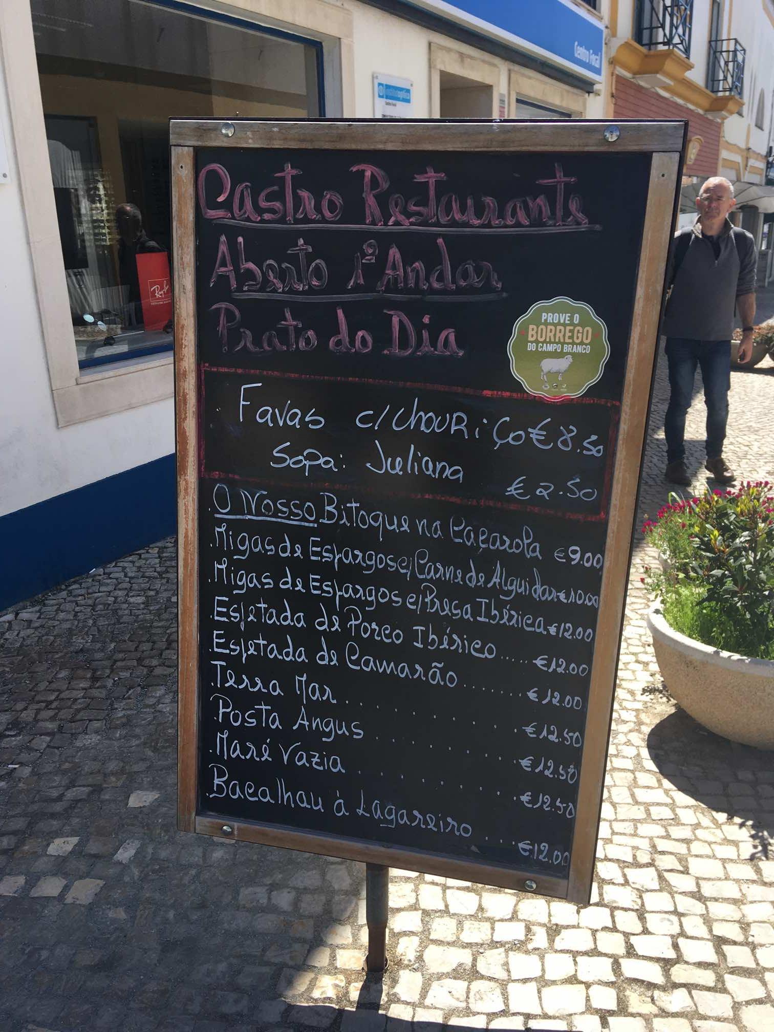 Before dealing with these essentials though, I’d seen a very highly rated TripAdvisor restaurant in town, and we reckoned we were due our first Portuguese meal out. De Castro restaurant at the top of the main street was good. Helpful staff, with decent English, and good flavours throughout. A large glass of red wine at €2 and coffee at €0.90 were also welcome prices.