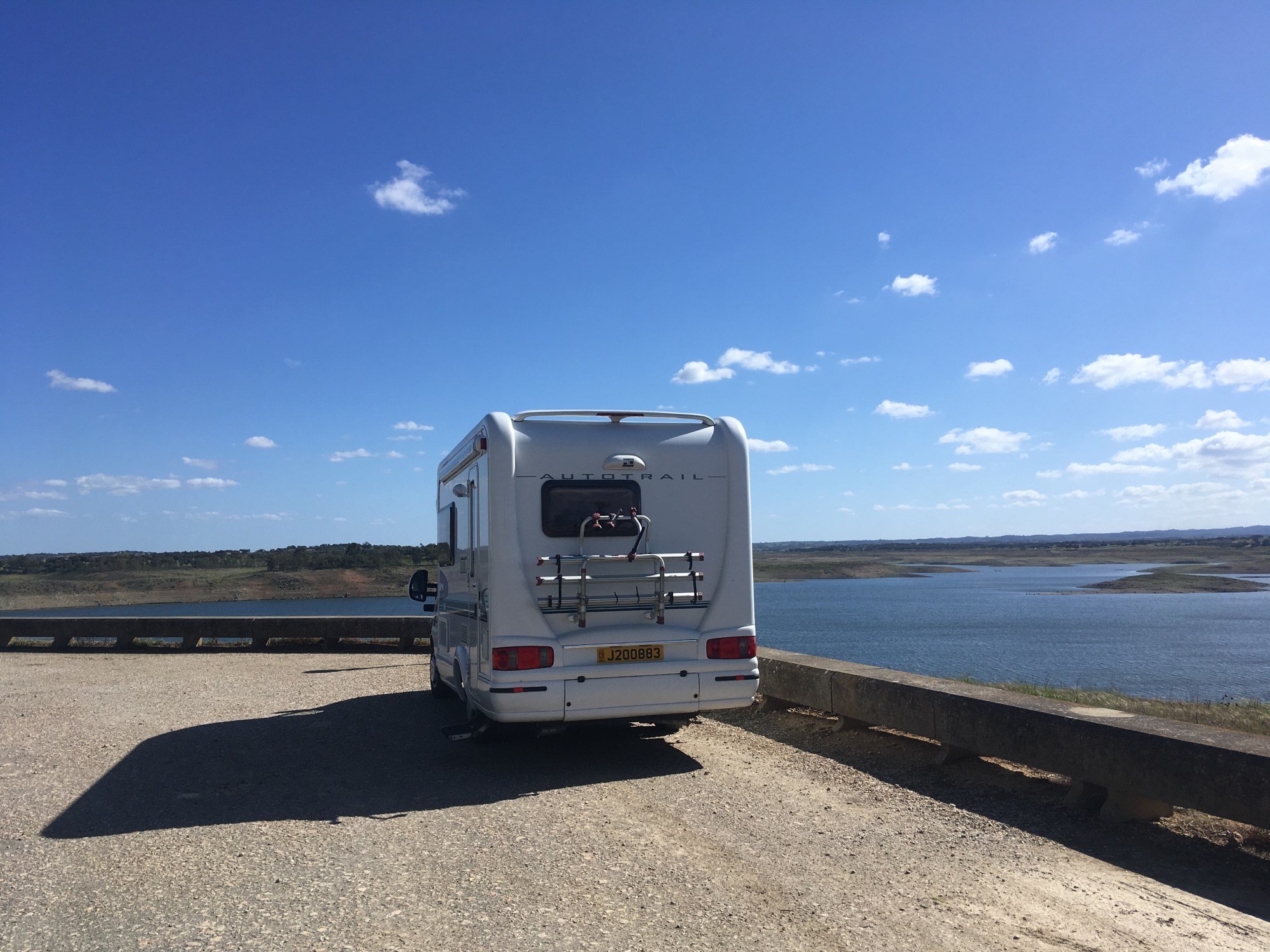 We then aimed for a Park4Night out in the sticks overlooking a reservoir. There is the option to park in the empty car park or the one with half a dozen motorhomes in it. So here we are on our antisocial own, and it suits us so much more. Of course, they might all know something we don’t 😉.