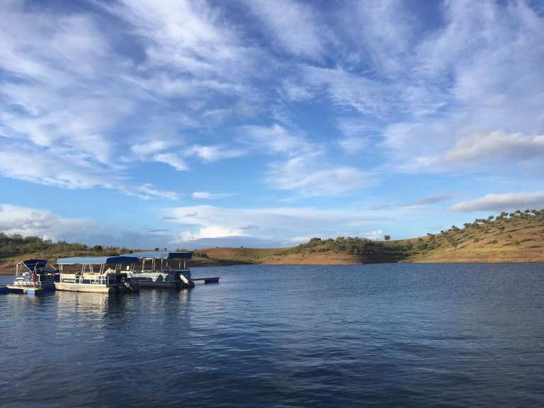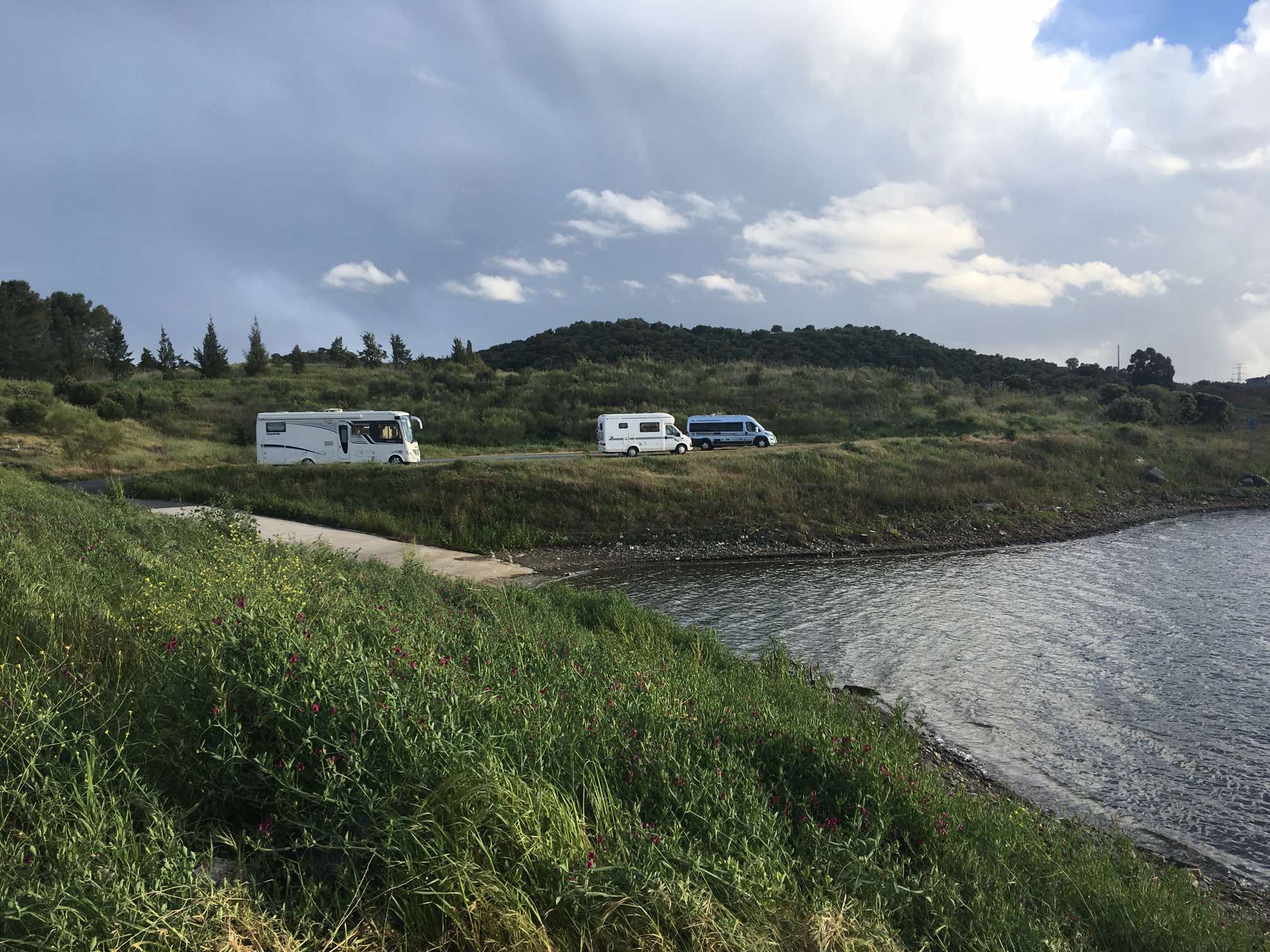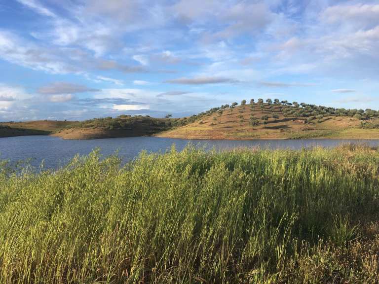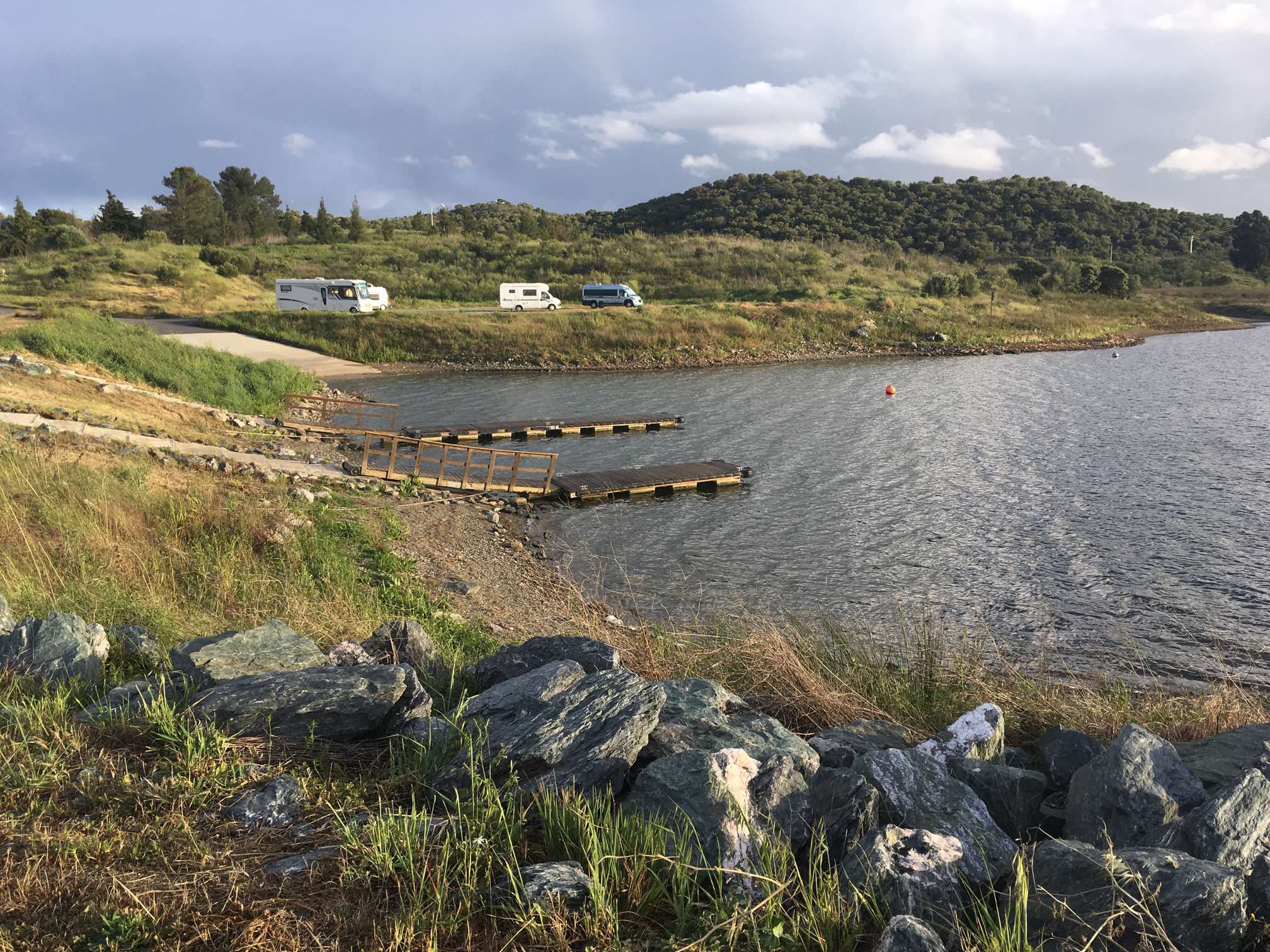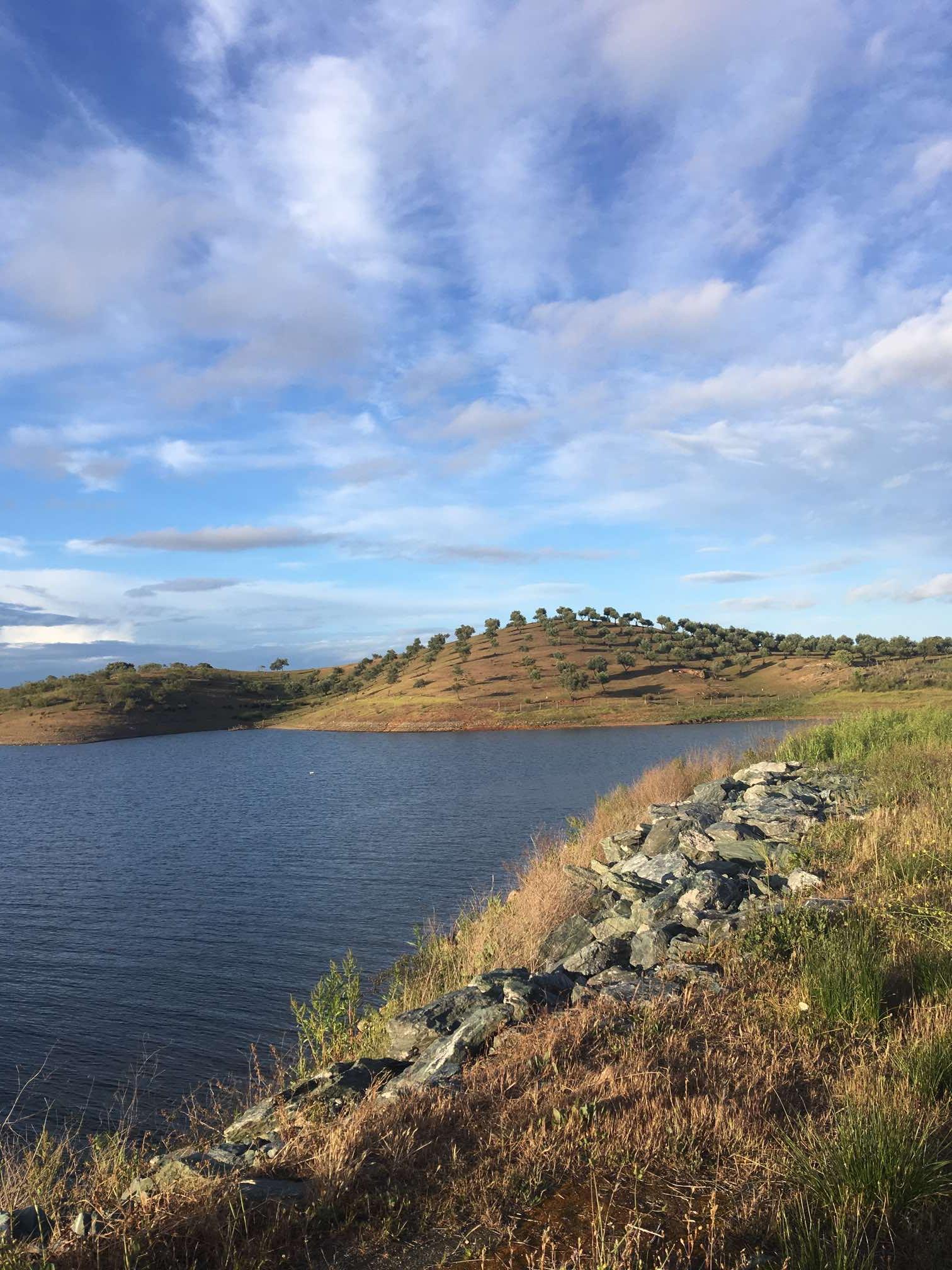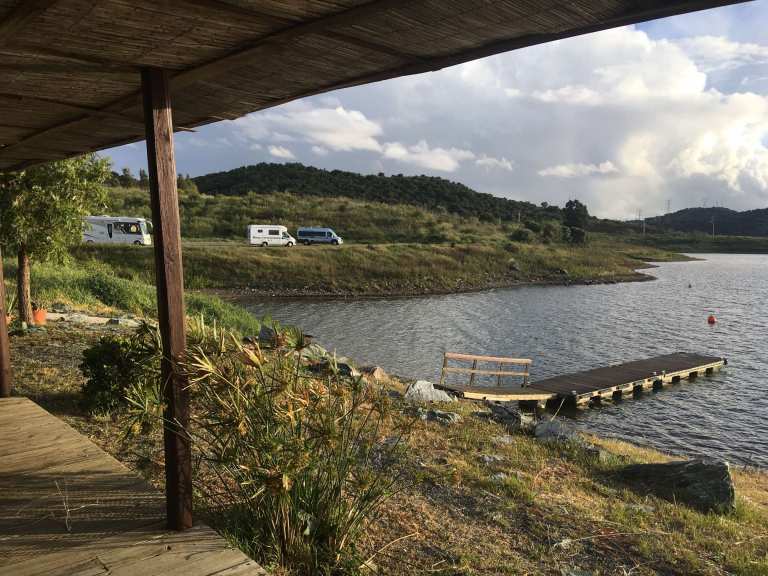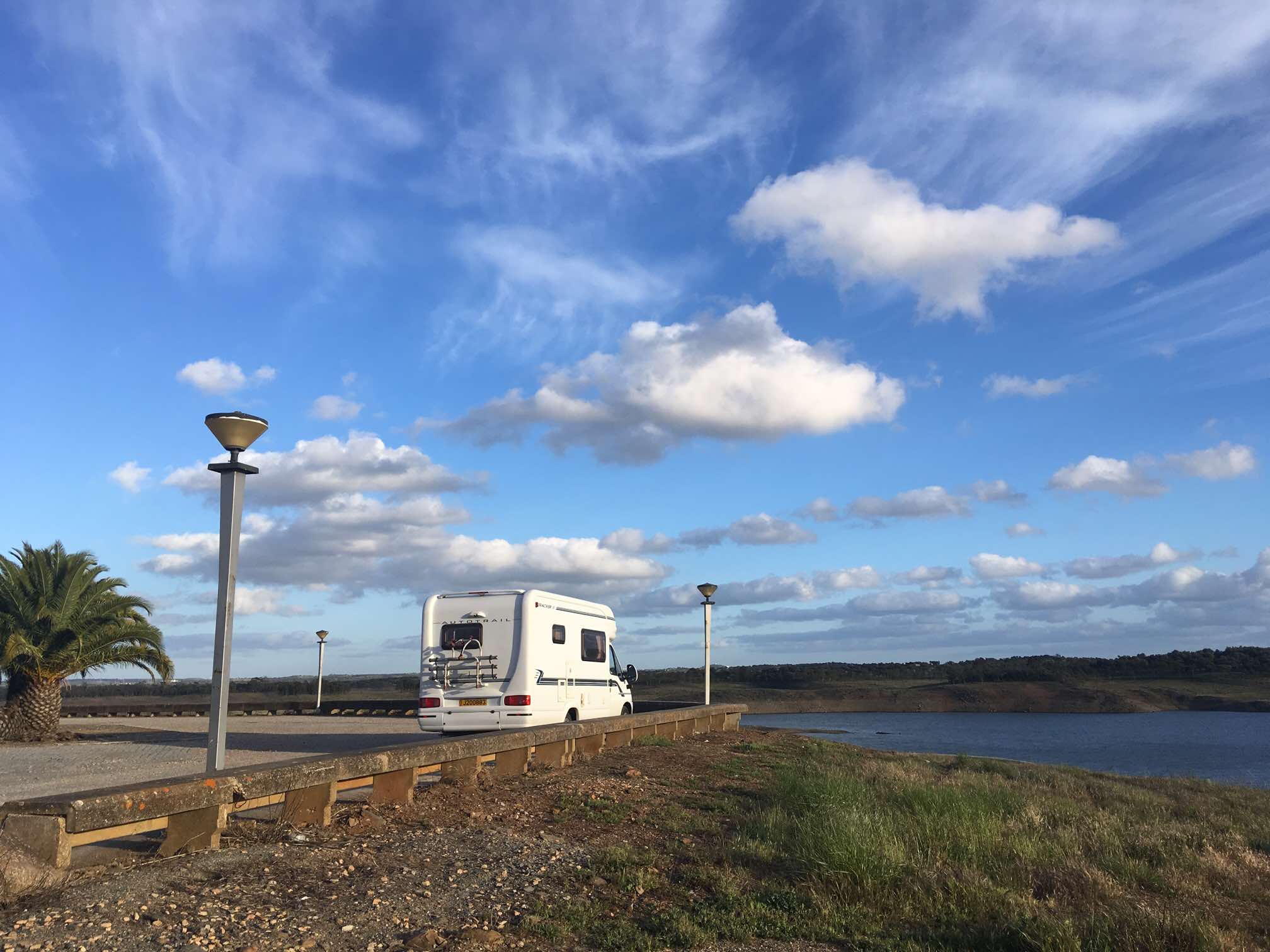 My objective for the night was the Barragem d‘Alqueva, another reservoir. I’d heard that these were popular haunts for motorhomers, and a quick check on Google Maps showed a spacious area, so that if it was busy, we wouldn’t have to cosy up with the other van dwellers. As it turned out, there are only another half-dozen motorhomes, so we can all enjoy our personal space.