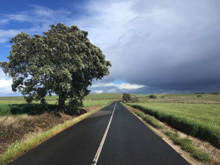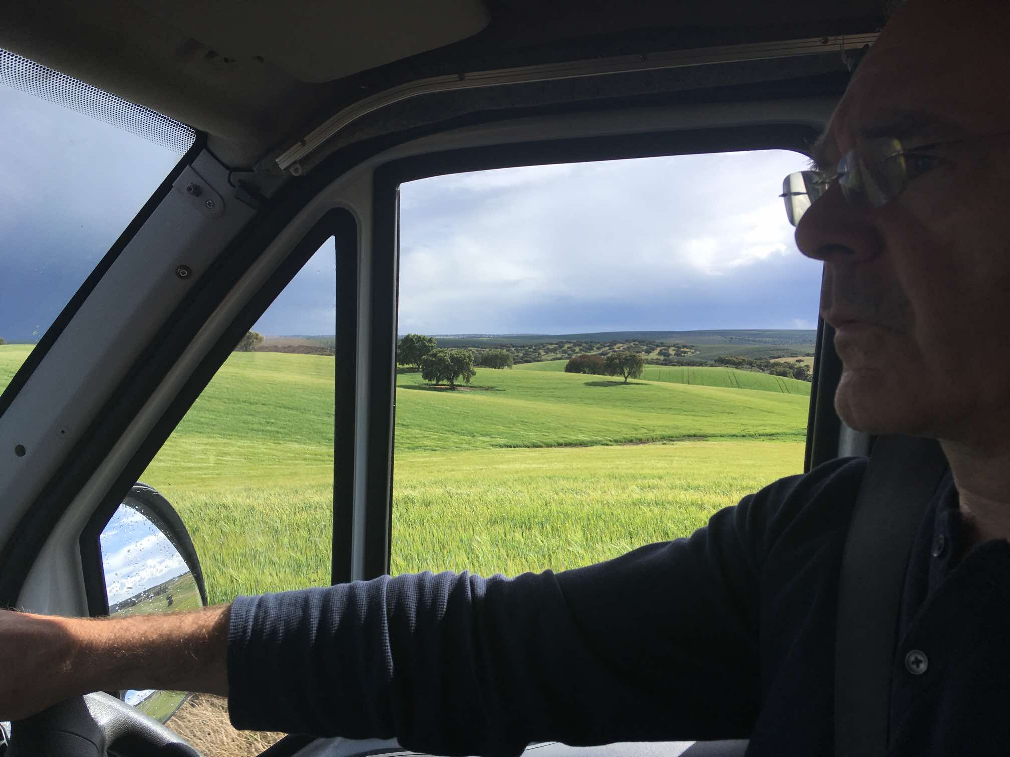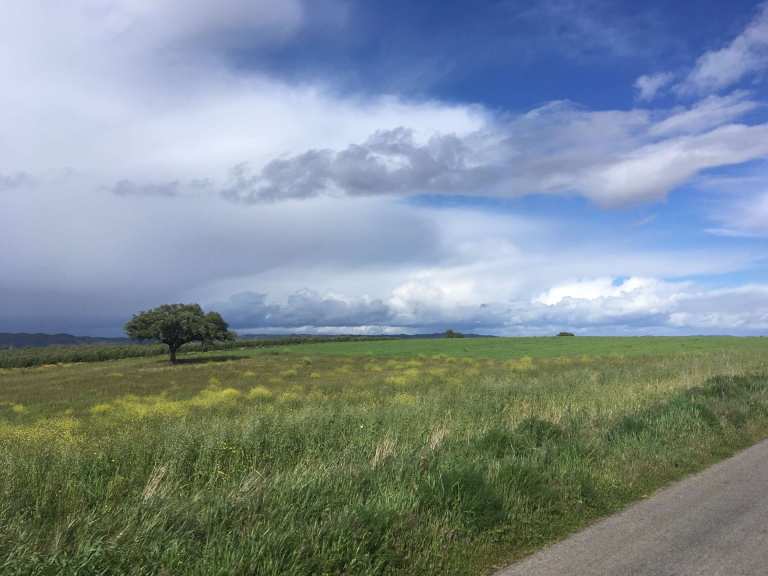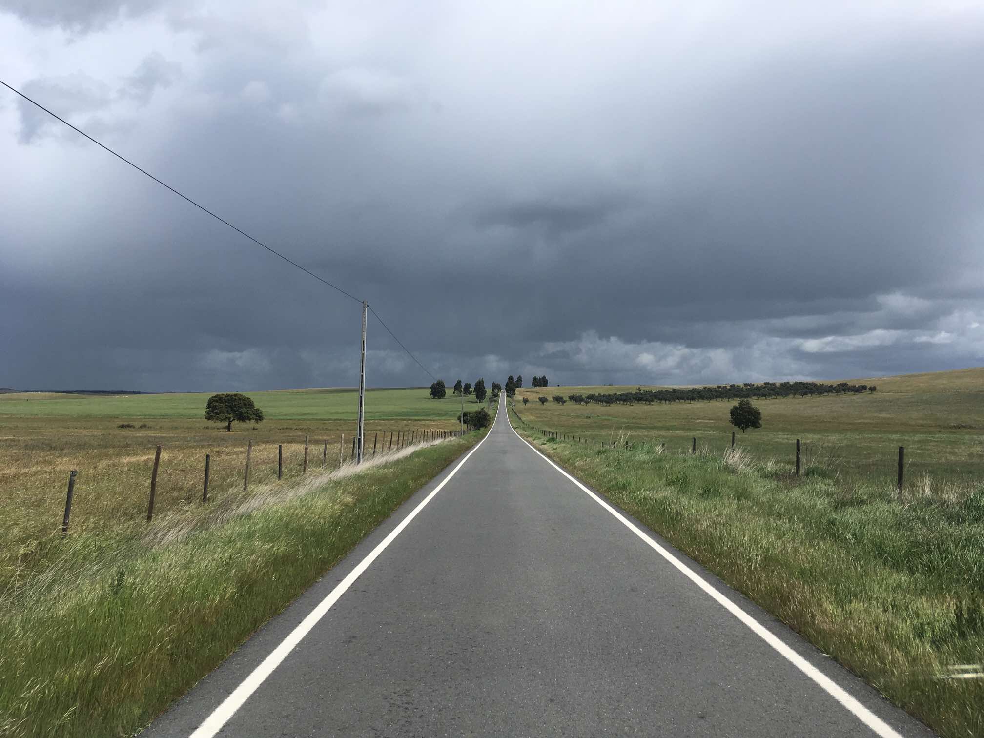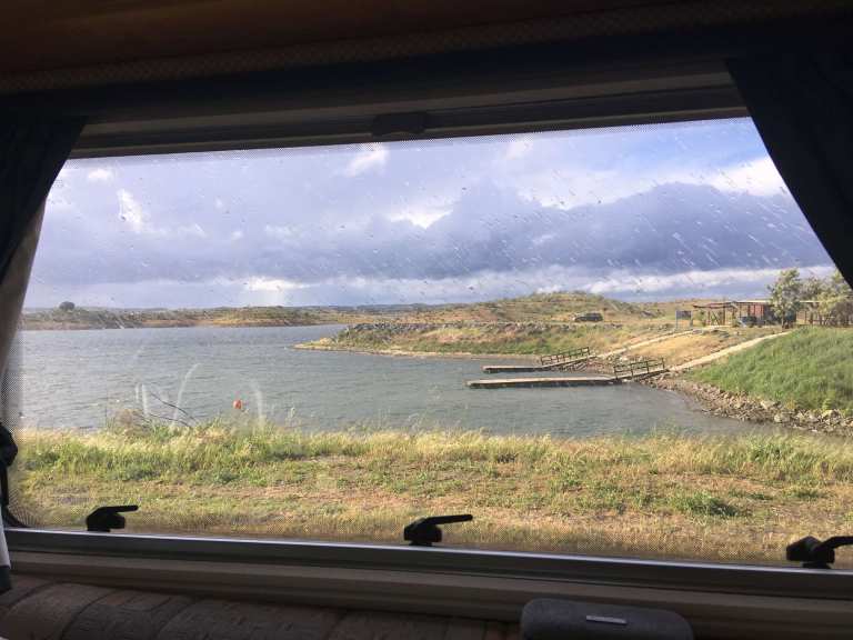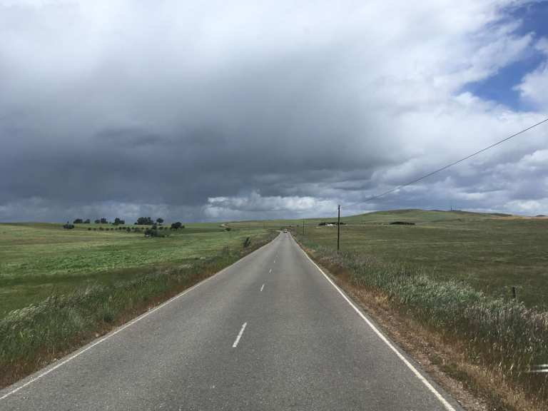 We’d initially said we’d ignore Beja town, then Sophie Googled it and said we would visit. At Lidl the wind was crazy and cold, and so we decided against a visit. As we pulled out of the carpark, the heavens opened, and within moments the temperature dropped from 12C to 5C, and with wipers on double-speed, we were out of Beja.