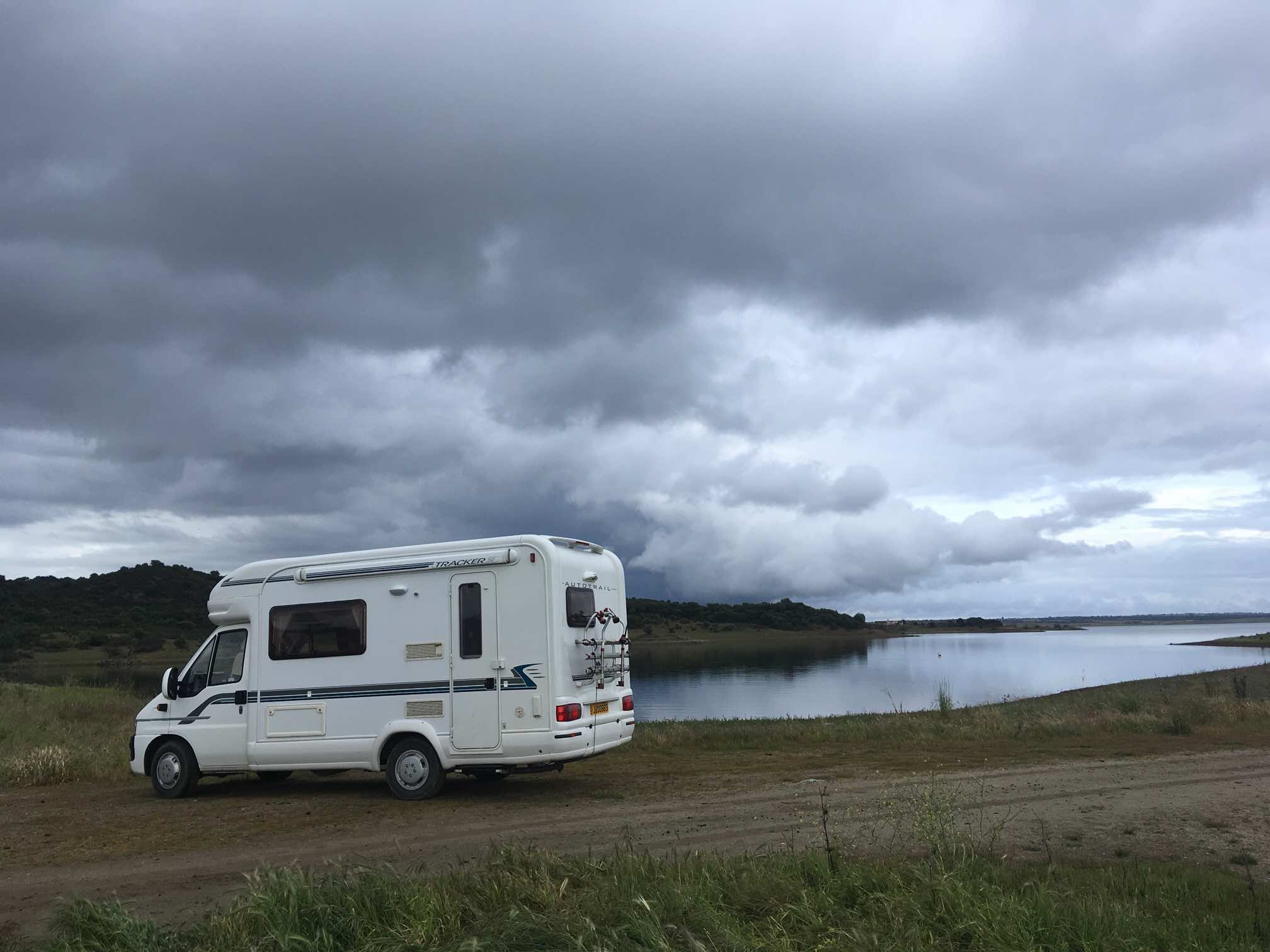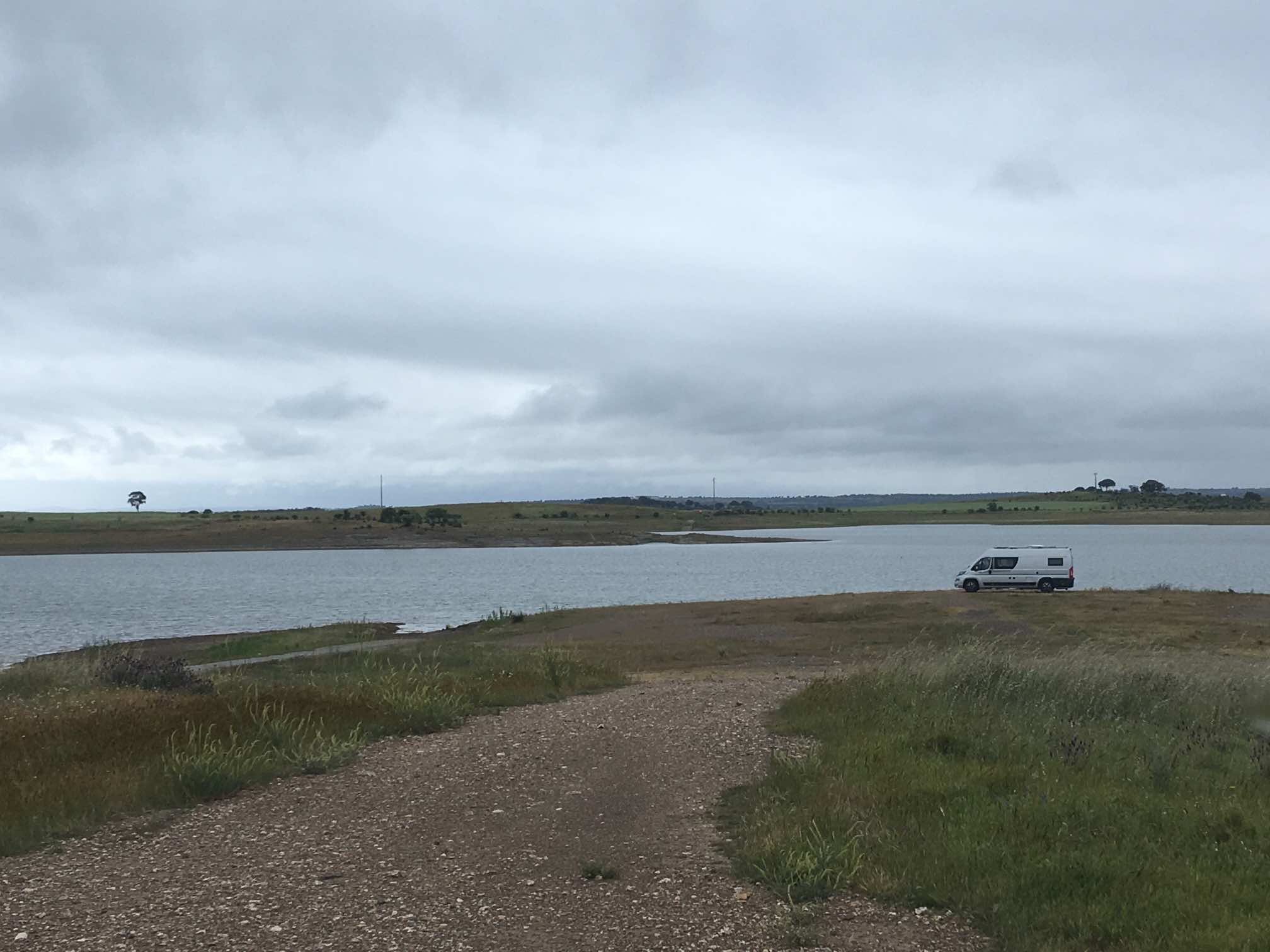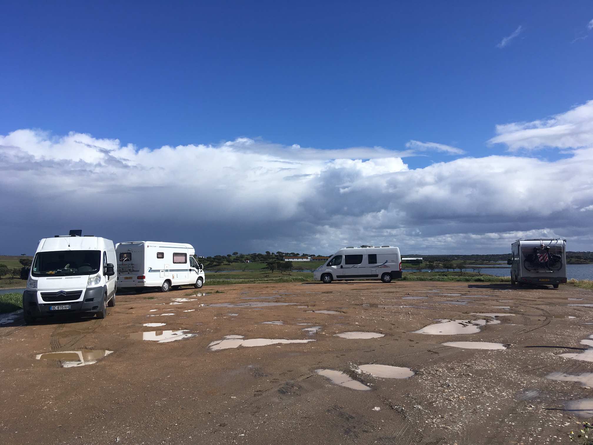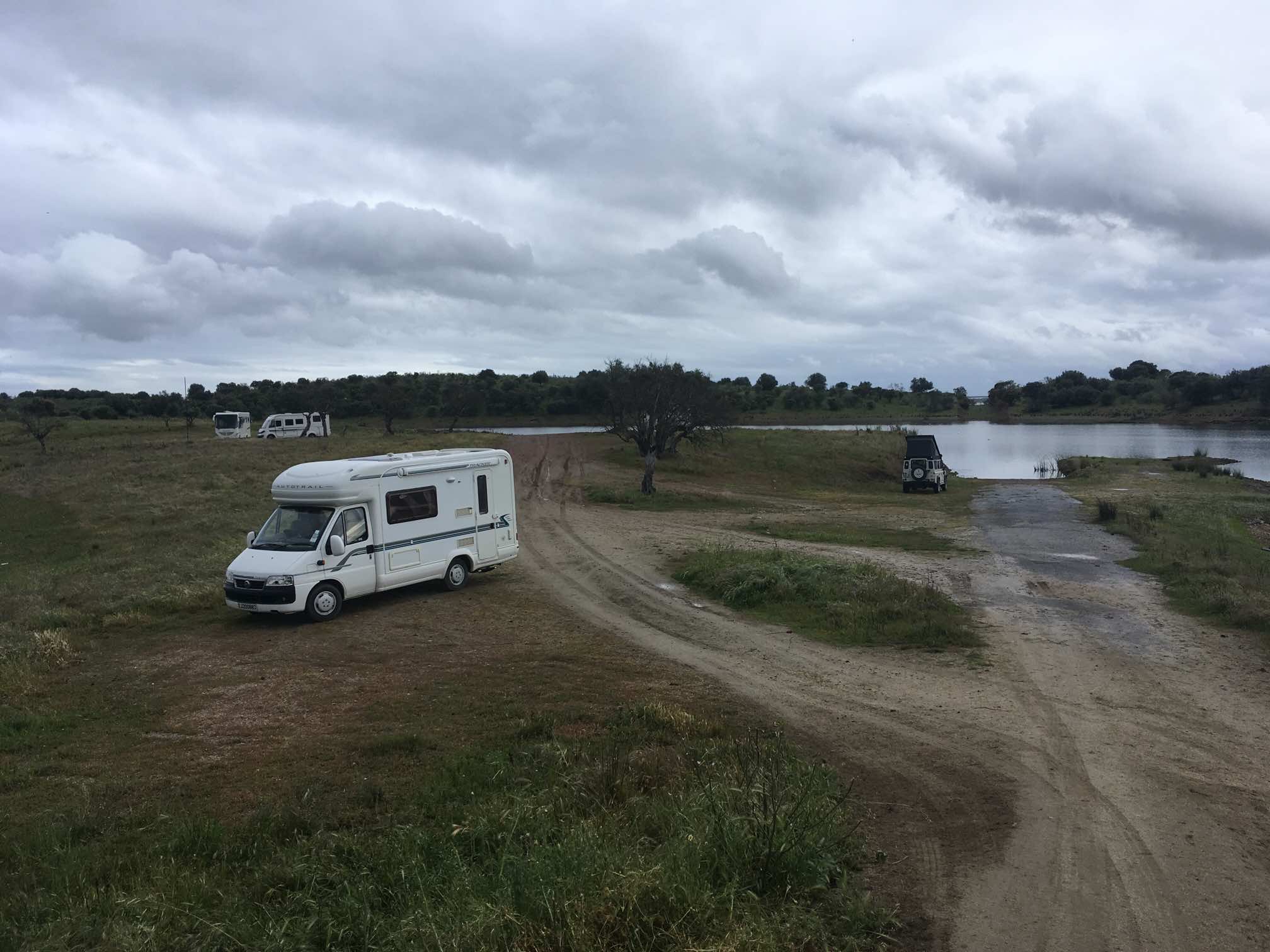 So tonight we find ourselves a few km from Monsaraz down by the reservoir, with three motorhomes and a landrover with a pop-up roof, and loads of room. We’ve had a few unsettled days, weather-wise, but it looks like that’s going to improve from tomorrow. Let’s hope so.