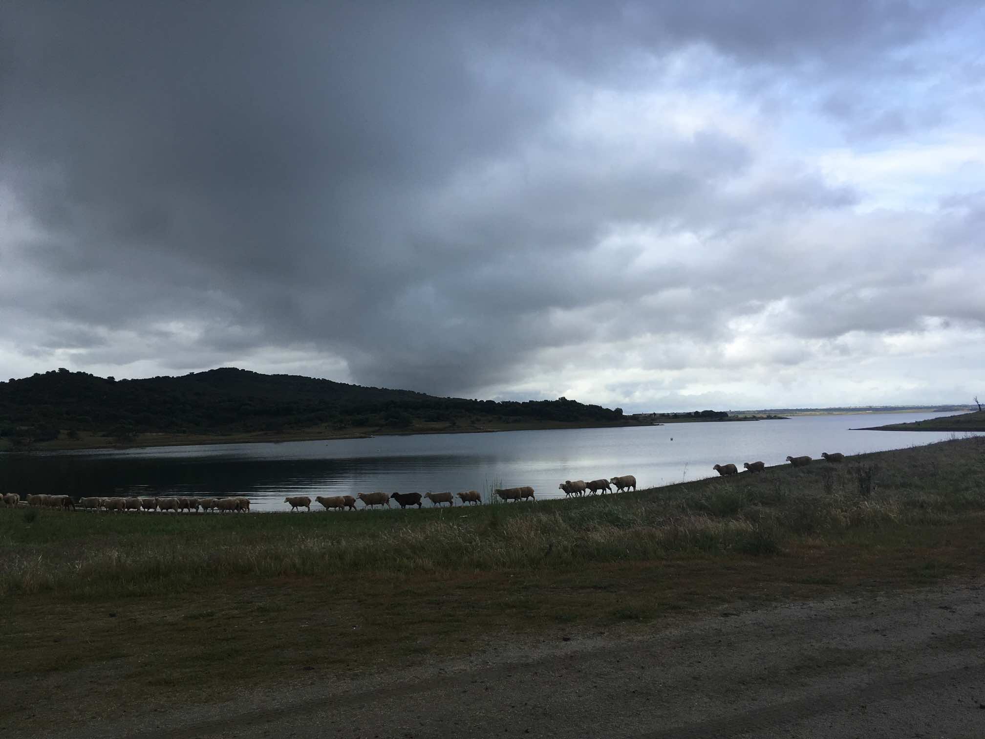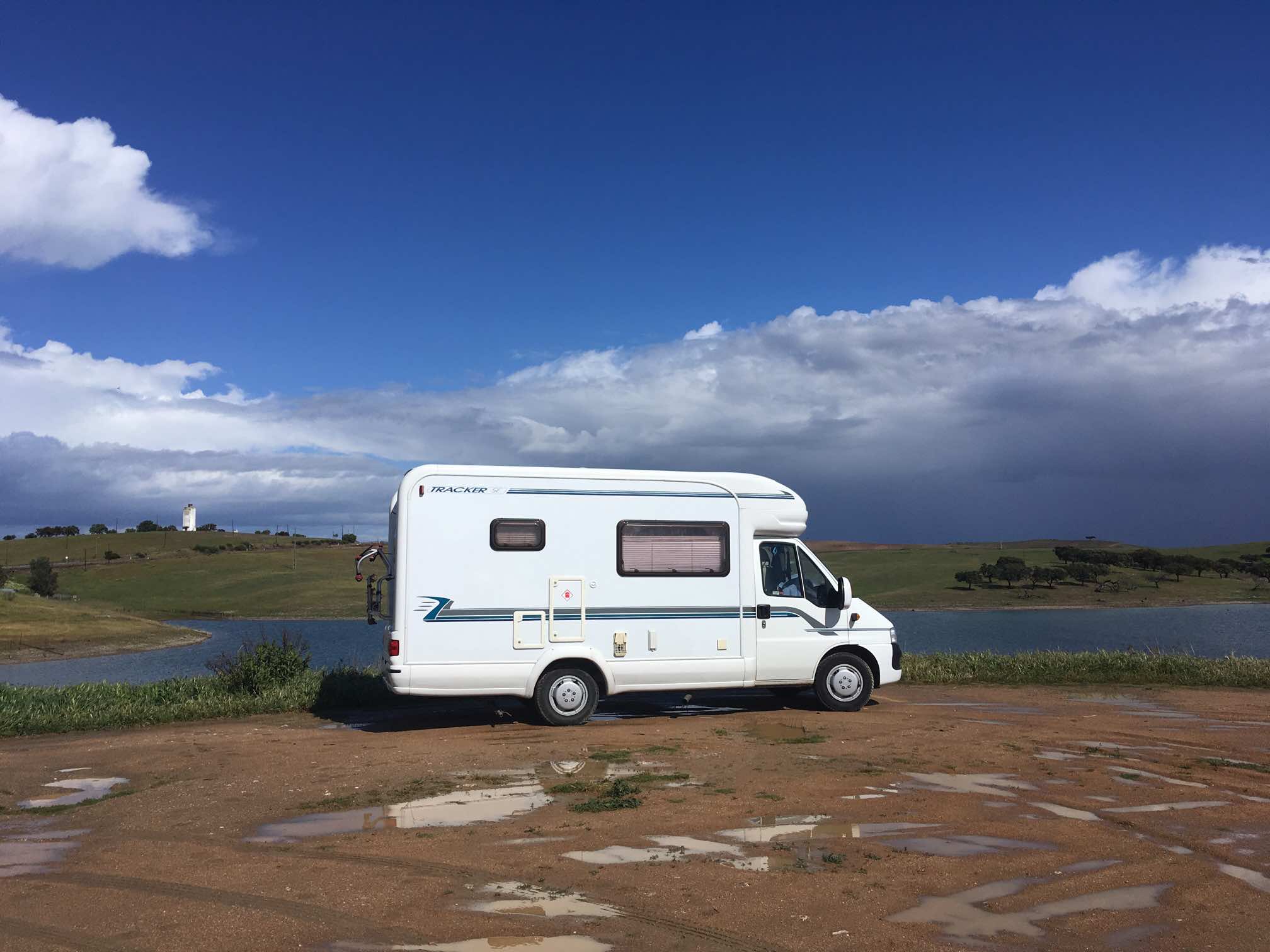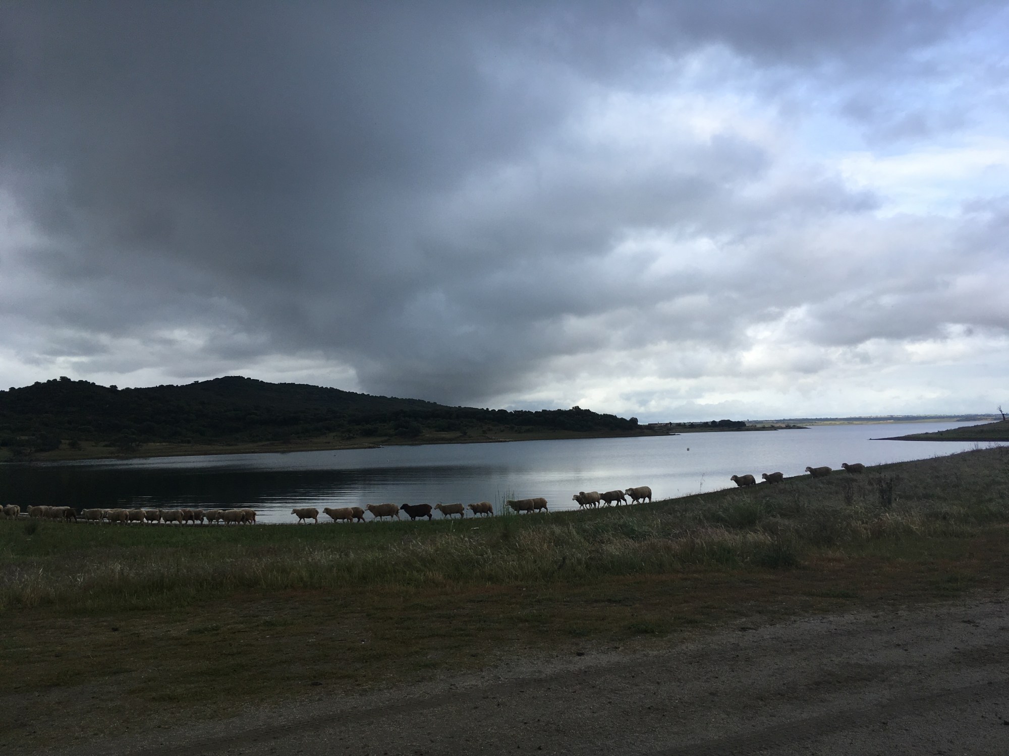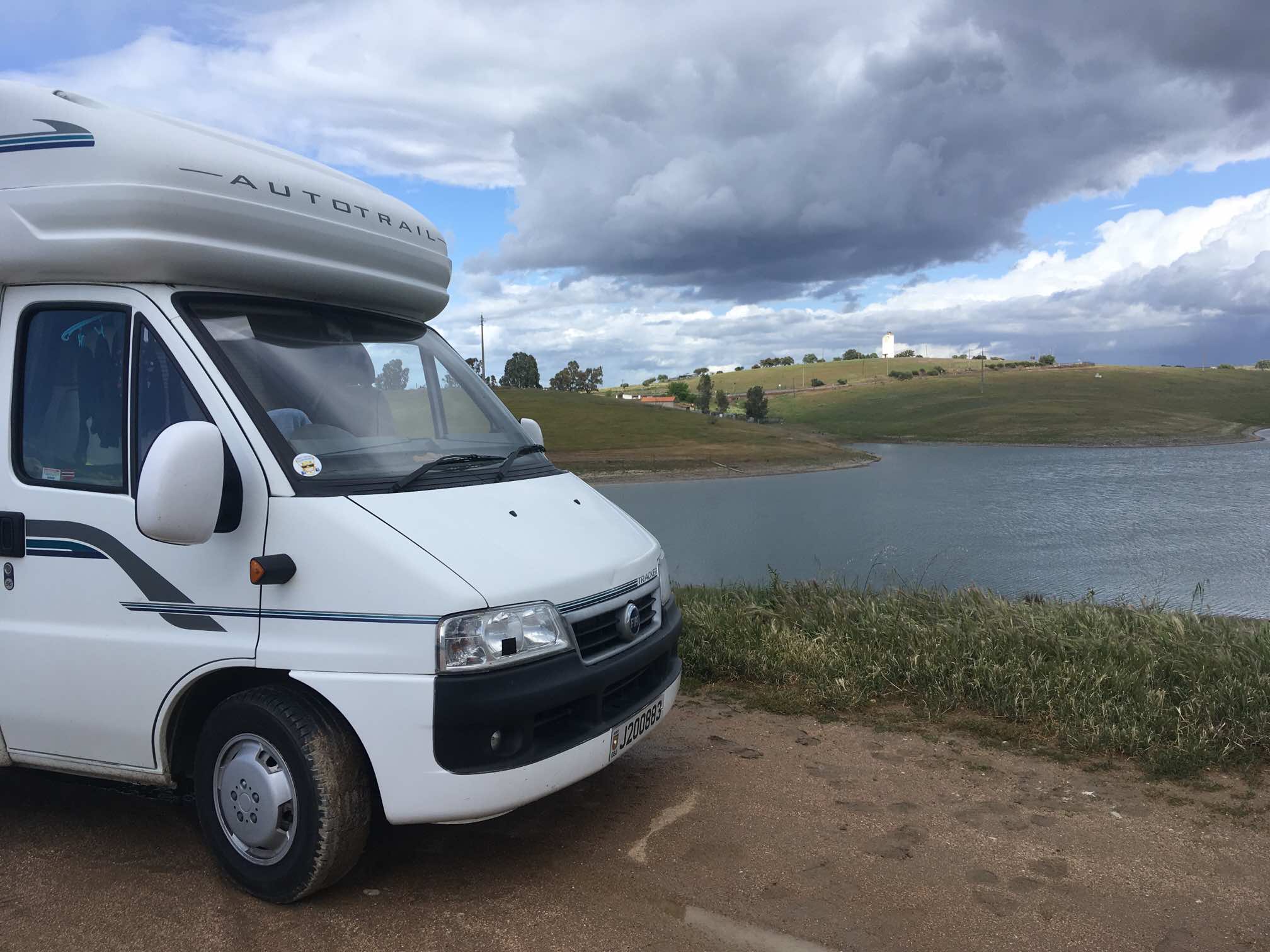 So tonight we find ourselves a few km from Monsaraz down by the reservoir, with three motorhomes and a landrover with a pop-up roof, and loads of room. We’ve had a few unsettled days, weather-wise, but it looks like that’s going to improve from tomorrow. Let’s hope so.