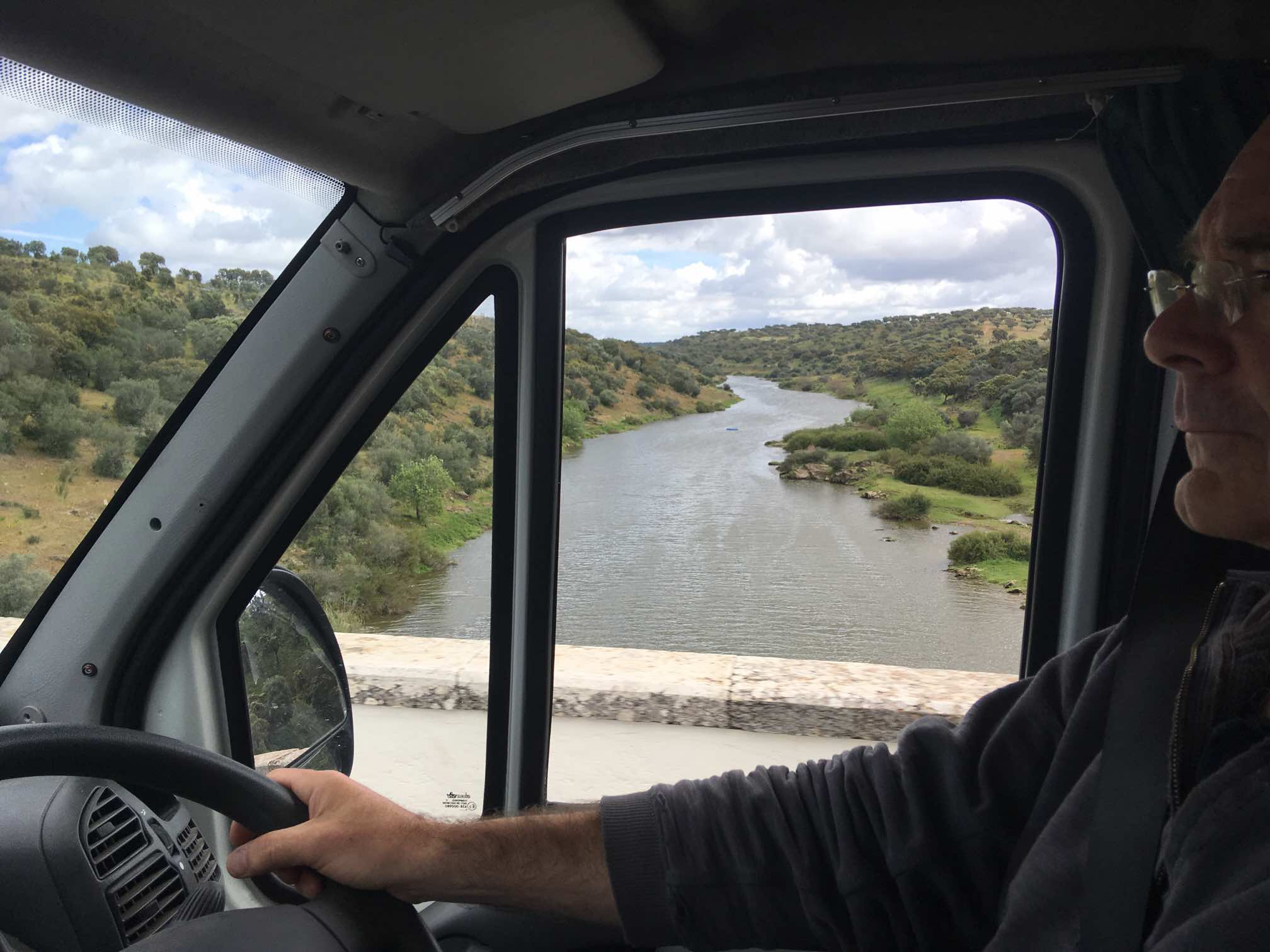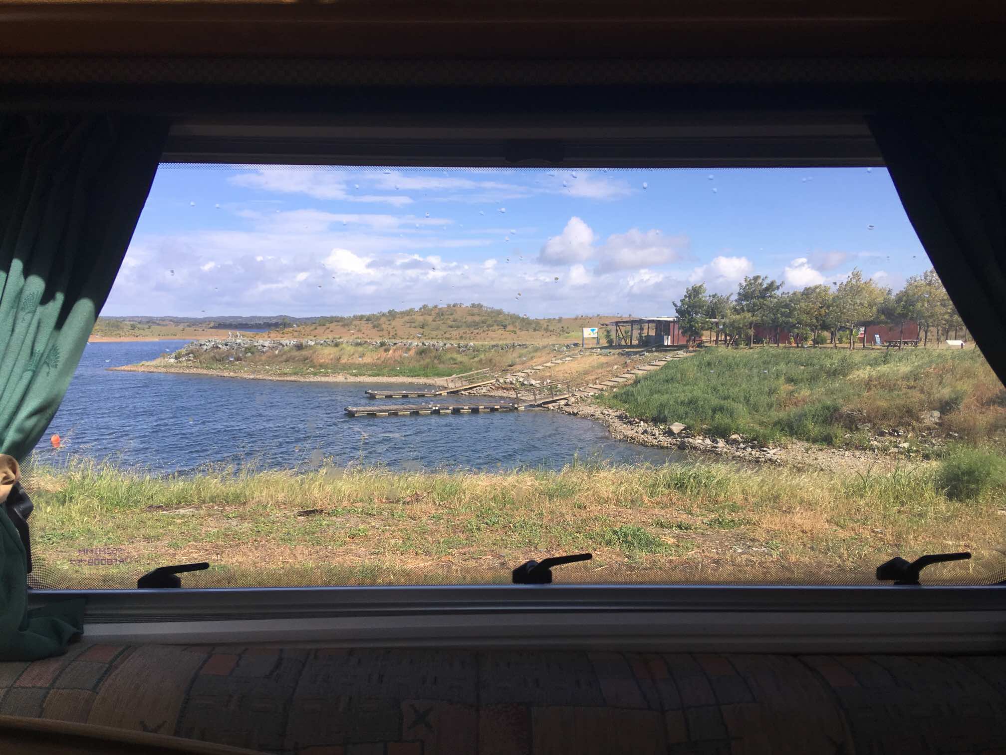 On those occasions when we do have neighbours, we’re generally the last to leave. This was no exception. Before long, after leaving our spot for the night, we’d pulled in at a little parking area on the outskirts of tiny Estrela, set on the waterside.