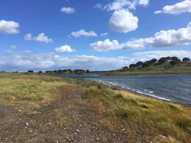 My guidebook tells me that the Alqueva Reservoir/Albufeira is one of the largest in Western Europe, and in our short time driving along its shores, it is undoubtedly, in all our years of motorhoming, the best area we have found for unrestricted wild-camping, with so many beautiful spots. I’m not sure if there are any restrictions in the high season, but Park4Night reviews don’t seem to suggest this.