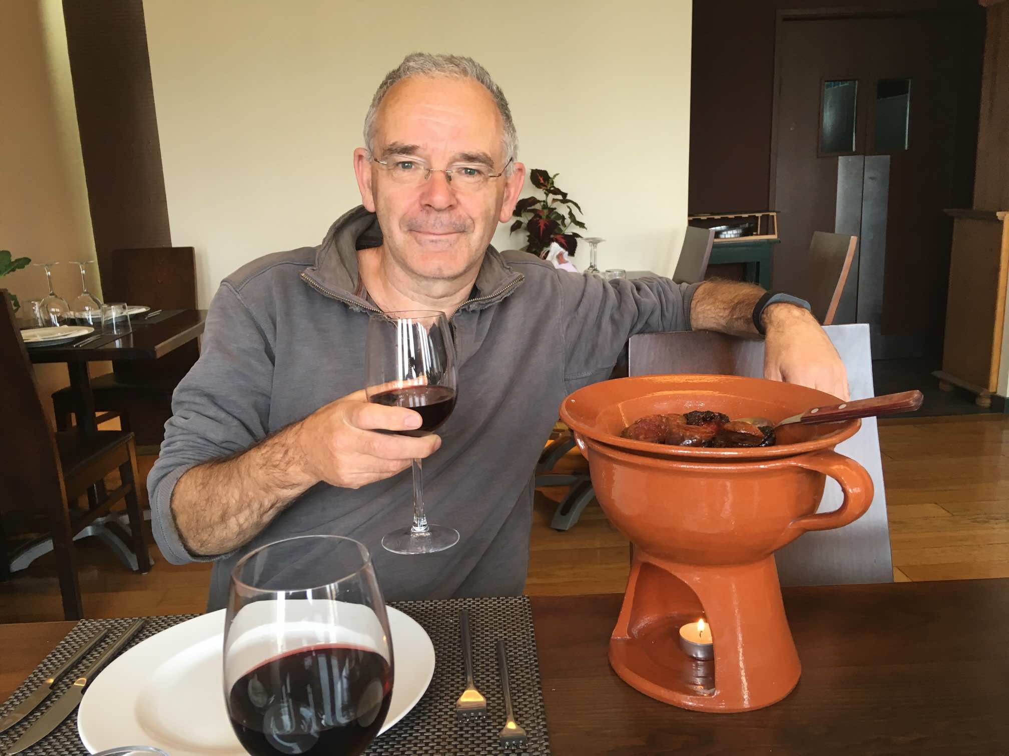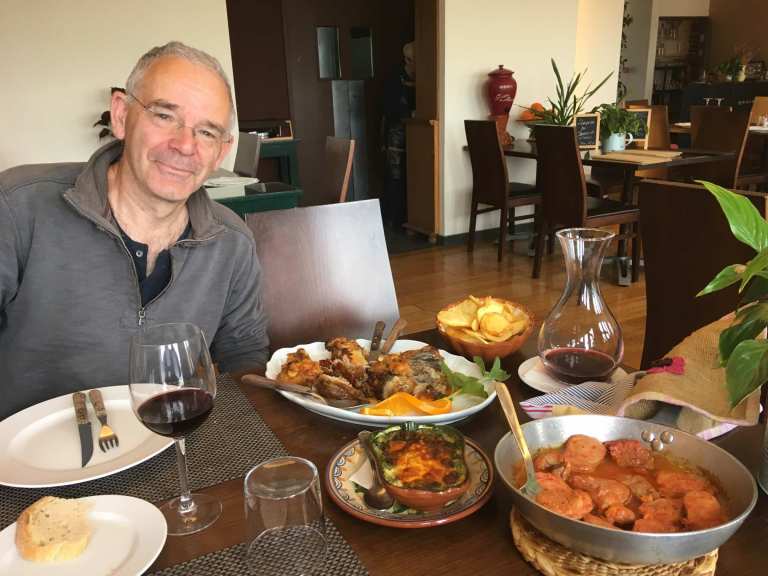 The quality of service, size of portions, and decor, all scored highly in our opinion. A couple, Grace and Rui, run the restaurant, with Grace, who speaks superb English, front of house and Rui doing the cooking. We had excellent starters of chorizo & black pudding, and garlic prawns. For mains, Sophie‘s pork medallions entirely filled the large frying pan that was brought to the table, and my leg of pork was enormous. As always, we shared both. The house red was excellent.