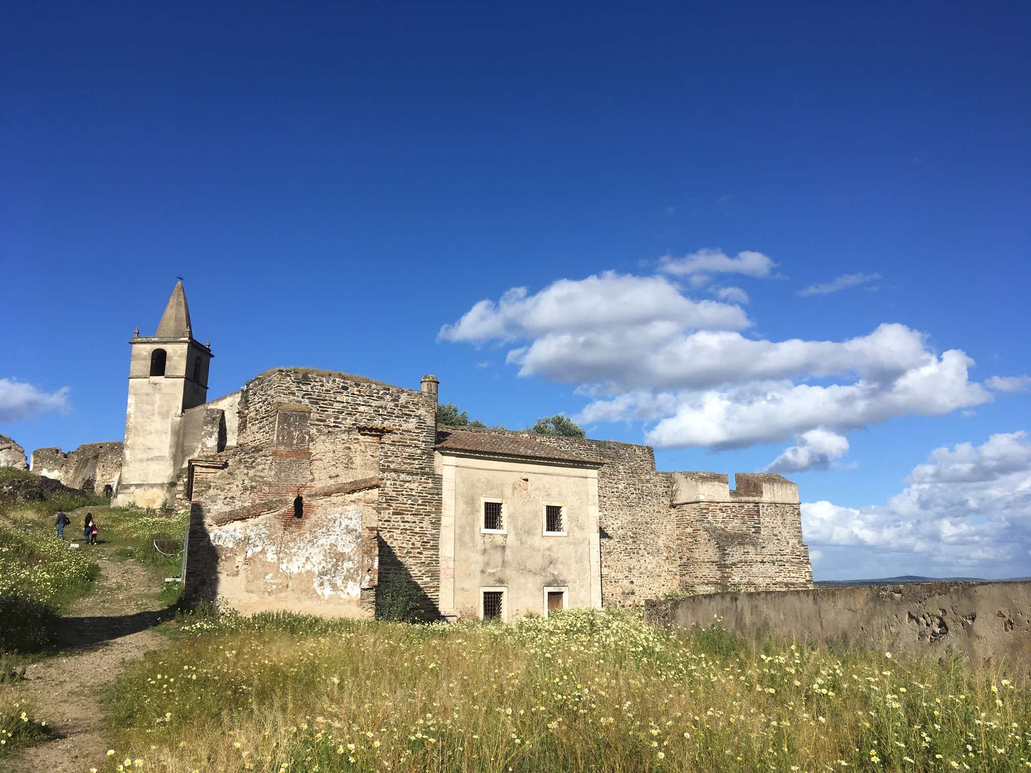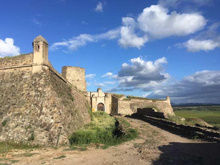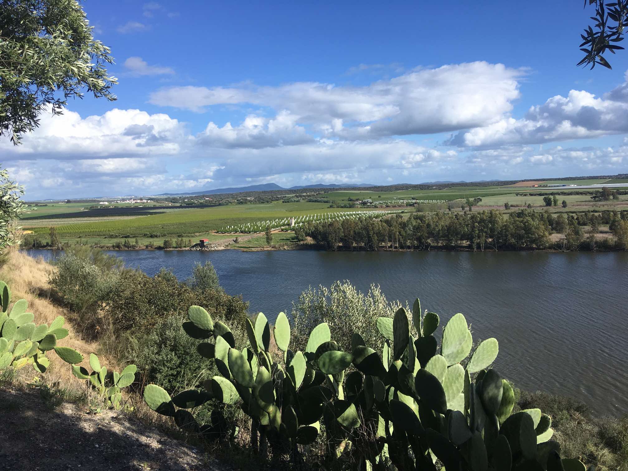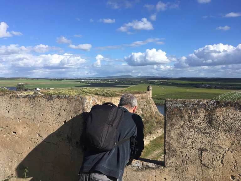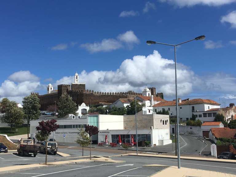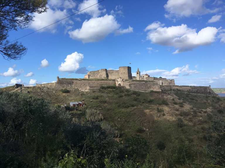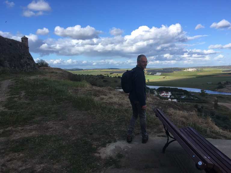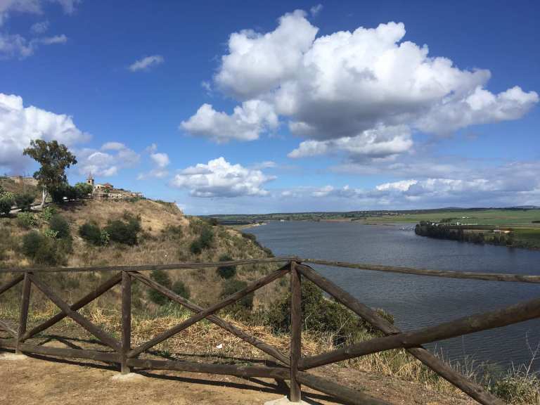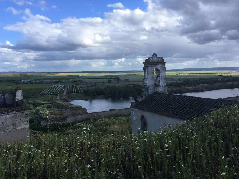 I’d been aiming for a Park4Night at Juromenha, a small fortified town right opposite the Spanish border. The parking is coincidentally next to another cemetery, and overlooks the Guadiana river that separates these two countries. We’re in an elevated position and our main view is of Spain, just across the water.