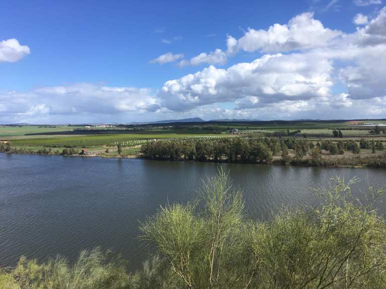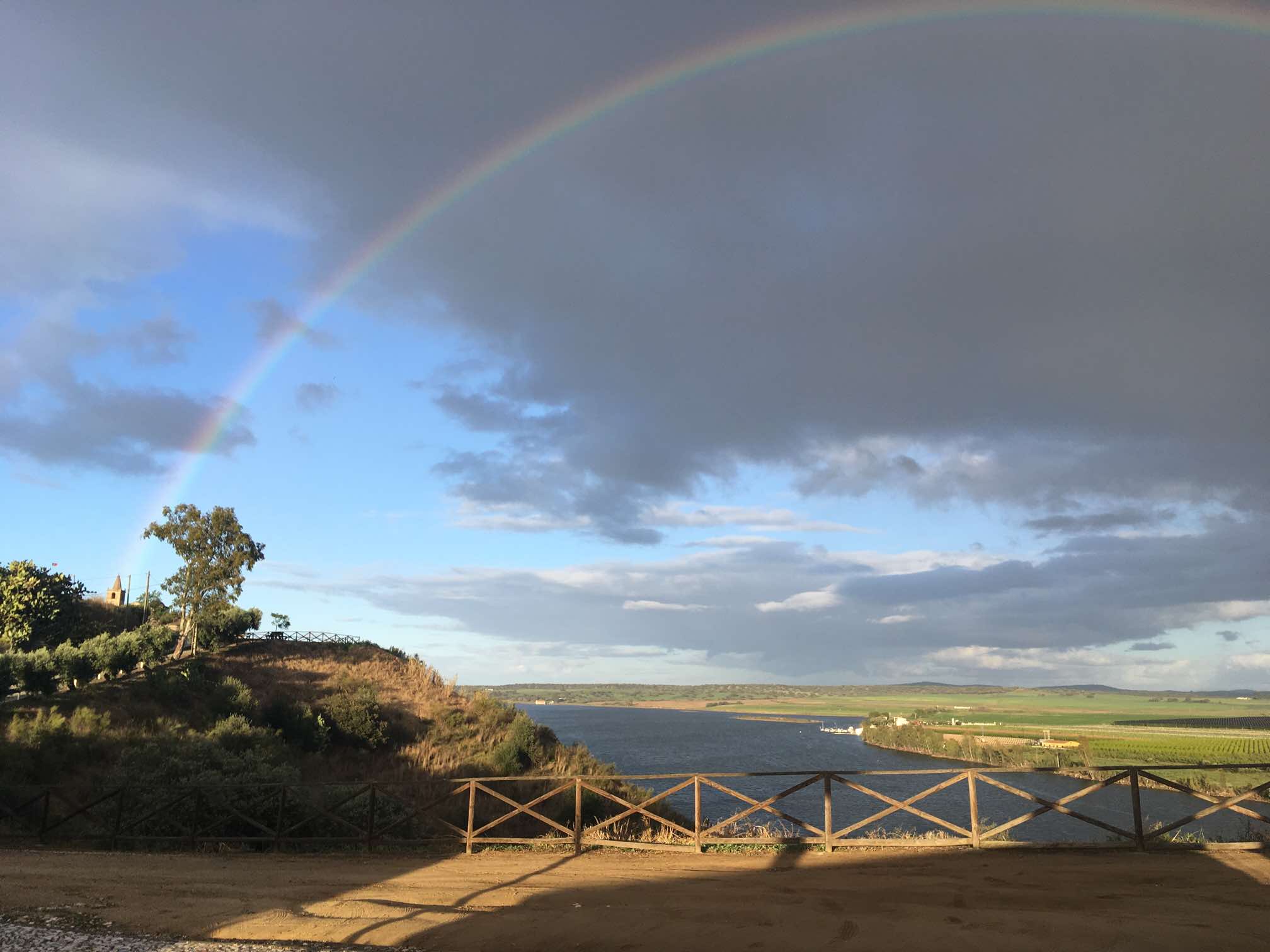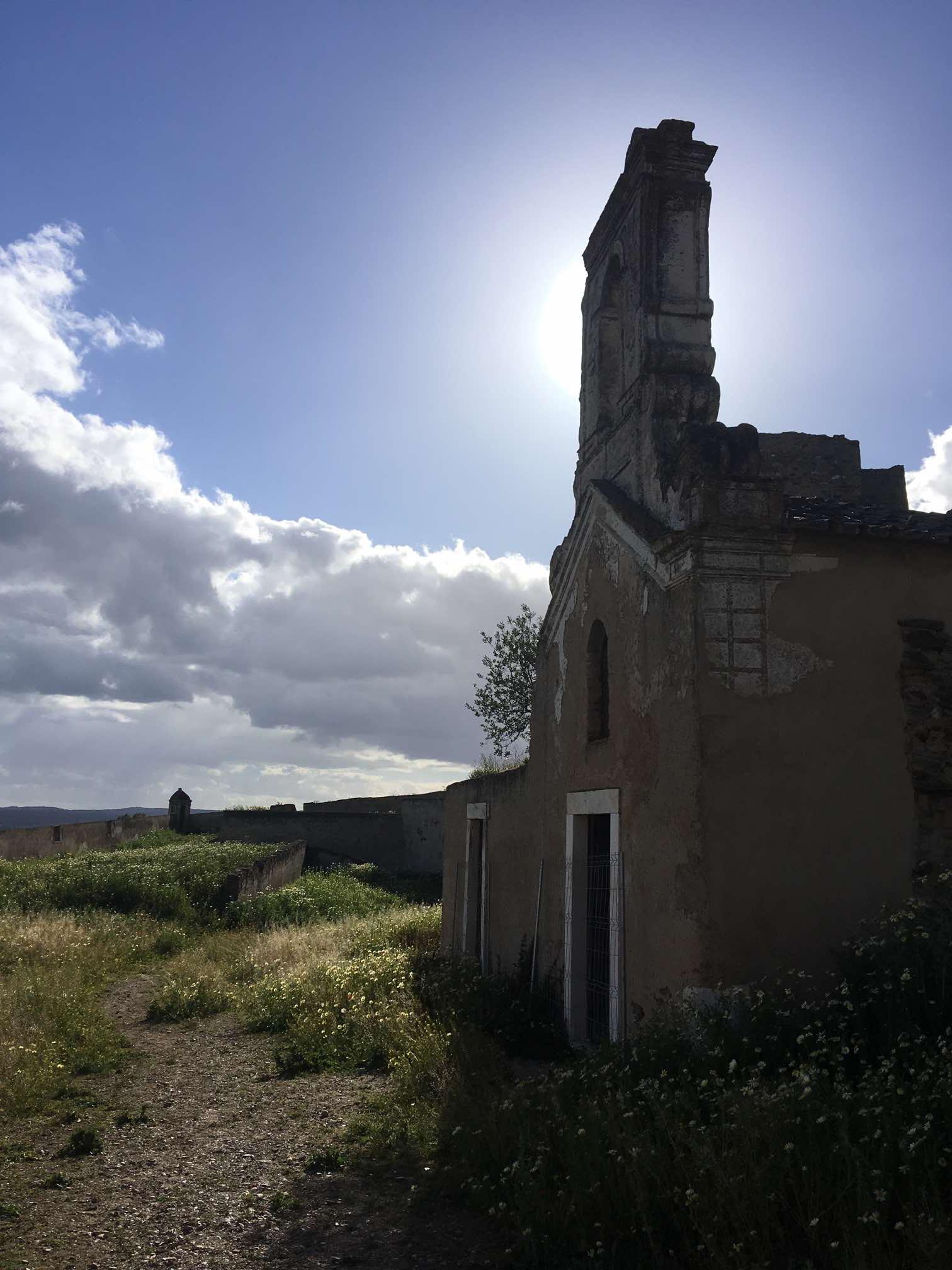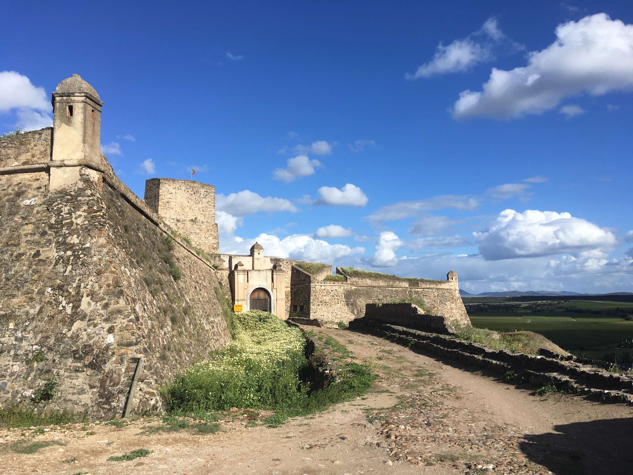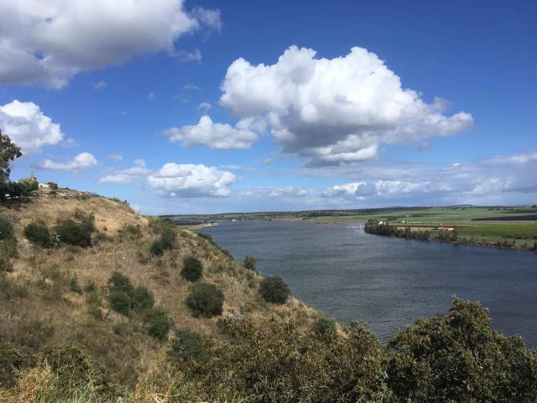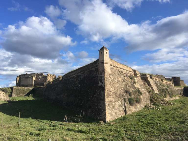 I’d been aiming for a Park4Night at Juromenha, a small fortified town right opposite the Spanish border. The parking is coincidentally next to another cemetery, and overlooks the Guadiana river that separates these two countries. We’re in an elevated position and our main view is of Spain, just across the water.