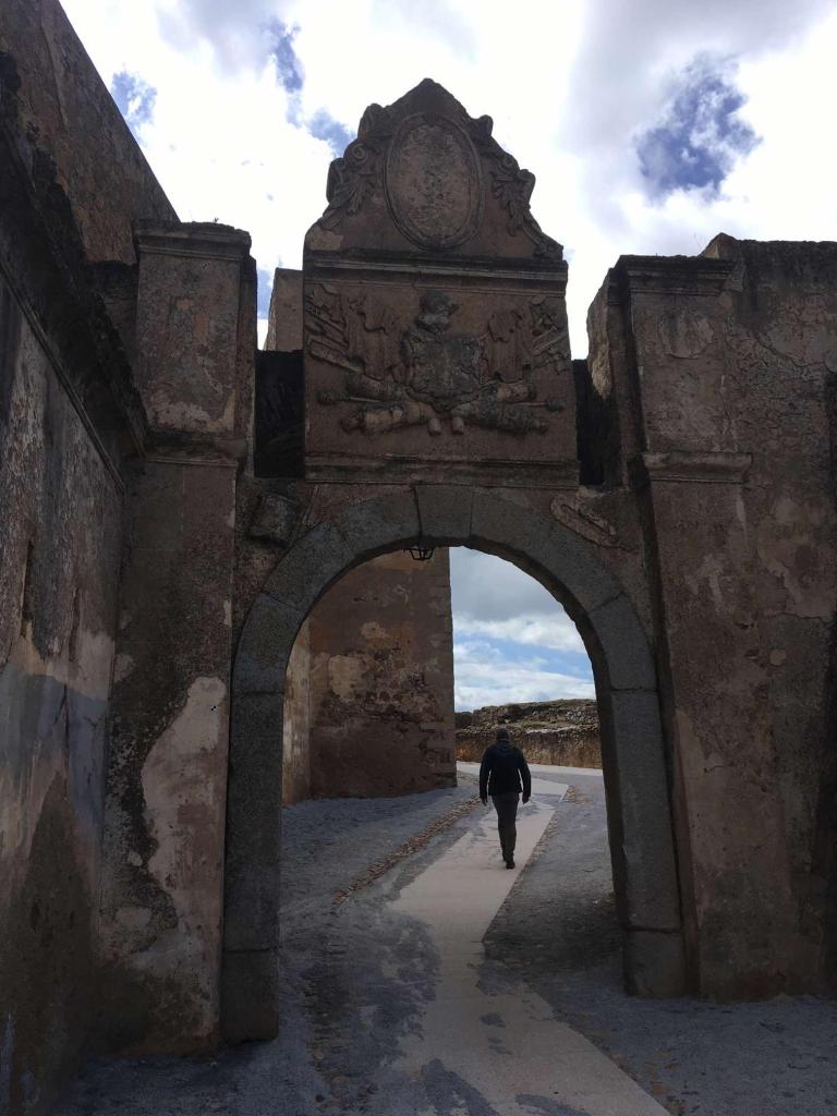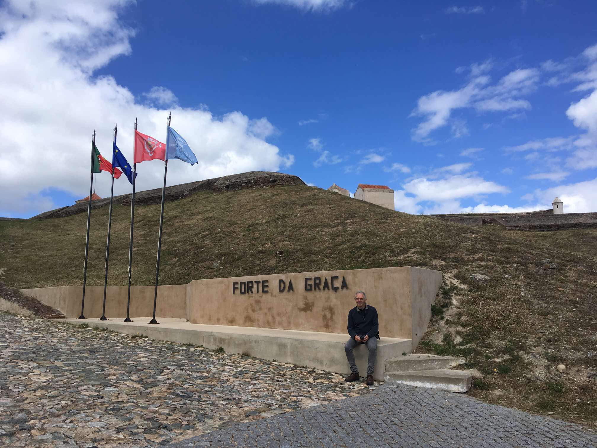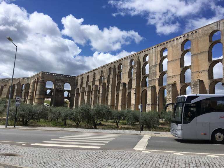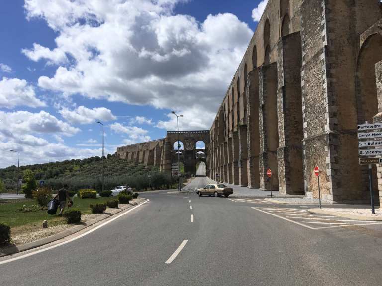 Great night. Stunning views. Total peace and quiet. This was a great staging post for Elvas, which we’d both misunderstood to be a small town. We parked just above the famed and impressive aquaduct and coincidentally found ourselves next to Heather and Phil, other van travellers who we’d bumped into on a damp afternoon by Mourao’s castle a few days earlier. After comparing notes, and Phil kindly allowing me to grab a photo of a map from their Dorling Kindersley Portugal guide, we left them to their lunch.