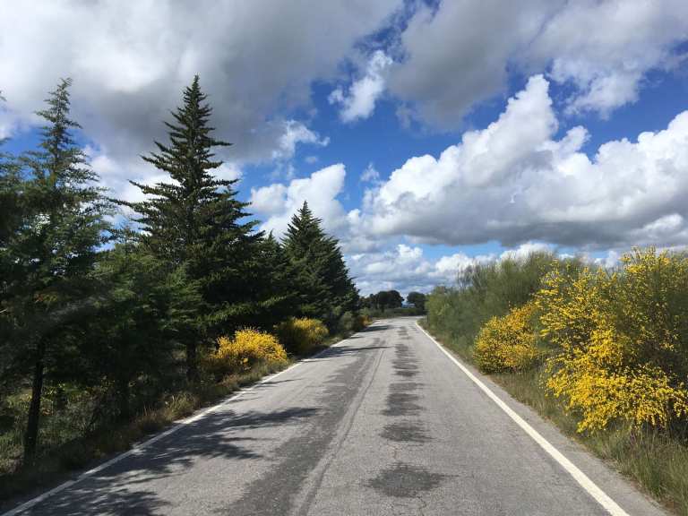 We then meandered through an awful lot of pine forests, after which we were pleased to return to a more open scenery. We stopped for poached eggs on toast at a riverside Park4night, then decided to aim for the popular mountain-top town of Monsanto.