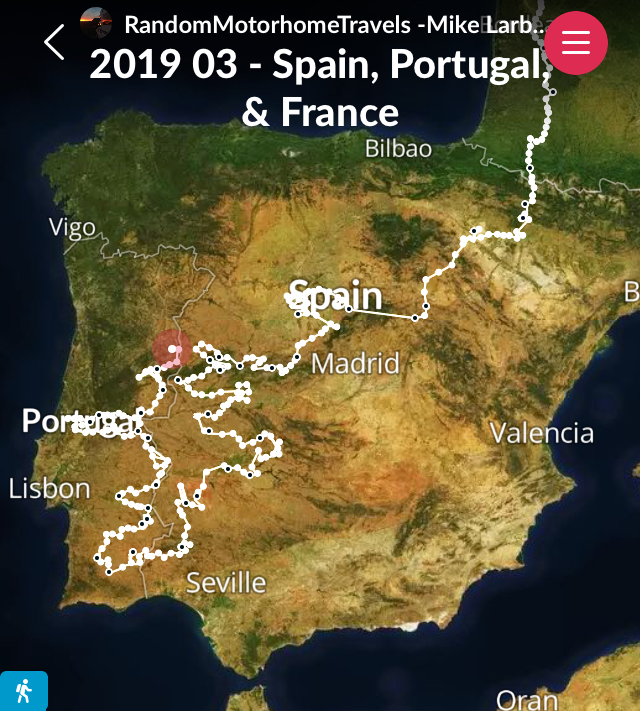 At this time there is a fuel strike in Portugal which is set to last another five days. So there are queues at the pumps and some are out of service. Fortunately for us our route today took us right past the Spanish border, so we popped in and filled up with no problem, and nice and cheap too.