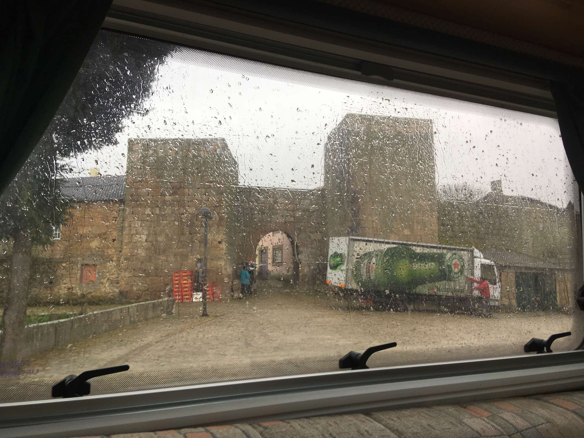 Next town along was Sabugal, where they have a castle. By this time it was chucking it down, so we passed on the castle visit, and just emptied our toilet in the allotted area instead and left. Sorry Sabugal. Maybe next time 😉.