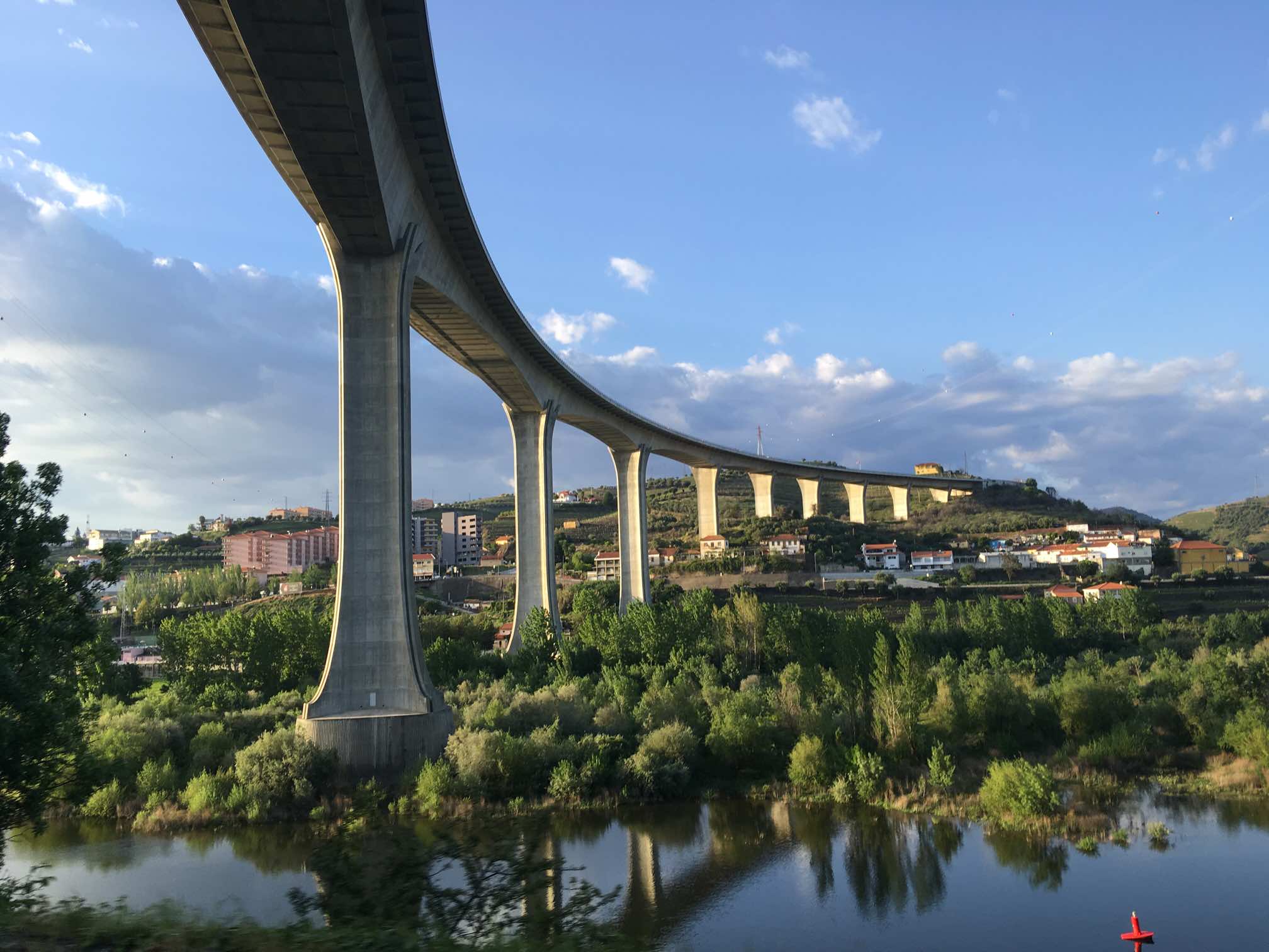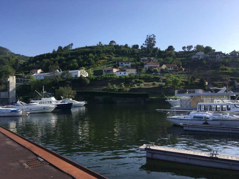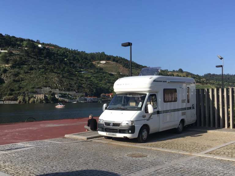 Admittedly we didn’t know what our overnight spot would be like this evening, but we knew we’d be fine. Along the way we passed the busy town of Peso da Regua, with its very many motorhomes tightly packed below its bridge.