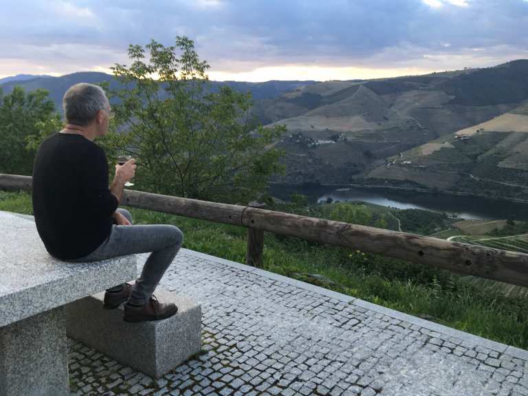 Before long we came across the picnic area, which was directly adjacent to the road, had solid standing, and was equipped with smooth granite picnic tables and benches. The views down to and across the Douro were simply stunning, and we knew this was the place for us. I celebrated with a glass of Douro red, which is not as easy as it might sound when you’re with someone trying to take photos and is asking you not to drink it, but just to hold it for a little bit longer 🙄.