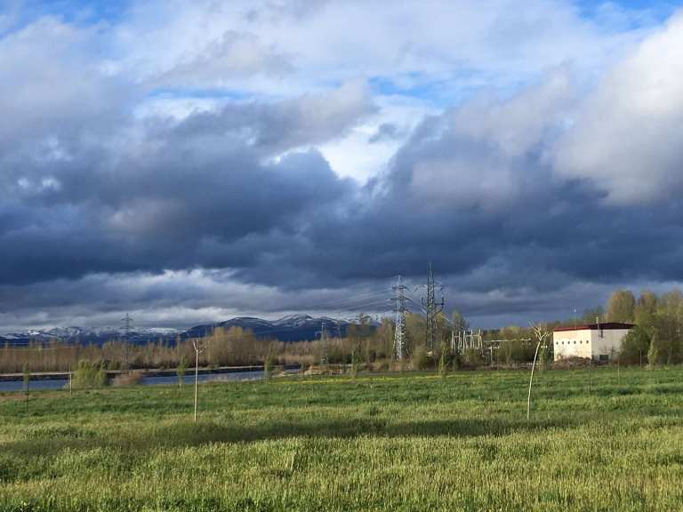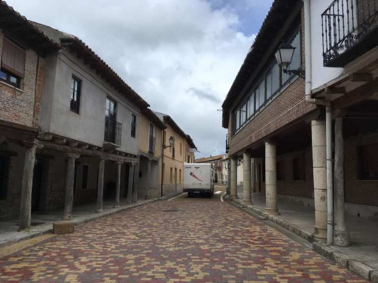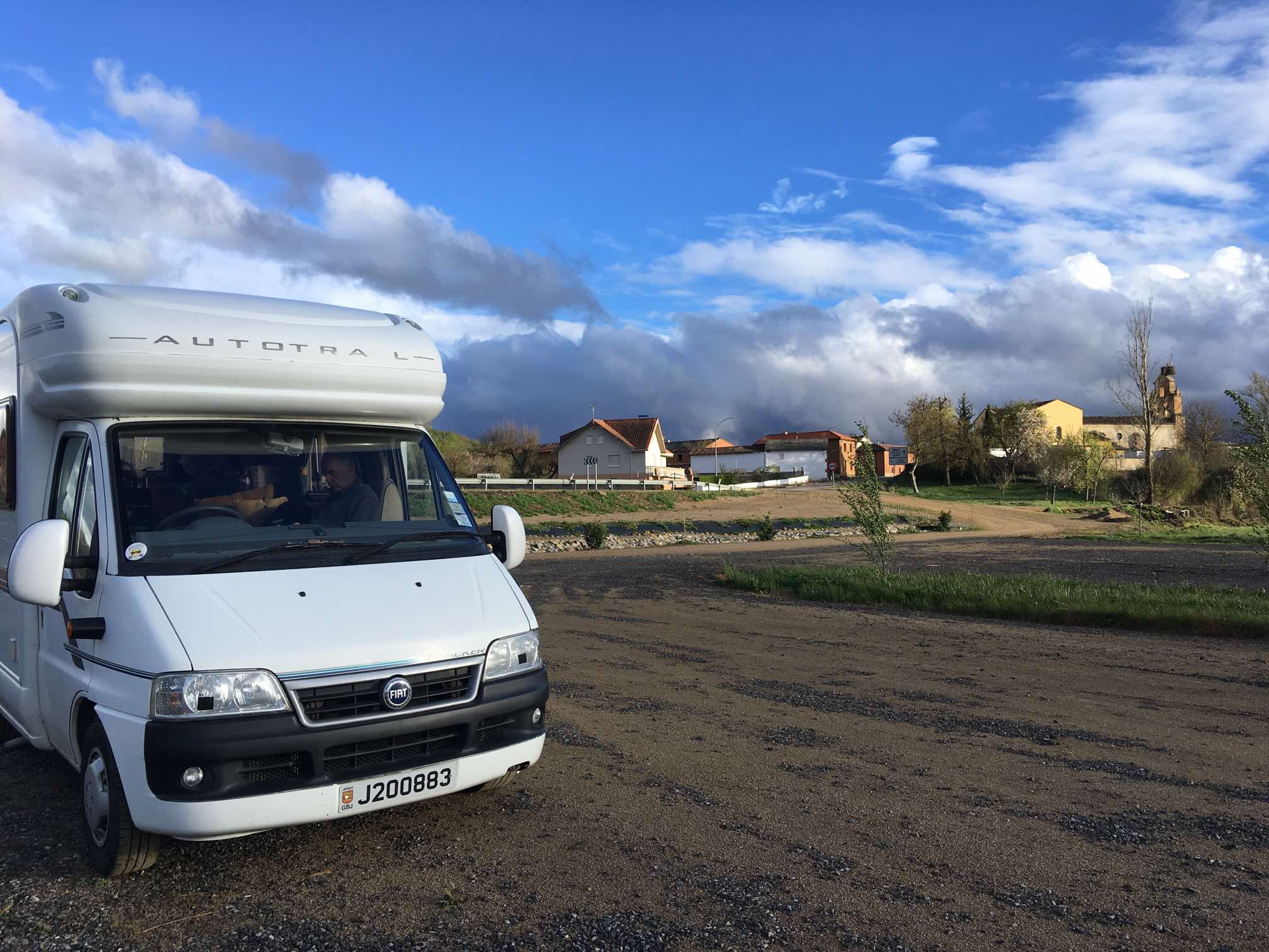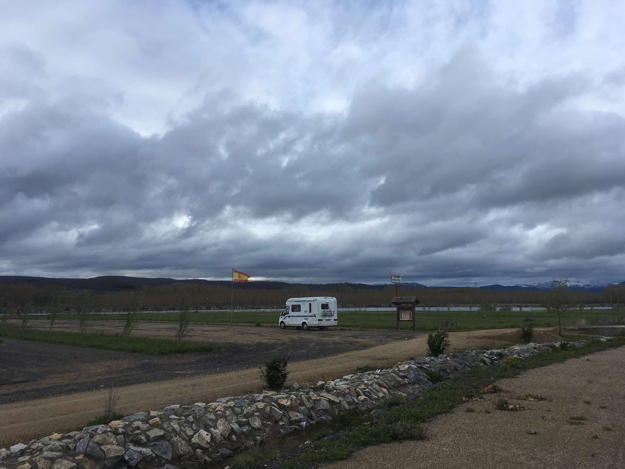My last chance Park4nights were around the small town of Sahechores de Rueda. We’d decided against the couple on offer as we’re very fussy and the “no view, no stop” rule is rarely contravened. Fortunately, Sophie had noticed a large solid parking area down near the lake, with views of the snow-capped Picos some 50km North, an information board, picnic benches, and picnic area size bins. To us this was a clear invitation for legitimate motorhome parking and so another new Park4night was born.