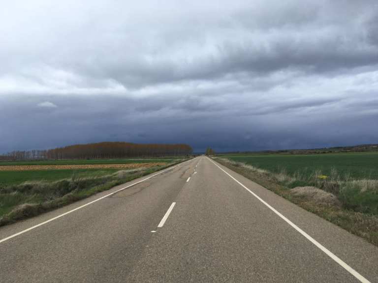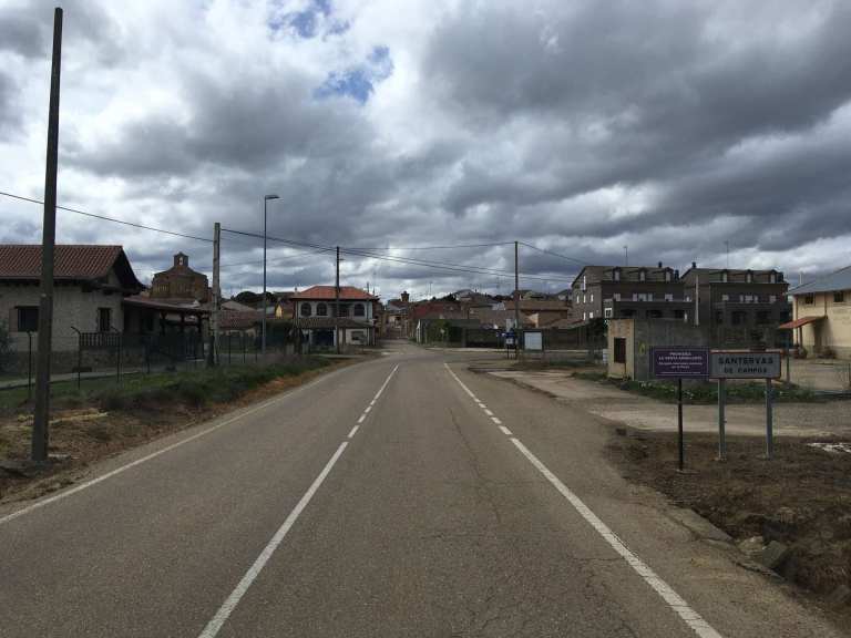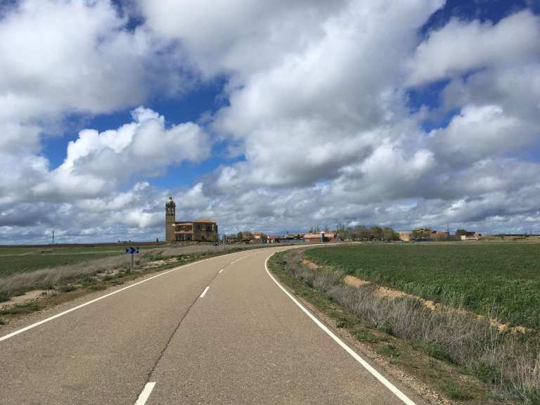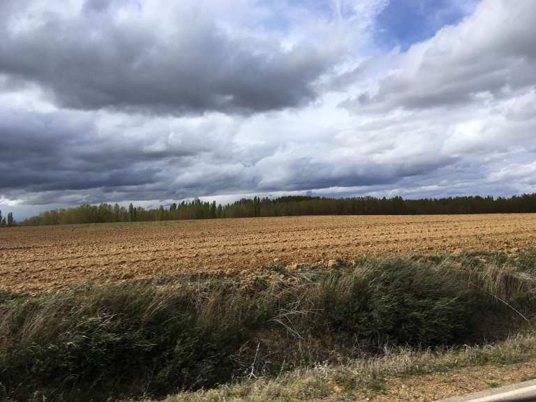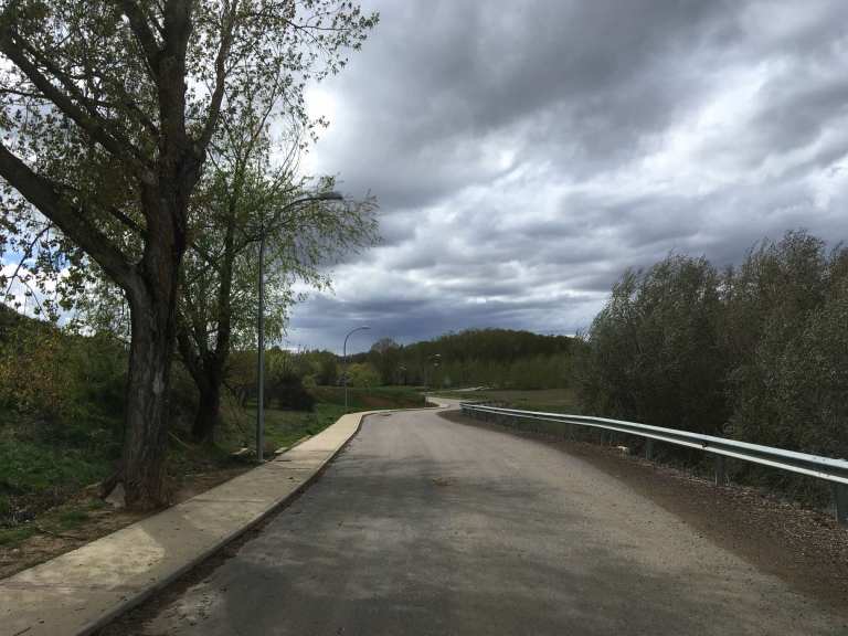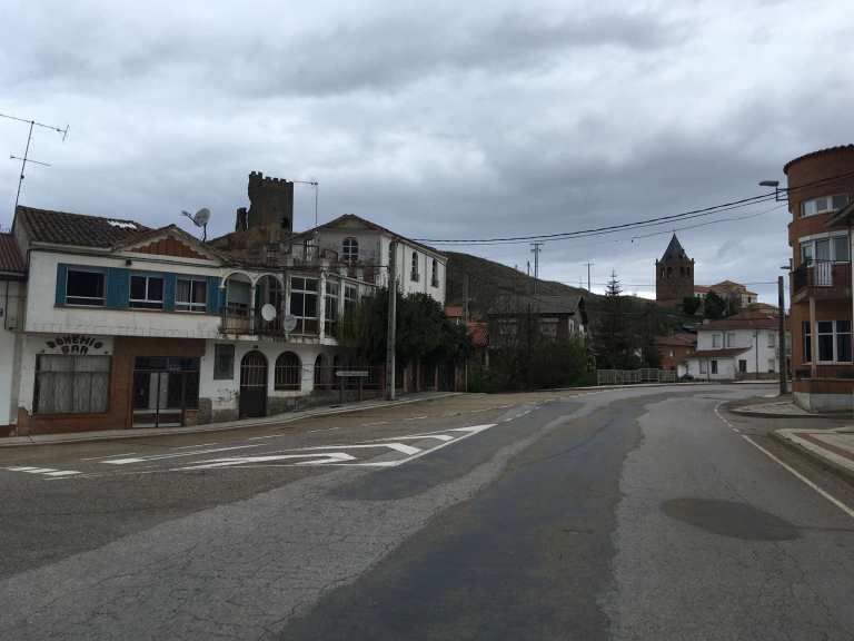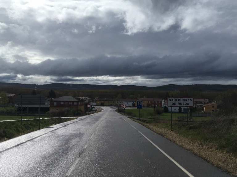 My last chance Park4nights were around the small town of Sahechores de Rueda. We’d decided against the couple on offer as we’re very fussy and the “no view, no stop” rule is rarely contravened. Fortunately, Sophie had noticed a large solid parking area down near the lake, with views of the snow-capped Picos some 50km North, an information board, picnic benches, and picnic area size bins. To us this was a clear invitation for legitimate motorhome parking and so another new Park4night was born.