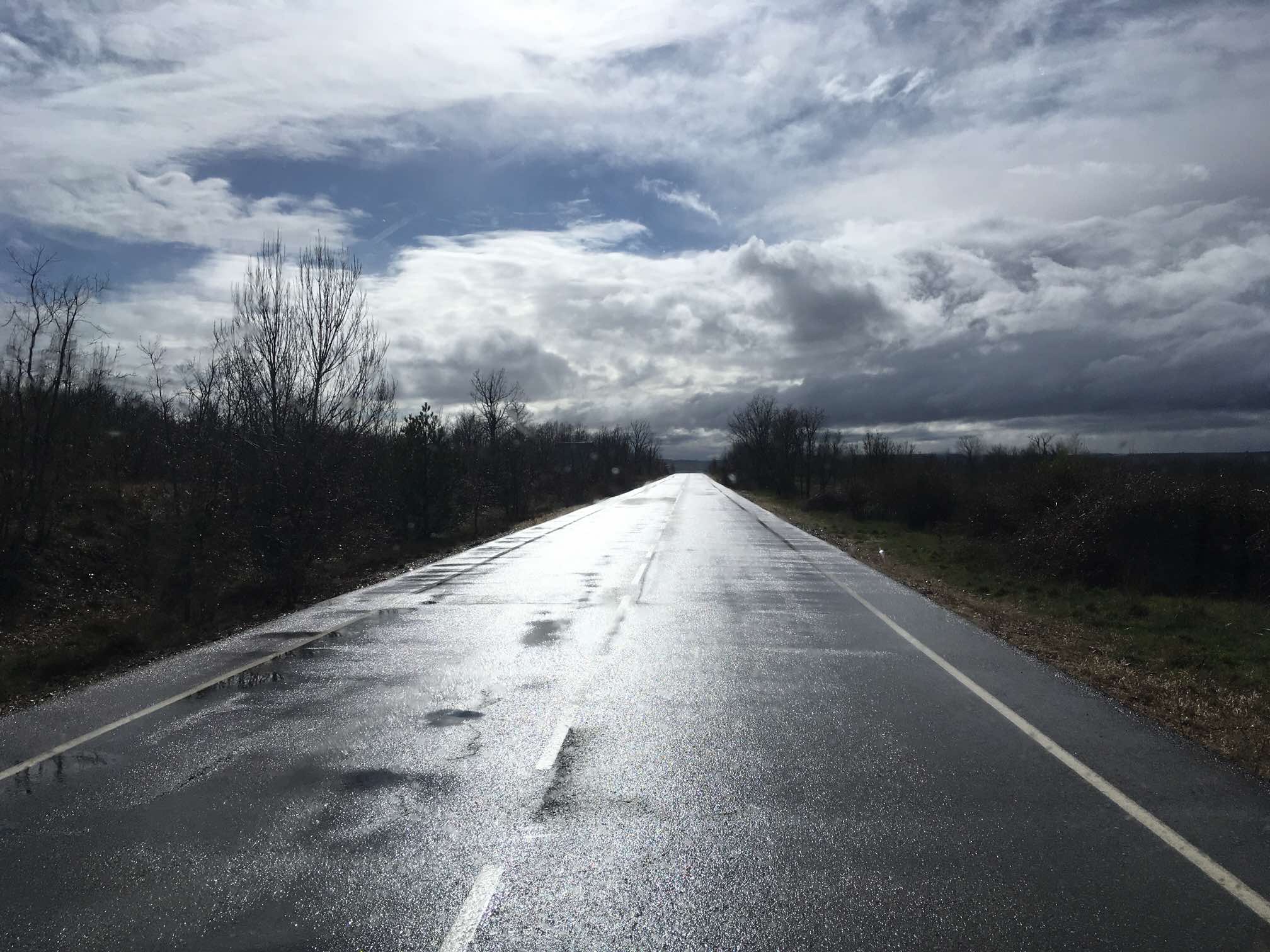 The late afternoon sun came out and so did the camera as the scenery on the drive came to vivid life. Later in the journey the sky to the West and North was looking particularly menacing, and clearly dumping vast amounts of rain. We managed to avoid most of this although there was a time when we were getting some sleet as we’d begin rising marginally in altitude, but that didn’t last.