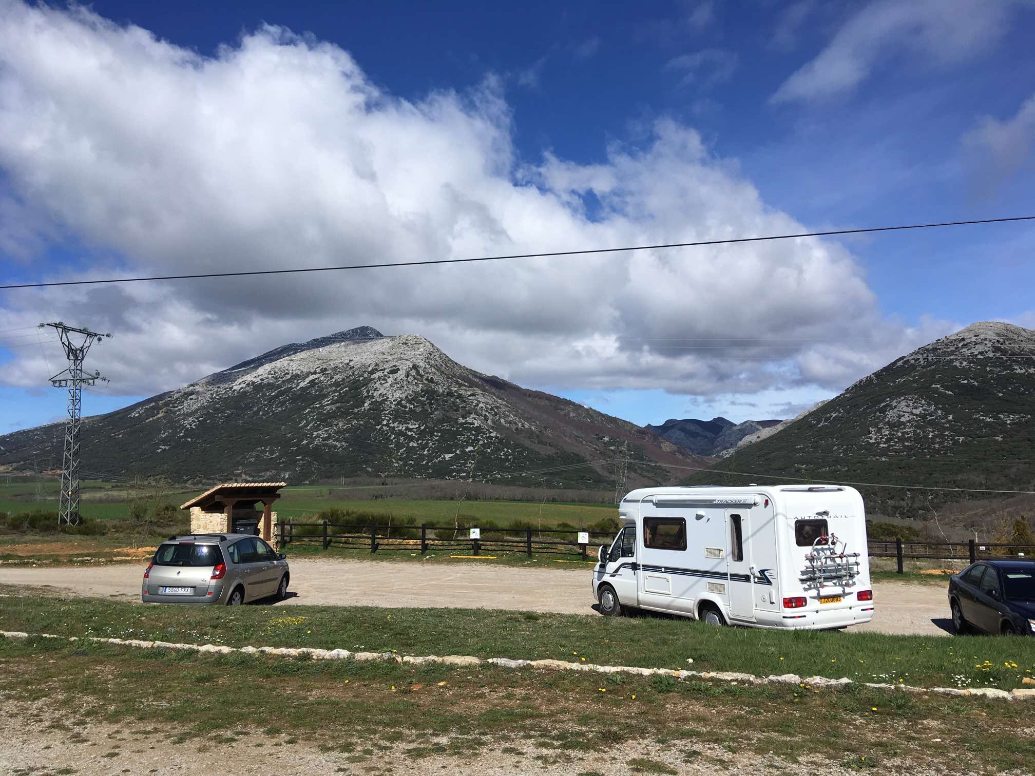 After some emptying in the small town of Cervera de Pisuerga, where their parking was ruined by the very scruffy dump adjacent, on we drove. Several km further on we then found the Park4night that serves the start of the walk to “Tejeda de Tosande”, a popular yew wood. With mountain views and very quiet, it seemed ideal. After many hours of solid mountain driving I was very pleased to put my feet up.