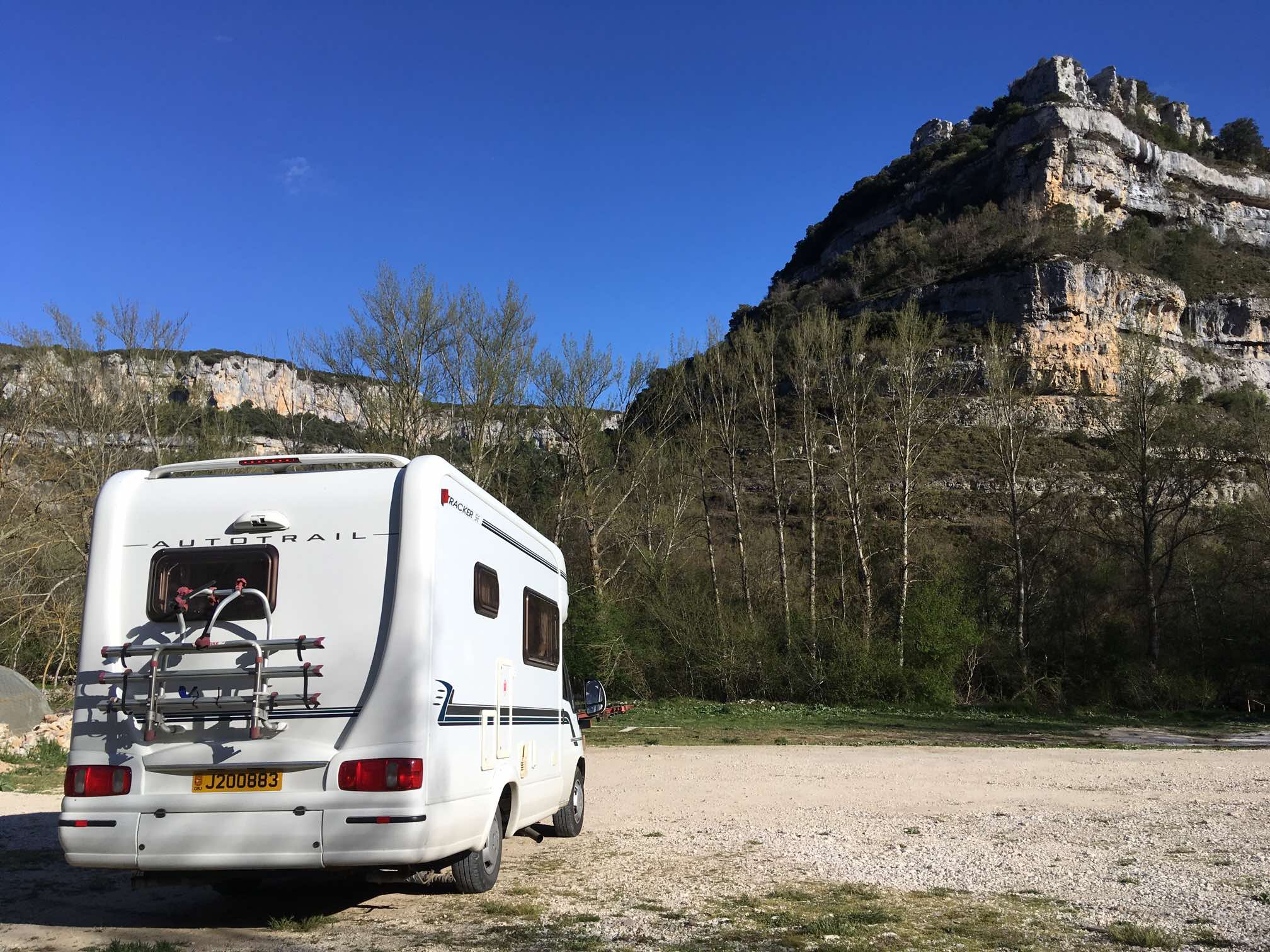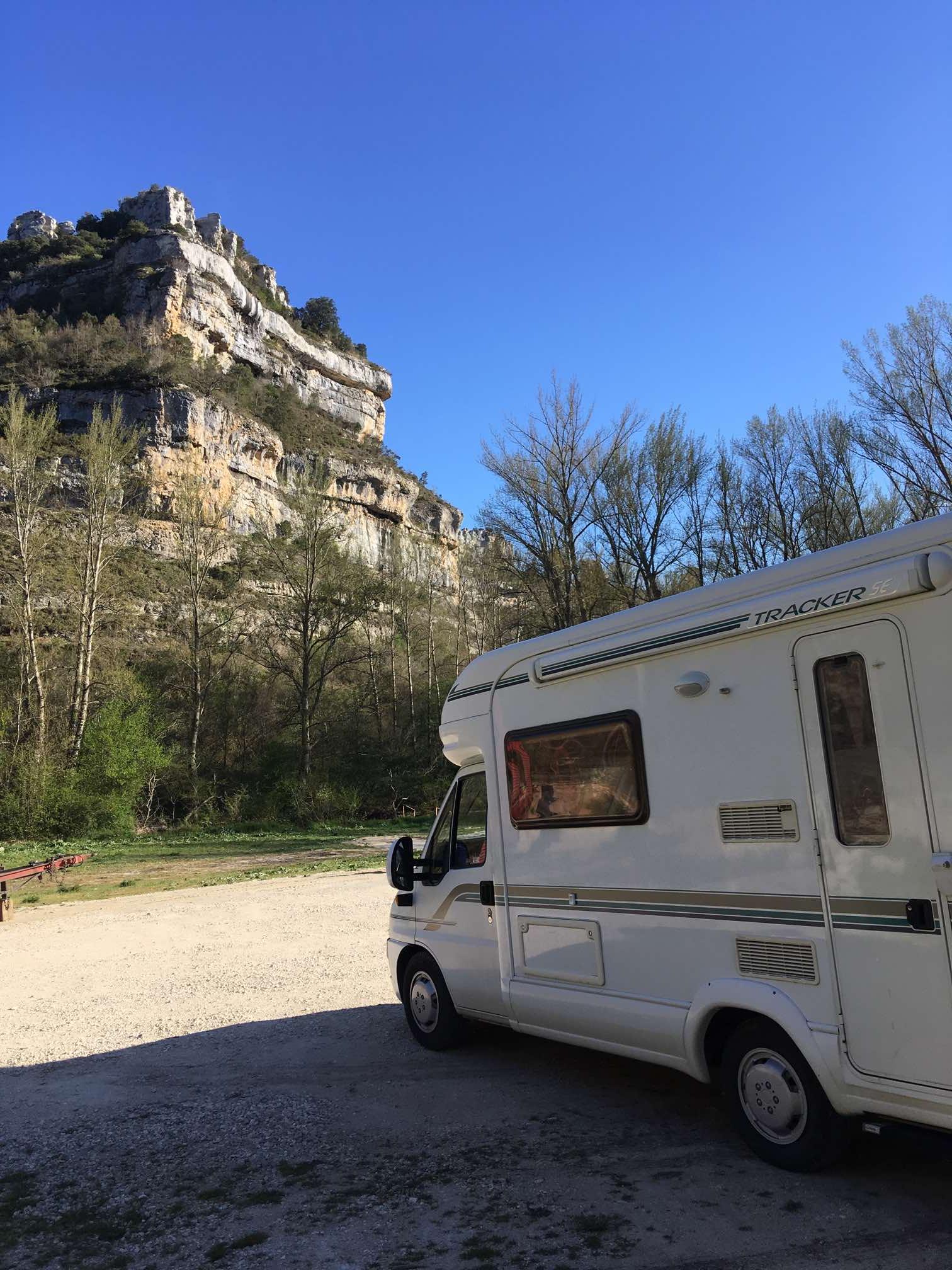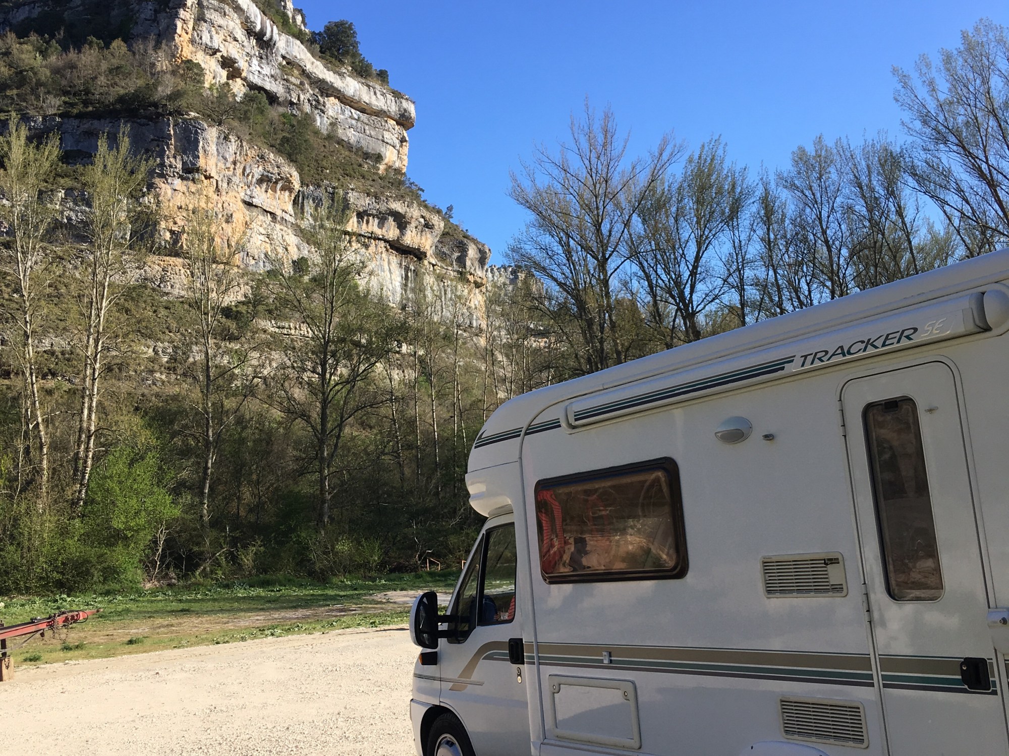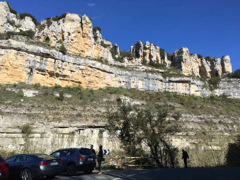 My target for today was the highly recommended Orbaneja, known specifically for its waterfall. What I hadn’t anticipated was the stunning gorge in which the village is situated. We’re now in the first carpark you get to on the approach to the village. We’re currently the only motorhome here and I find it hard to satisfactorily describe just how amazing my view currently is as I sit outside with a glass of Rioja and gaze up at the sun drenched dramatic rock formations. Sophie, on the other hand, can appreciate none of this as she’s preparing my dinner 😉.