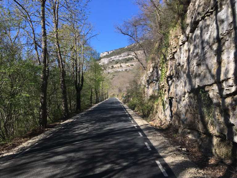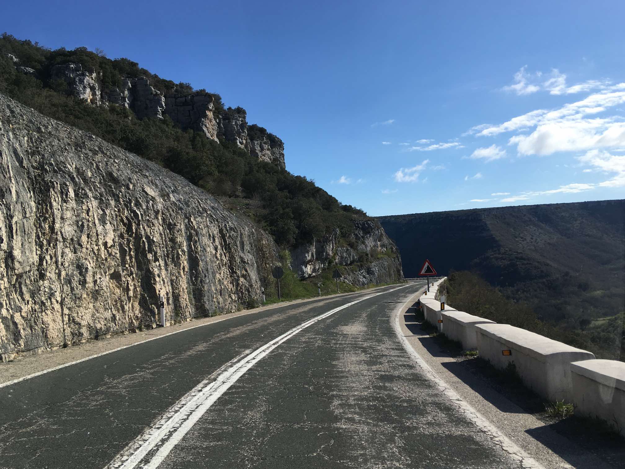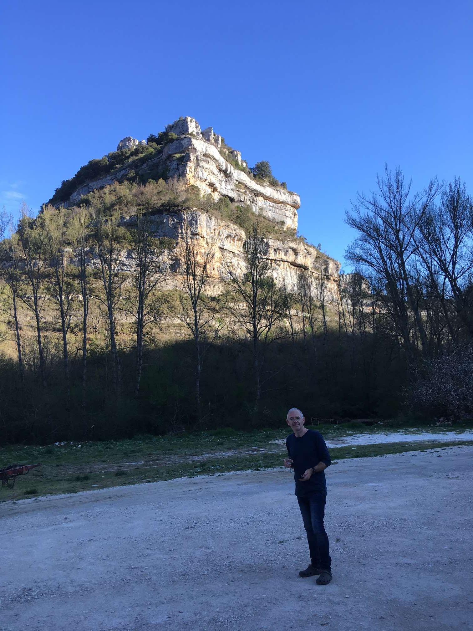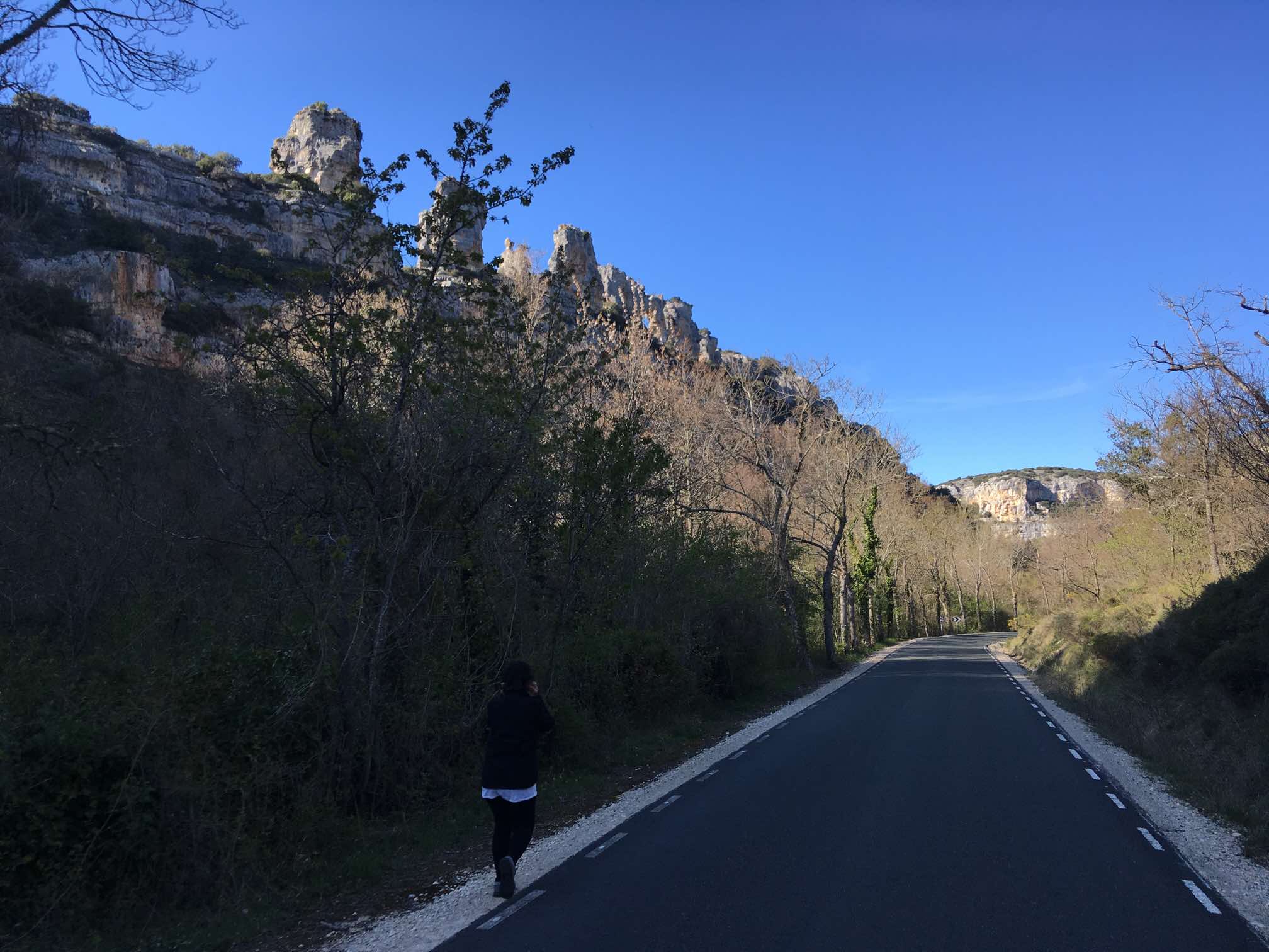 My target for today was the highly recommended Orbaneja, known specifically for its waterfall. What I hadn’t anticipated was the stunning gorge in which the village is situated. We’re now in the first carpark you get to on the approach to the village. We’re currently the only motorhome here and I find it hard to satisfactorily describe just how amazing my view currently is as I sit outside with a glass of Rioja and gaze up at the sun drenched dramatic rock formations. Sophie, on the other hand, can appreciate none of this as she’s preparing my dinner 😉.