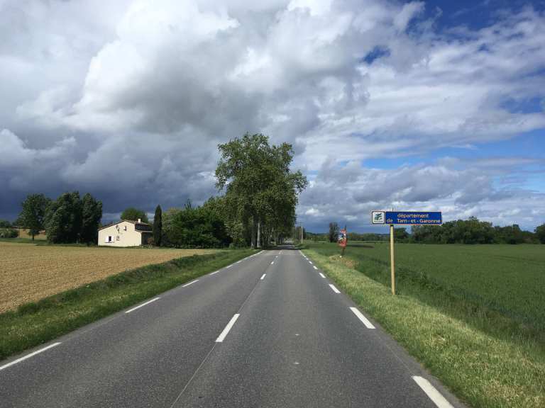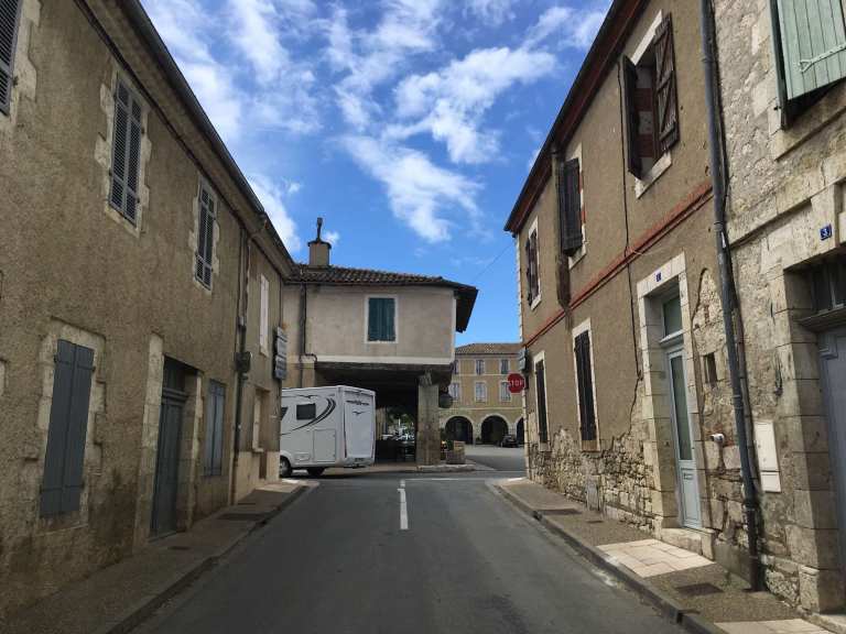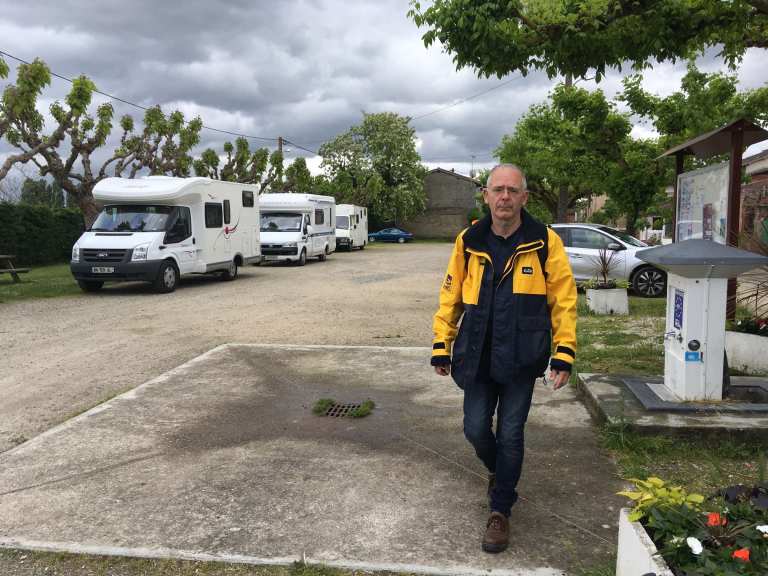 I mentioned earlier my masterlist of successful stops and tonight is a case in point. We’ve now pitched up at Saint Nicolas de la Grave’s modest motorhome aire, where we stayed three years ago, also in May. There are three other vans in this carpark on the edge of the small town, but it’s green, has picnic benches and is very quiet. The only viable way to park is nose to tail, but with sufficient personal space, and if we have to park up with others, this is by far the best way for us, much reducing the risk of eyeballing each other or hearing people’s TV or music, as whilst the vast majority of motorhomers are quiet as mice, not everyone is considerate in this respect.
