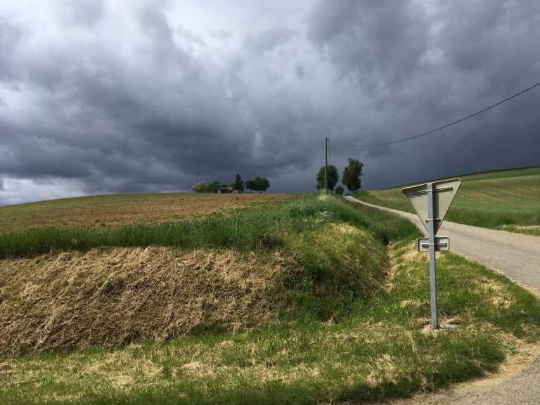 We left after poached eggs on toast a la Sophie and continued on our motorhoming guidebook’s “Toulouse et les coteaux de Gascogne” tour, but without the Toulouse bit, as it didn’t fit with our route in general. We firstly checked out my overnighting possibles for last night, of which two out of three would have been excellent, and have now been added to our masterlist of all spots assessed personally by us as very suitable for staying over.